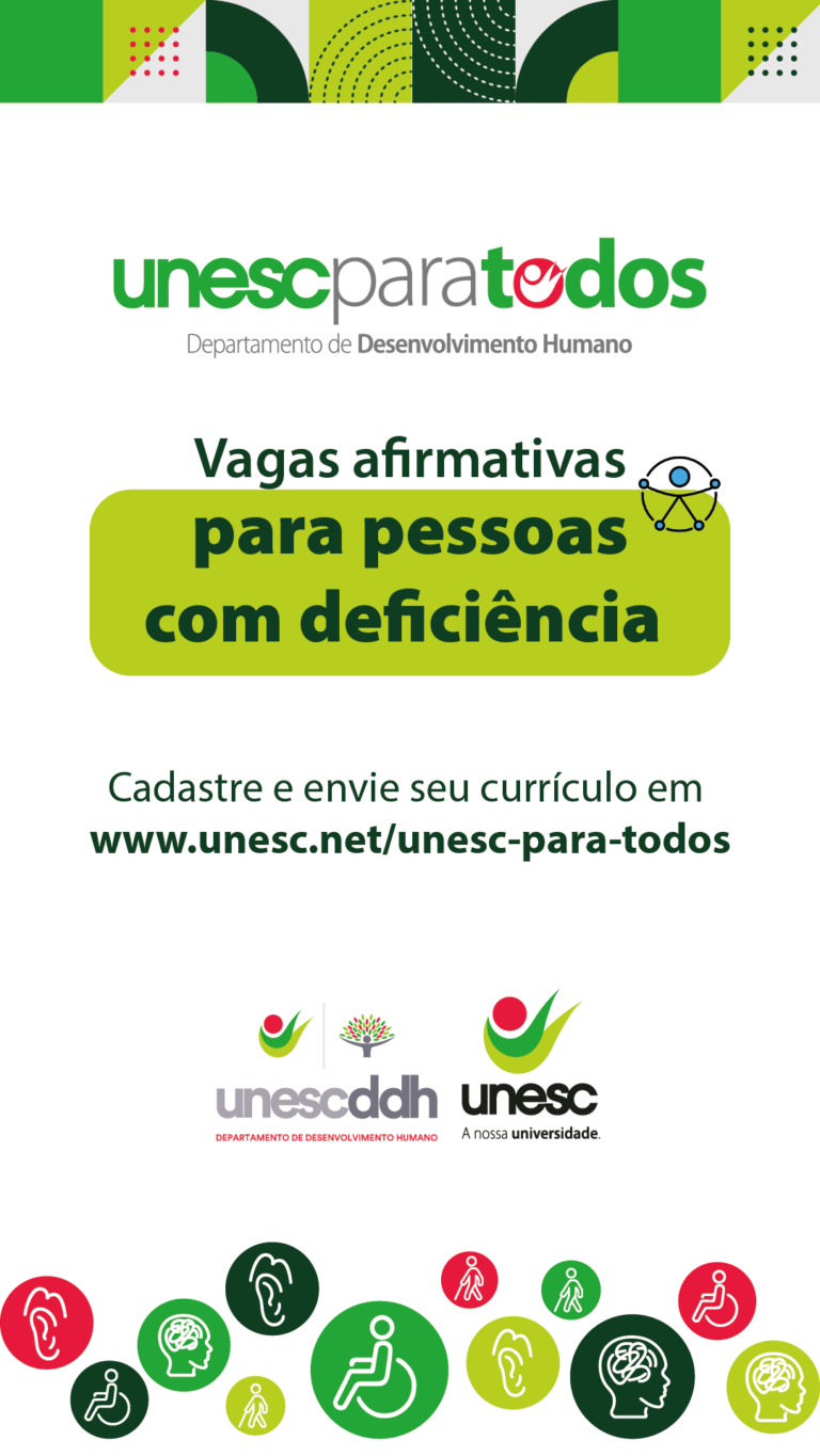 Na última semana de setembro (27/9) a Unesc recebeu o Feirão de Empregos para Pessoas com Deficiência. O evento, fruto da colaboração do Departamento de Desenvolvimento Humano (DDH) da Universidade com a Associação de Empregos de Criciúma (ACIC), teve como objetivo trazer mais oportunidades de trabalho para pessoas com deficiência.