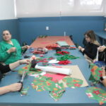 As oficinas ensinam a confeccionar guirlandas com tecidos e bolas de Natal, sempre valorizando a criatividade dos participantes. A atividade também serve como um momento de descontração e interação entre colaboradores de diferentes setores da Unesc.