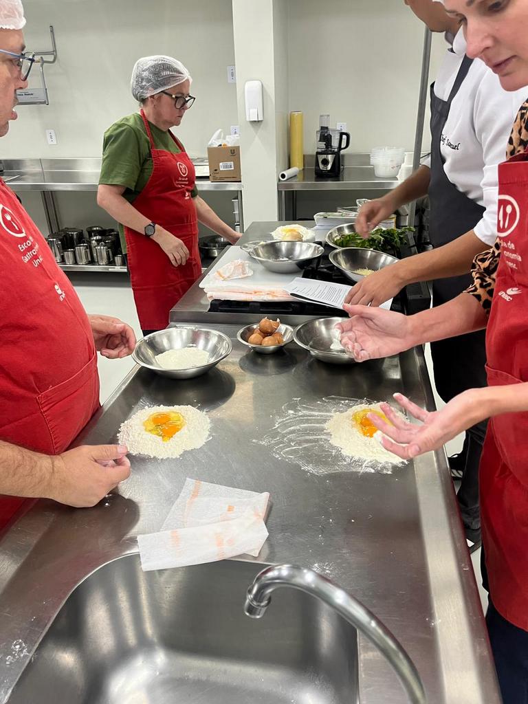 “Foi uma satisfação ver o sucesso e a adesão a encontros como este, que fazem parte do nosso programa de bem-estar”, afirmou o professor Lucas. Ele destacou que a dinâmica do workshop permitiu aos participantes vivenciarem a experiência tátil de fazer sua própria massa fresca de ovos enquanto trabalhavam em grupo na preparação de três molhos: bechamel com gorgonzola, tomate rústico com bacon e pesto de rúcula com castanha.