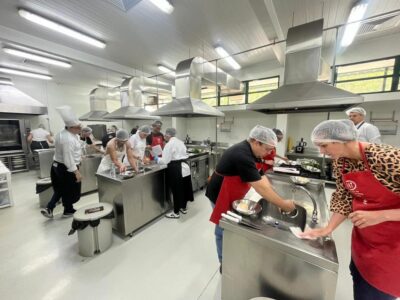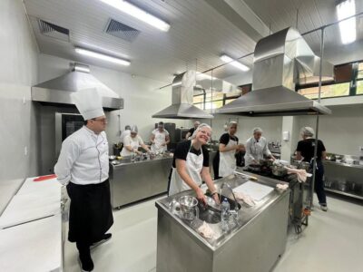 A Unesc promoveu nesta quarta-feira (12/11) mais uma edição da Cozinha de Lazer, com um workshop dedicado à produção de massas frescas e molhos. O encontro, realizado no Laboratório de Nutrição e Gastronomia da Universidade, foi conduzido pelo professor Lucas Fabricio de Souza Firmino, professor do curso de Gastronomia e coordenador do curso de Gestão de Turismo, e integra as ações do programa Estilo Unesc de Bem Viver e Conviver.