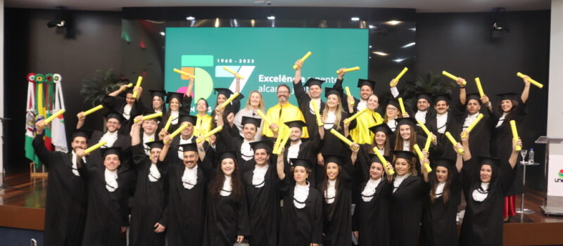 A noite desta segunda-feira (15/12) ficou marcada na Unesc pela celebração de mais uma importante conquista acadêmica. A Universidade realizou, no Auditório Ruy Hulse, a cerimônia de outorga de grau dos cursos de Artes Visuais, Ciências Biológicas e Educação Física, reunindo 37 formandos que concluíram essa etapa decisiva de suas trajetórias. A solenidade foi presidida […]