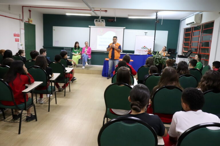 Na manhã desta quarta-feira (3/12), alunos do 6º ano do Colégio Unesc participaram da formatura do programa Defesa Civil na Escola, em cerimônia realizada na Instituição. O programa trabalha com turmas do Ensino Fundamental – Anos Finais, com foco no ensino, na aprendizagem, na participação e na criatividade. A proposta da Defesa Civil de Santa Catarina busca ampliar a resiliência das comunidades frente a eventos adversos.