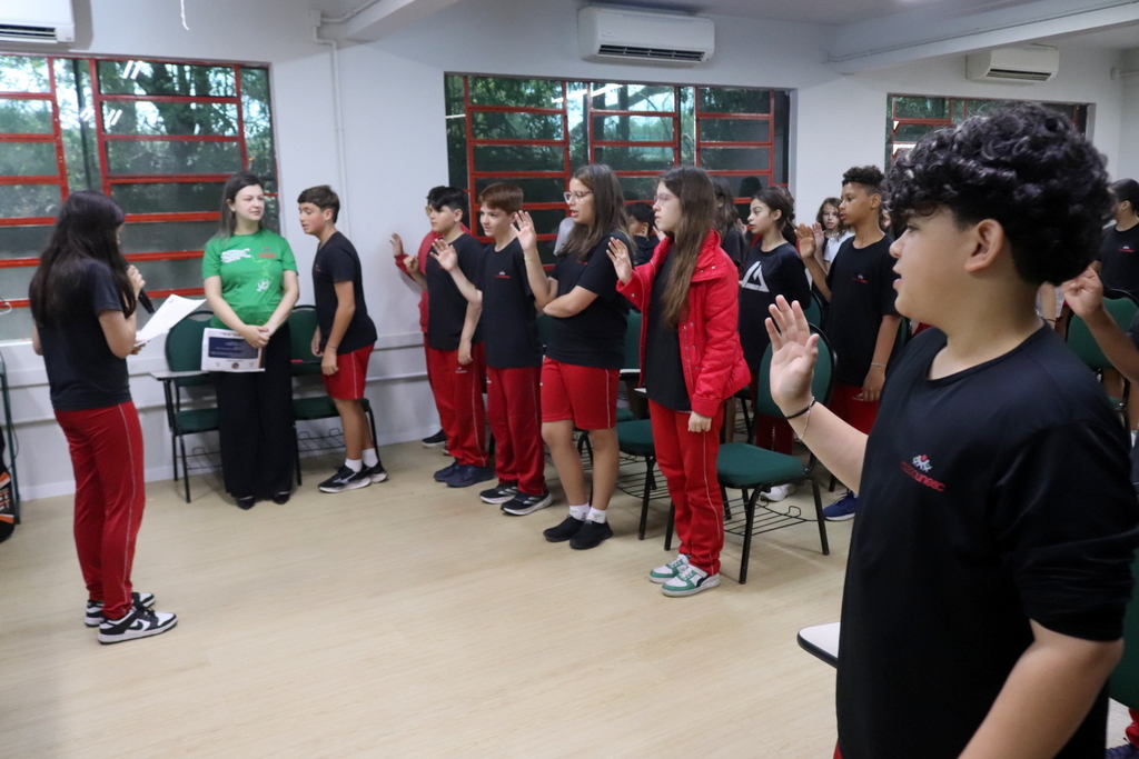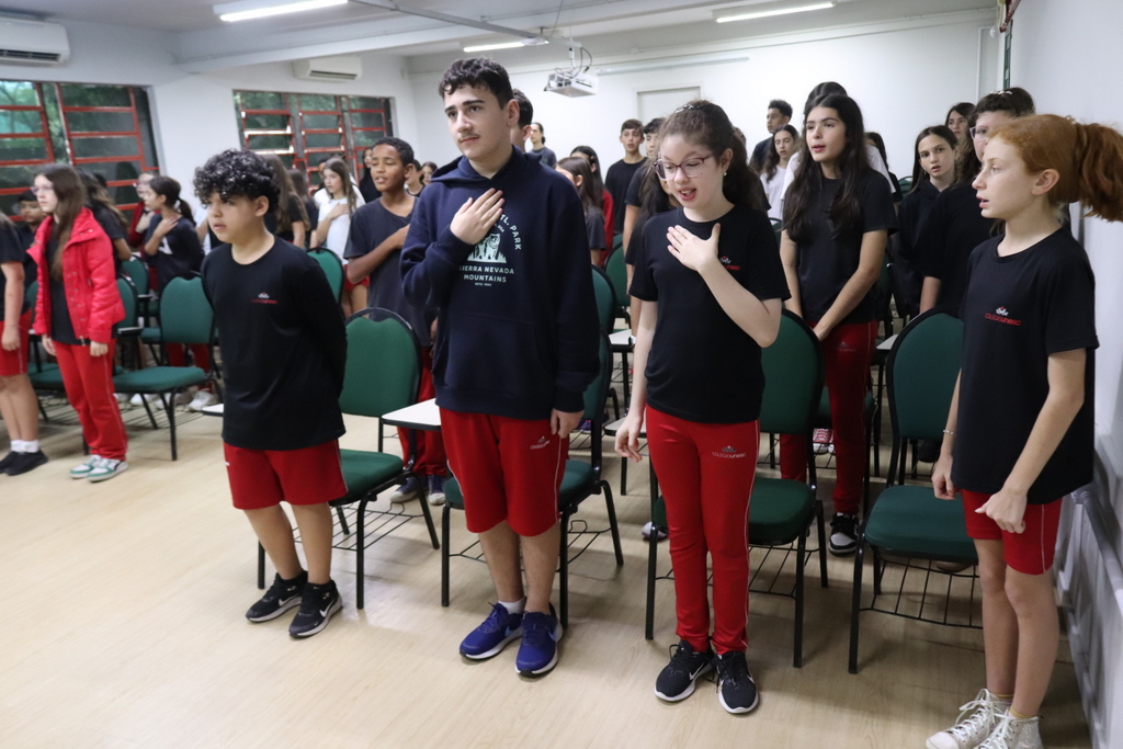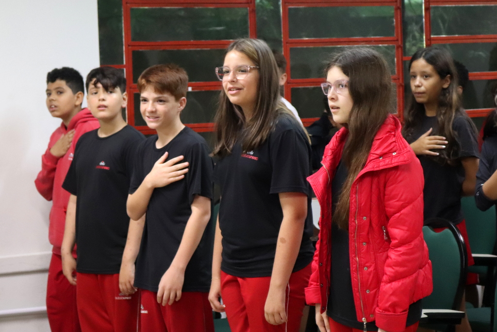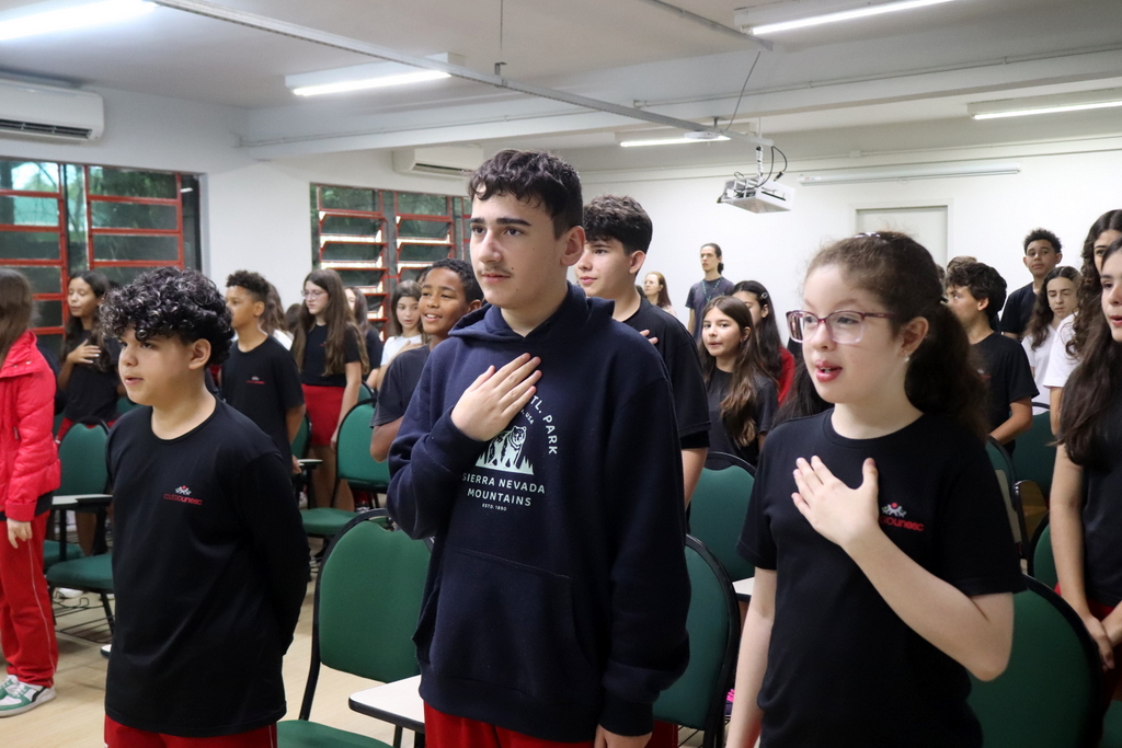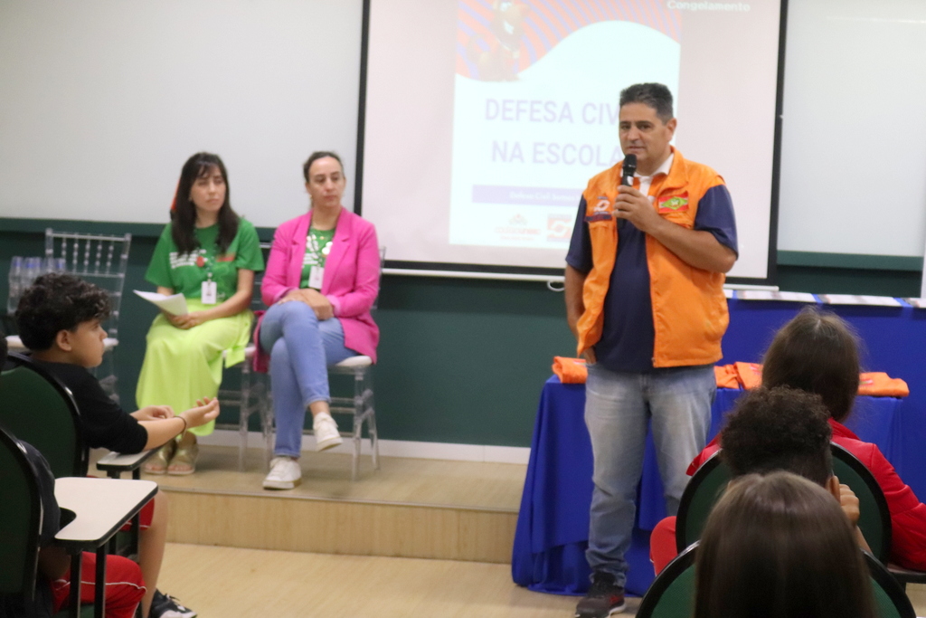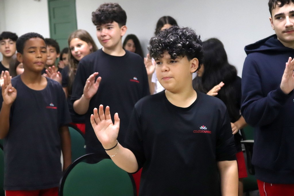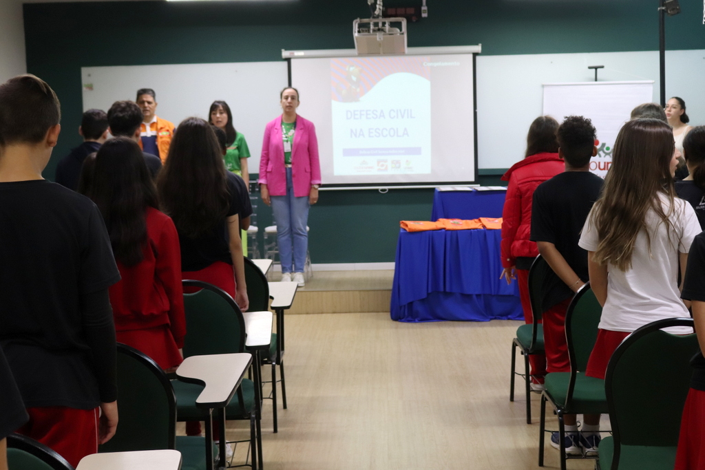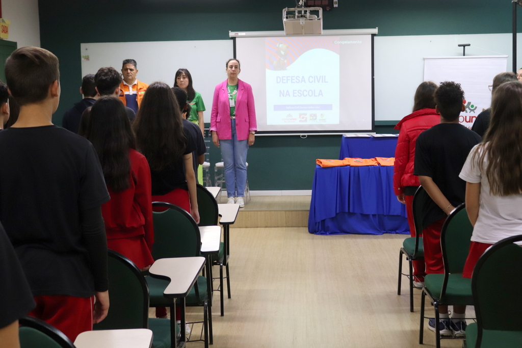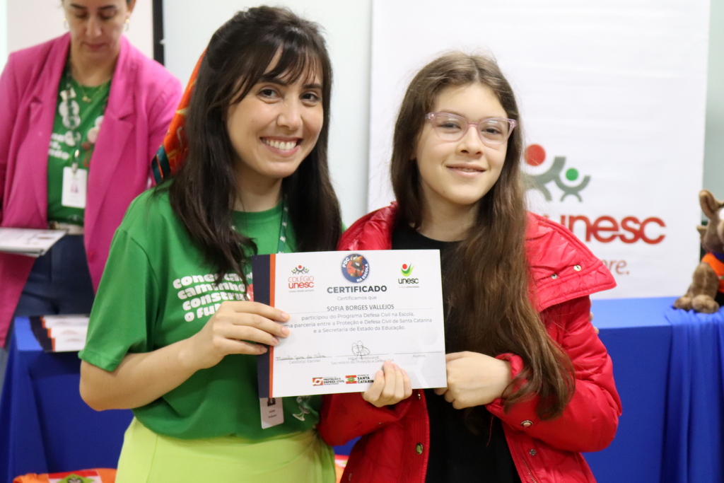 Na manhã desta quarta-feira (3/12), alunos do 6º ano do Colégio Unesc participaram da formatura do programa Defesa Civil na Escola, em cerimônia realizada na Instituição. O programa trabalha com turmas do Ensino Fundamental – Anos Finais, com foco no ensino, na aprendizagem, na participação e na criatividade. A proposta da Defesa Civil de Santa Catarina busca ampliar a resiliência das comunidades frente a eventos adversos.