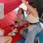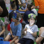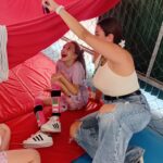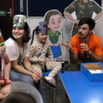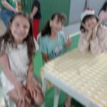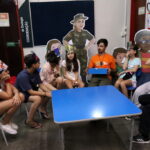 Dentro do Game Night, um dos momentos mais aguardados foi a atividade semelhante a uma caça ao tesouro. As crianças seguiram as pistas até encontrar o prêmio final, uma lembrança personalizada com foto e nome, acompanhada de um brinquedo pop tube com LED, que permitiu brincar e circular no escuro, ampliando a sensação de encantamento.