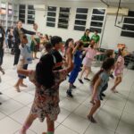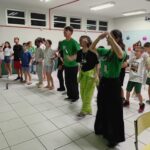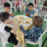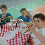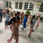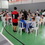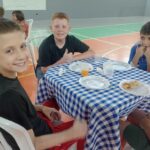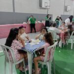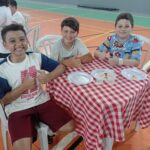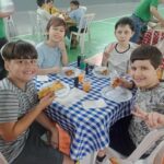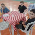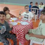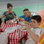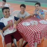 “Outro ponto alto da noite foi o jantar. O ginásio transformou-se em uma praça de alimentação, com rodízio de pizzas salgadas. Para muitos alunos, o momento ficou marcado como “o dia da pizza”, reforçando o caráter afetivo da vivência”, comenta Patrícia.