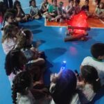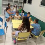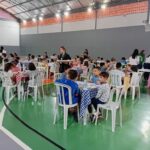 De pijamas, pantufas e lanternas, os alunos do Colégio Unesc participaram de uma série de ações e brincadeiras que encerraram o ano letivo. O projeto “Uma Noite e Muitas Histórias” reúne atividades que valorizam o brincar, a imaginação e a convivência entre os estudantes dos anos iniciais do Ensino Fundamental. Ao longo da noite, as crianças circularam por diferentes espaços do colégio e da Universidade, participando de jogos, dinâmicas e experiências culturais.