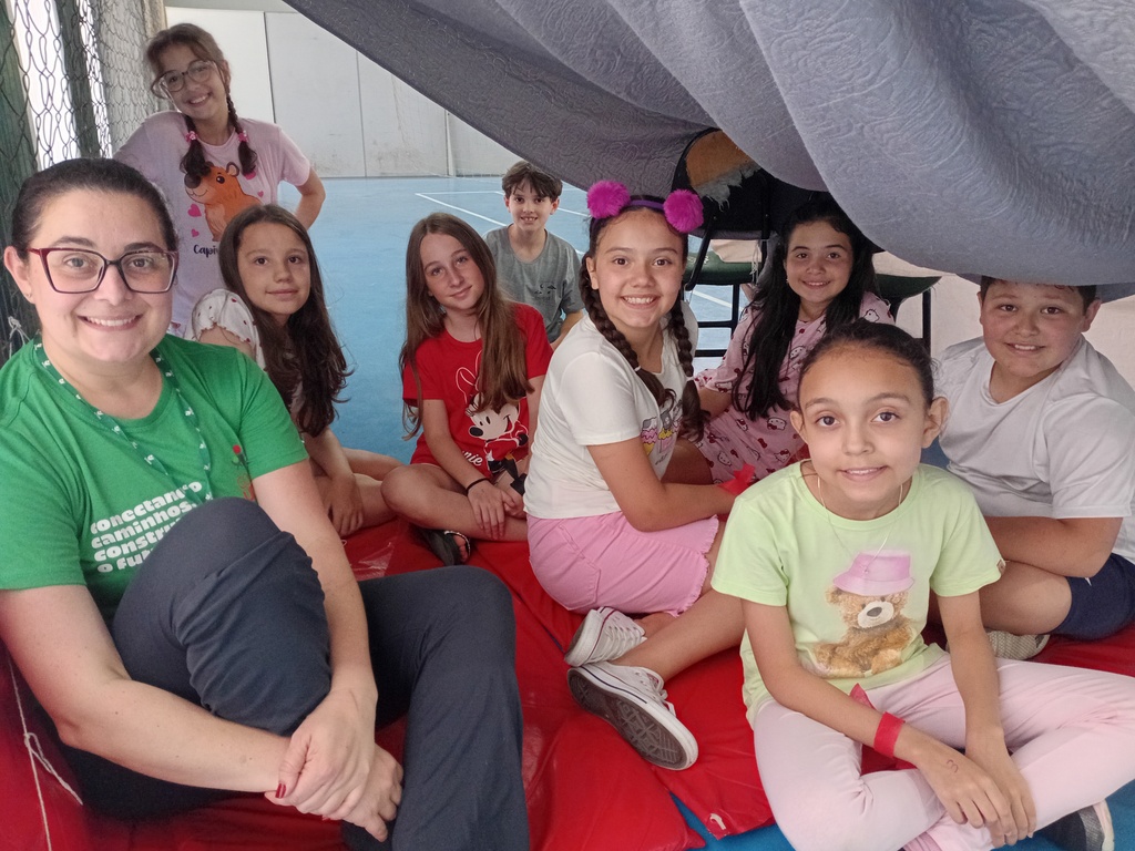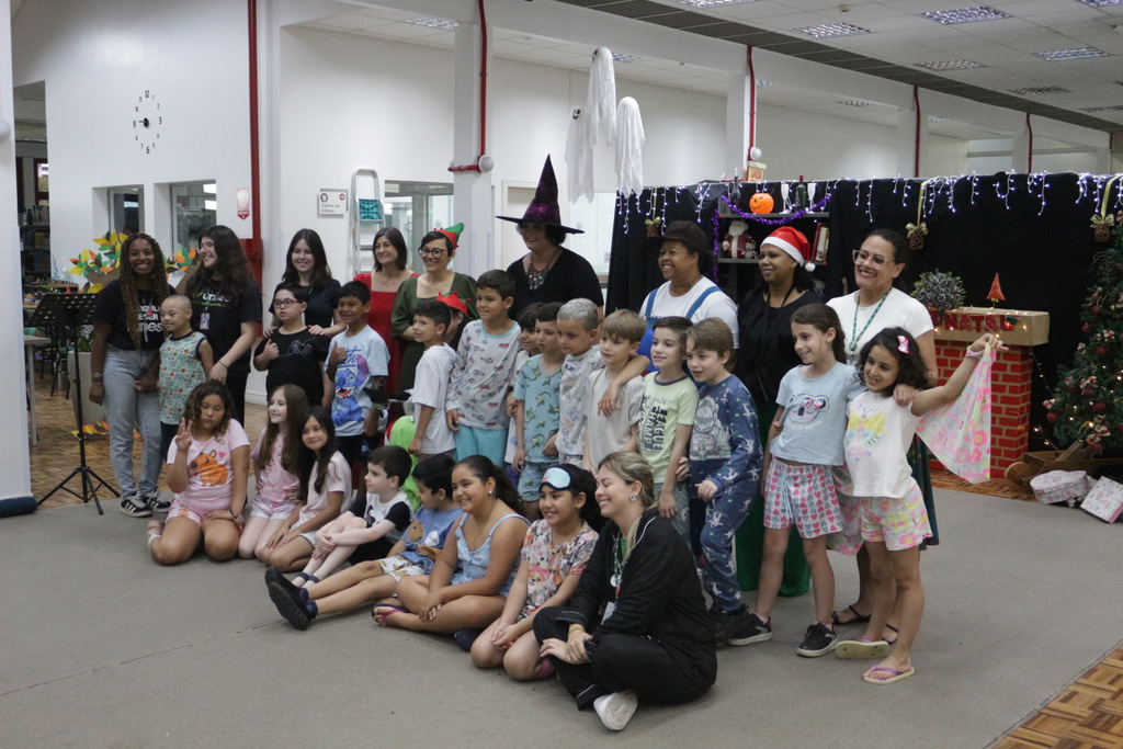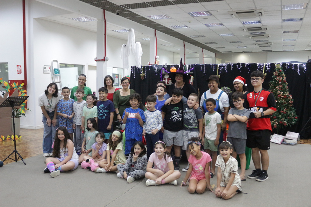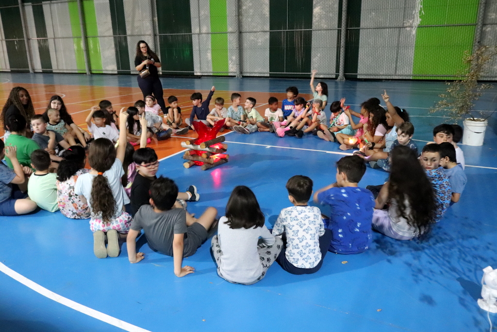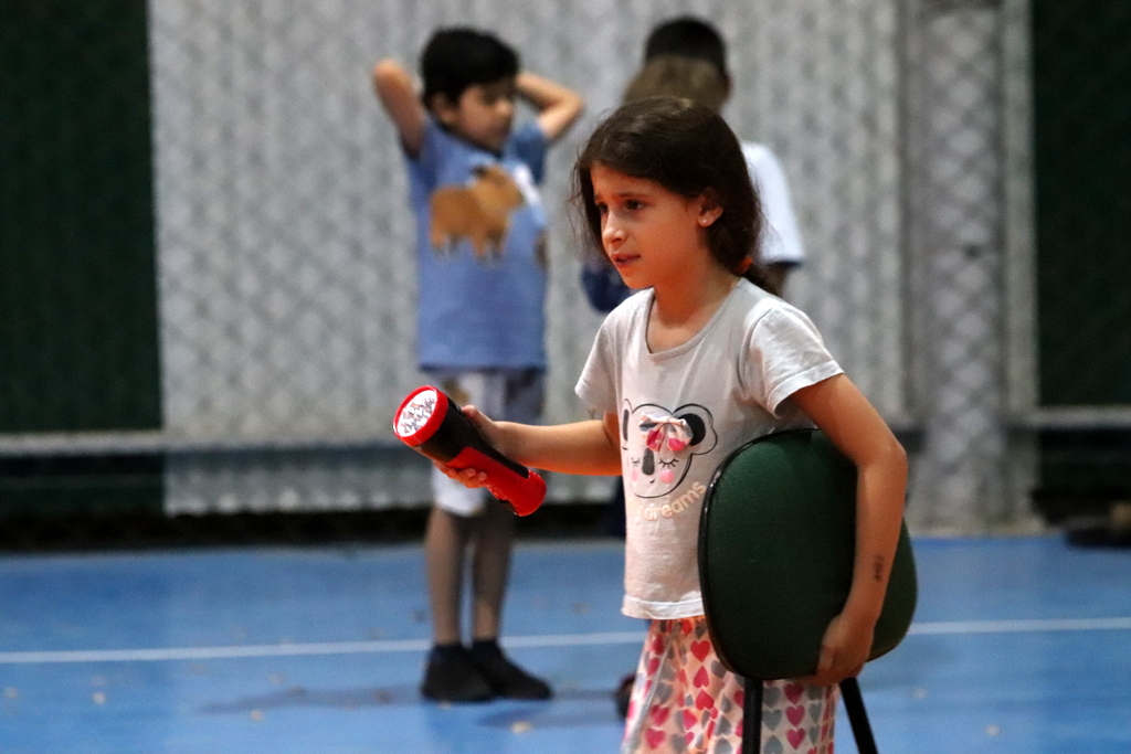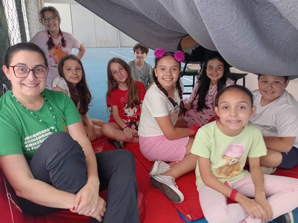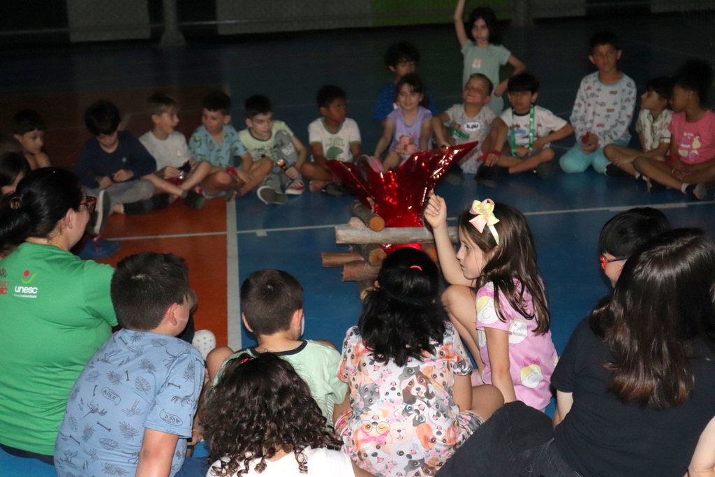 De pijamas, pantufas e lanternas, os alunos do Colégio Unesc participaram de uma série de ações e brincadeiras que encerraram o ano letivo. O projeto “Uma Noite e Muitas Histórias” reúne atividades que valorizam o brincar, a imaginação e a convivência entre os estudantes dos anos iniciais do Ensino Fundamental. Ao longo da noite, as crianças circularam por diferentes espaços do colégio e da Universidade, participando de jogos, dinâmicas e experiências culturais.