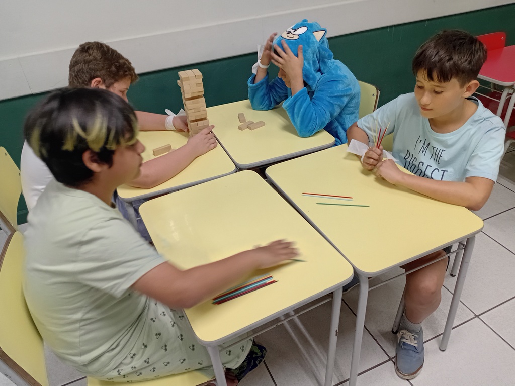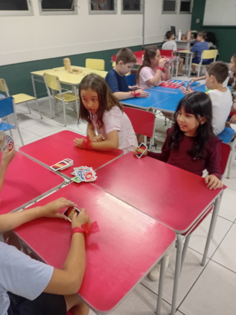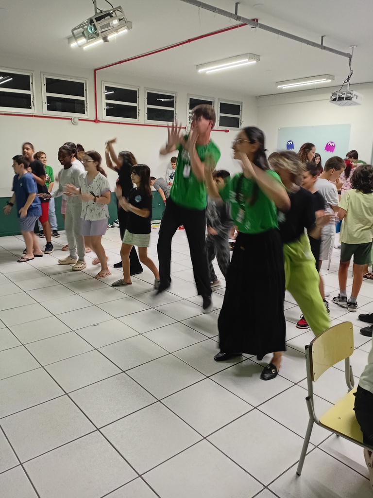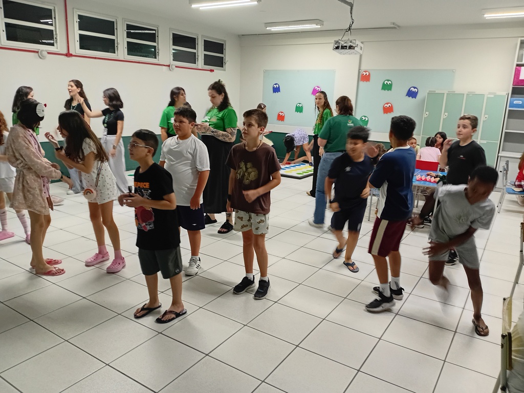 A programação deste ano contou com o Game Night, que transformou salas em ambientes temáticos com jogos como Just Dance, com a interação em inglês, em parceria com a área de Artes. Na quadra de basquete, circuitos de brincadeiras garantiram movimento e integração.