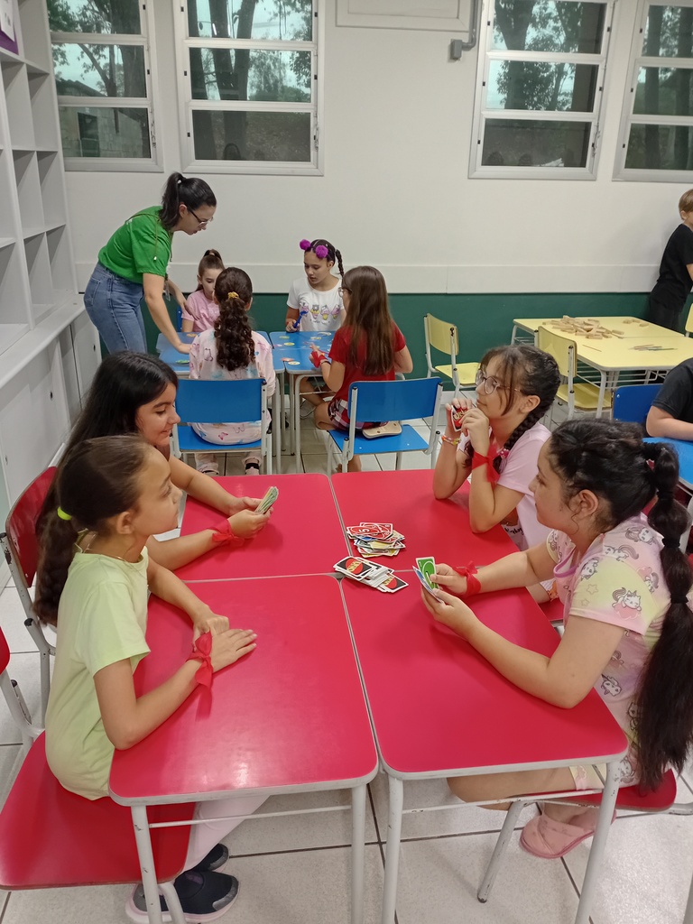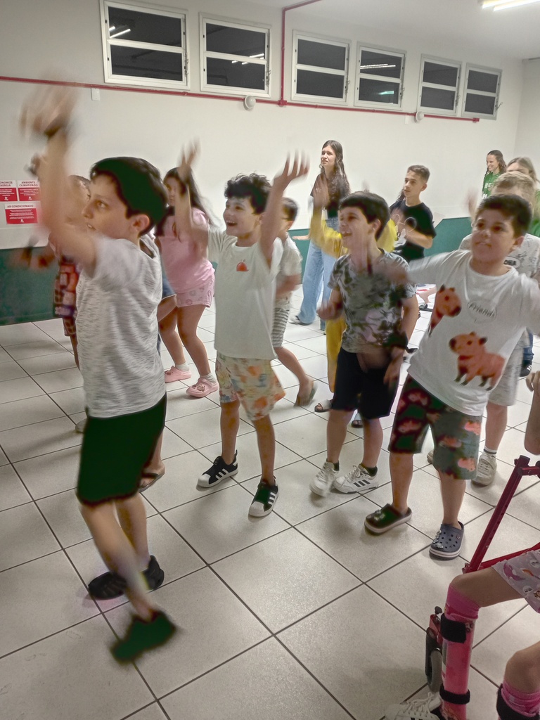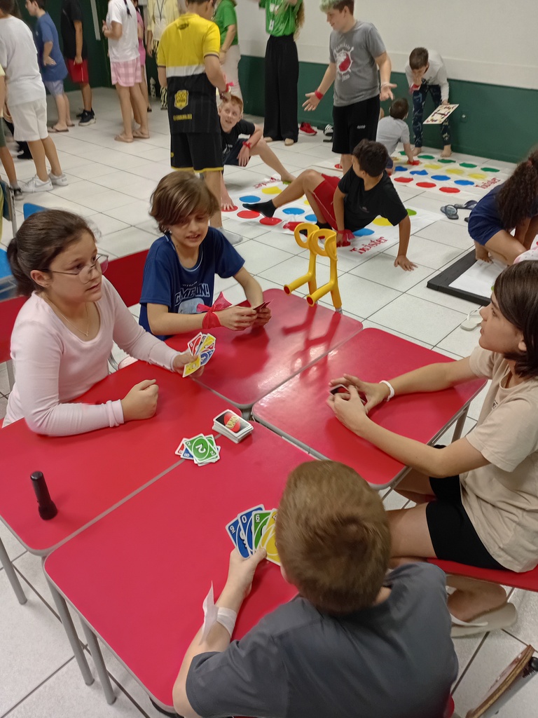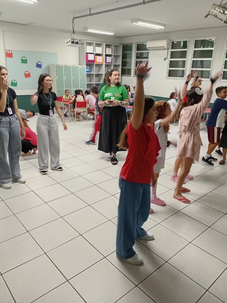 A programação deste ano contou com o Game Night, que transformou salas em ambientes temáticos com jogos como Just Dance, com a interação em inglês, em parceria com a área de Artes. Na quadra de basquete, circuitos de brincadeiras garantiram movimento e integração.