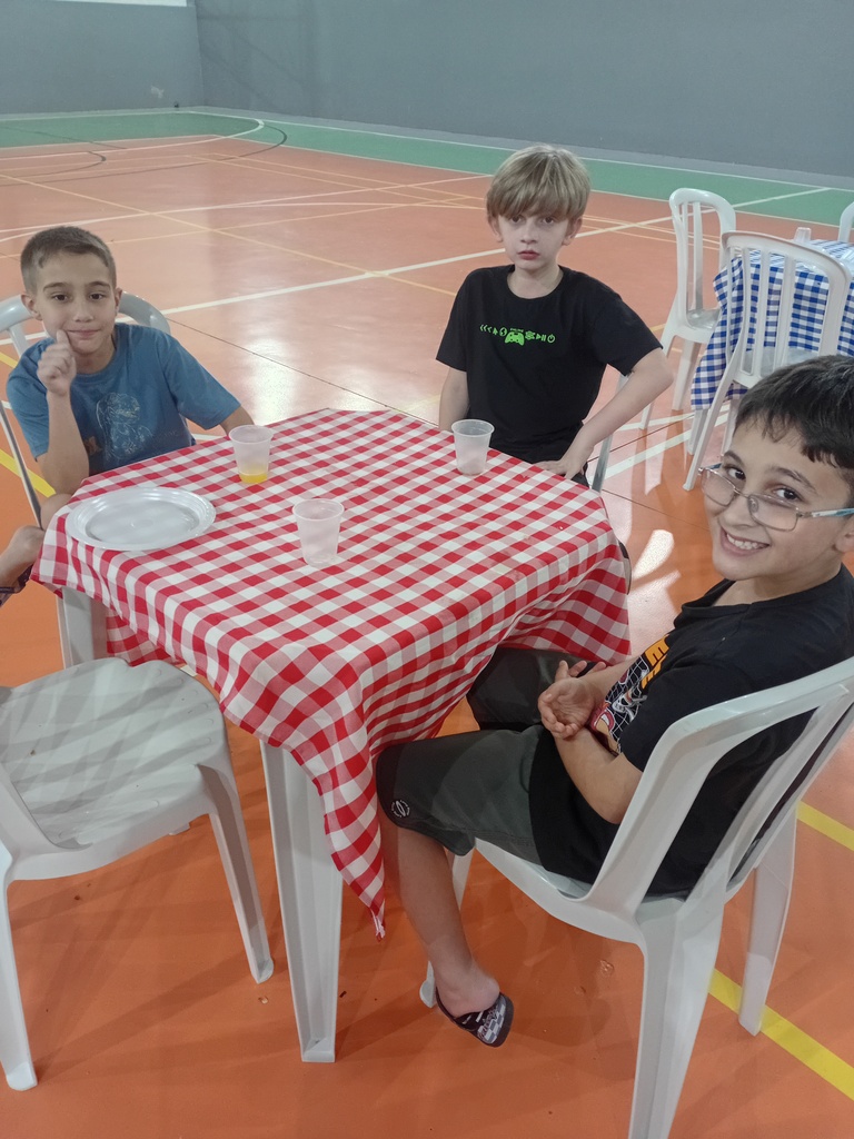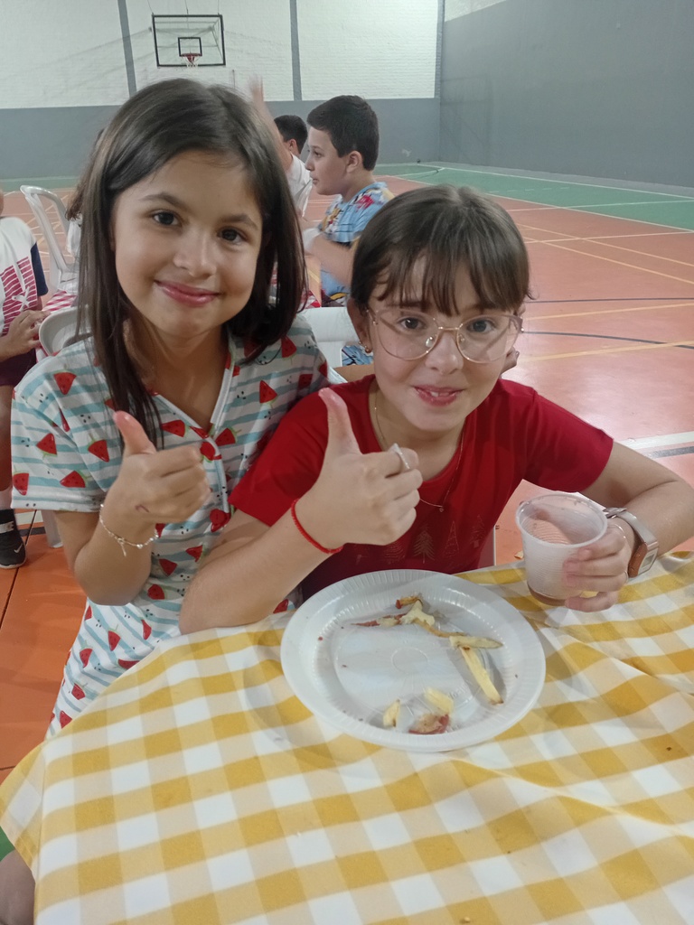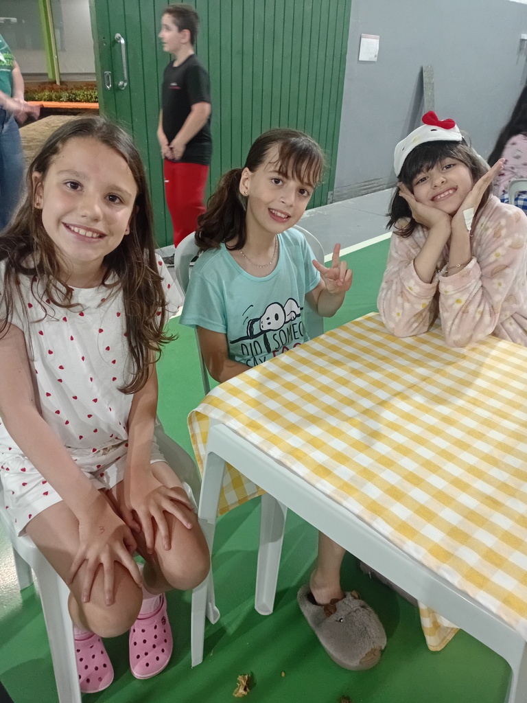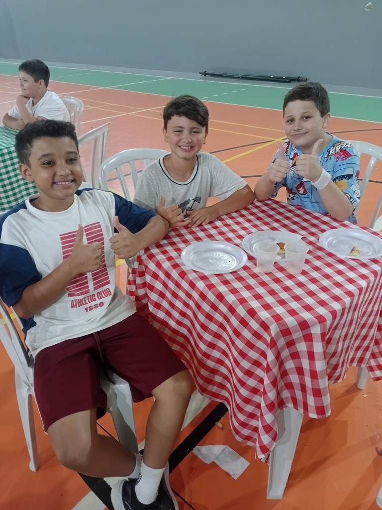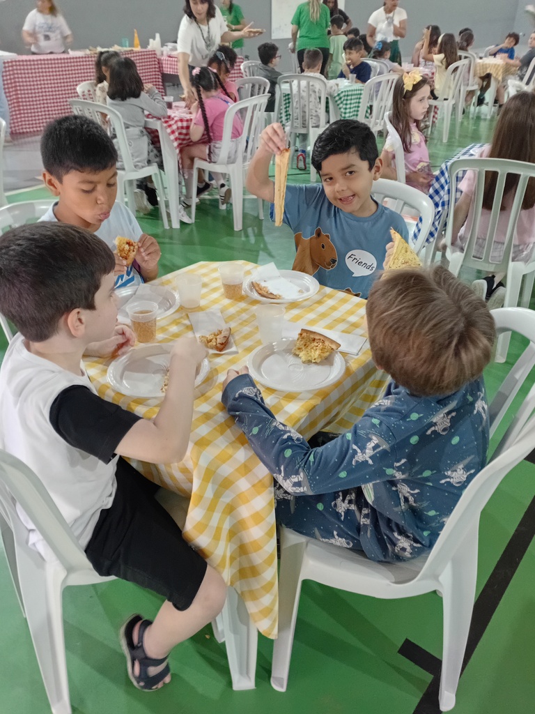 “Outro ponto alto da noite foi o jantar. O ginásio transformou-se em uma praça de alimentação, com rodízio de pizzas salgadas. Para muitos alunos, o momento ficou marcado como “o dia da pizza”, reforçando o caráter afetivo da vivência”, comenta Patrícia.