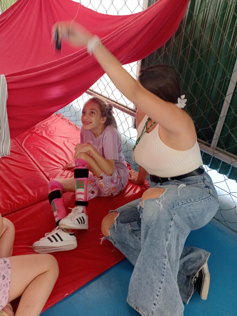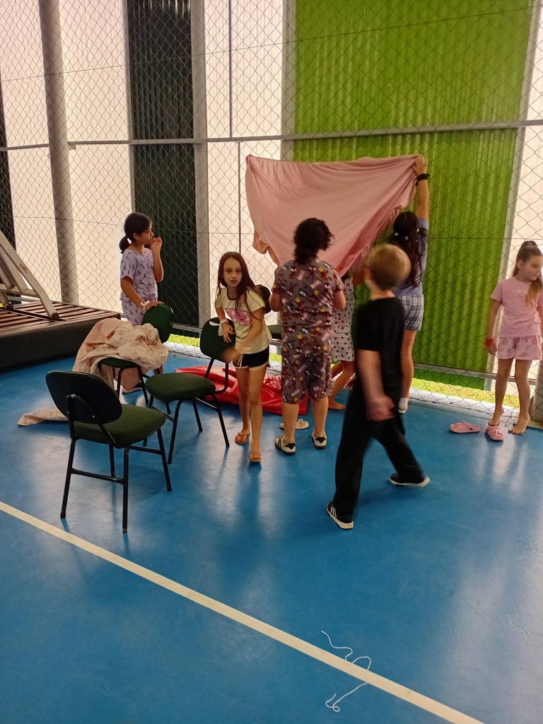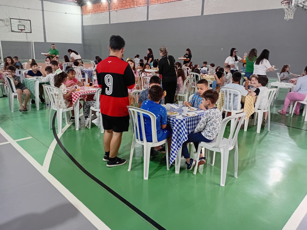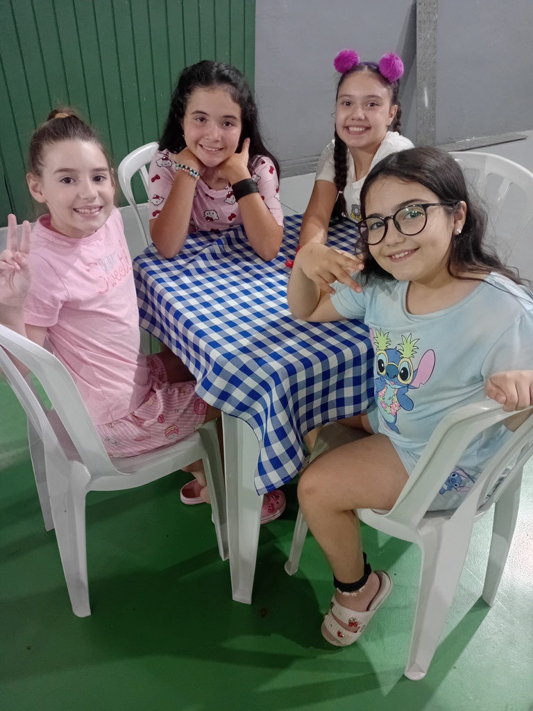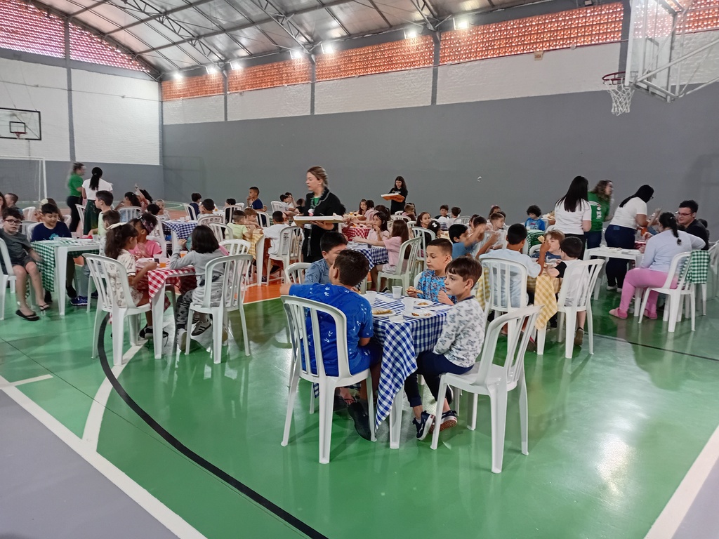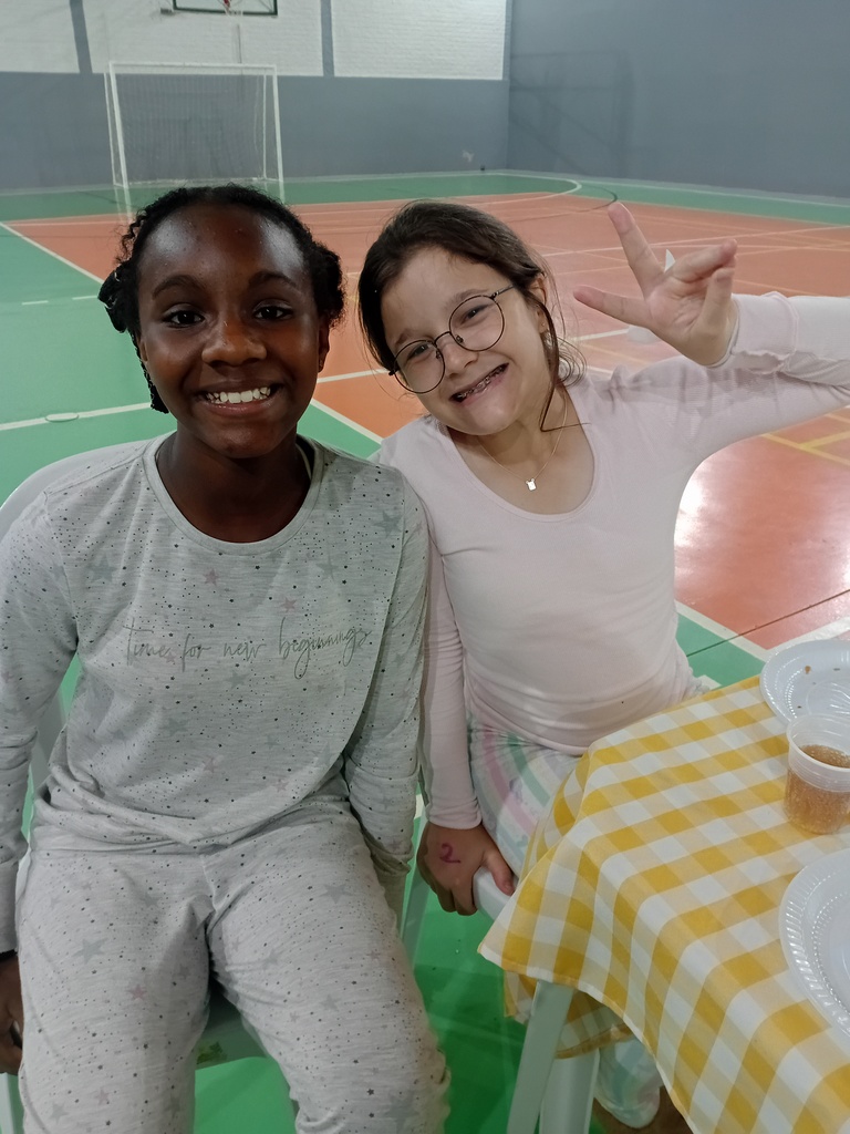 “Outro ponto alto da noite foi o jantar. O ginásio transformou-se em uma praça de alimentação, com rodízio de pizzas salgadas. Para muitos alunos, o momento ficou marcado como “o dia da pizza”, reforçando o caráter afetivo da vivência”, comenta Patrícia.