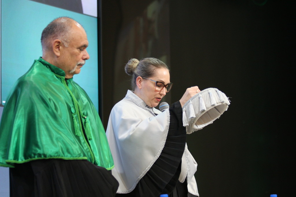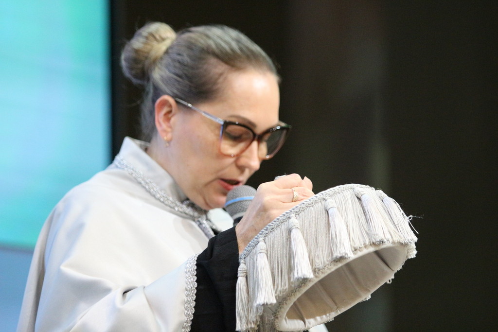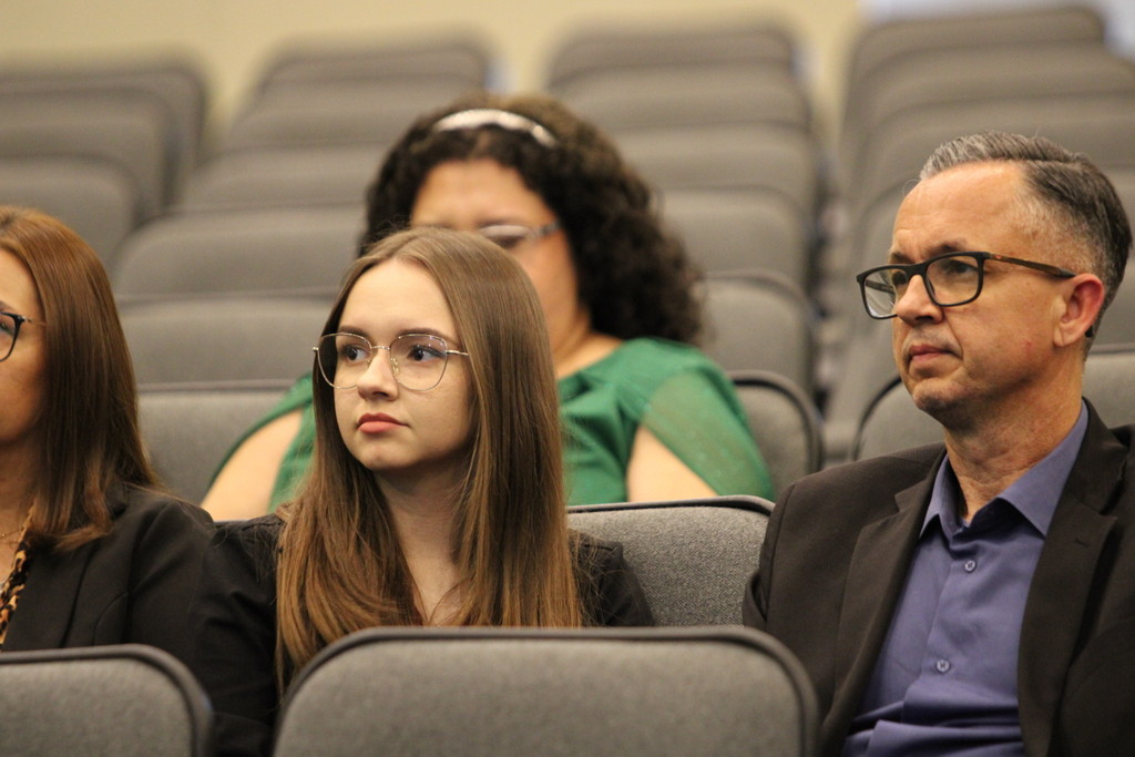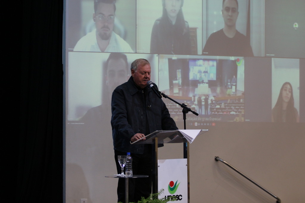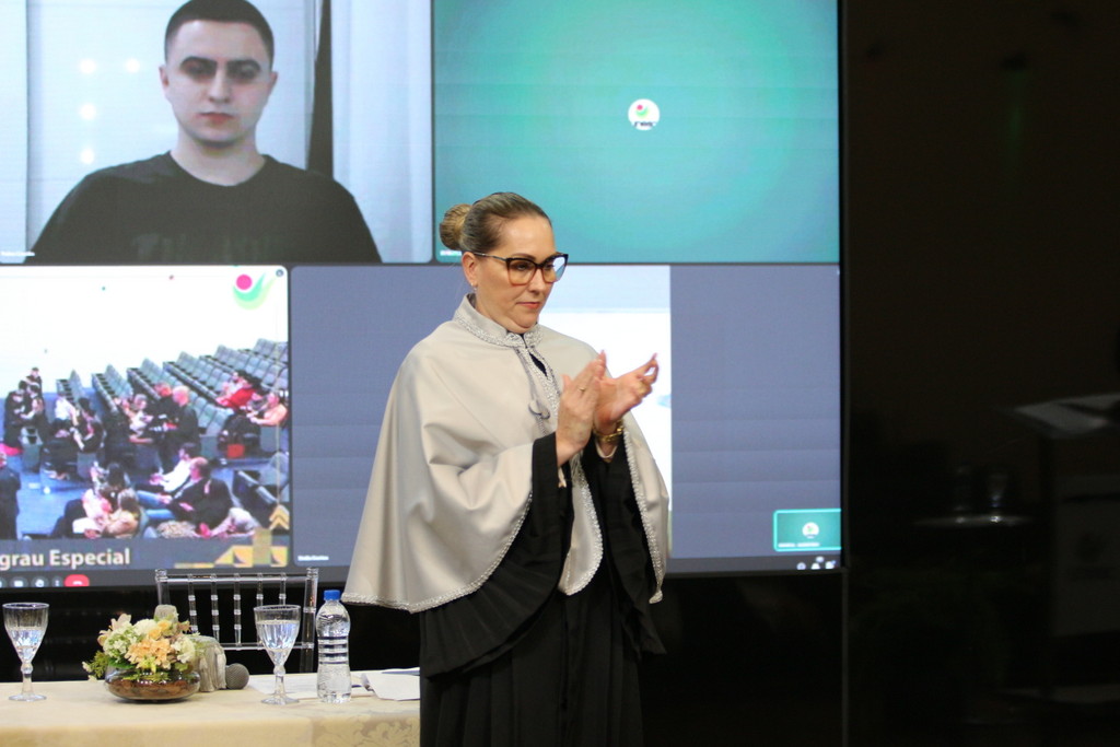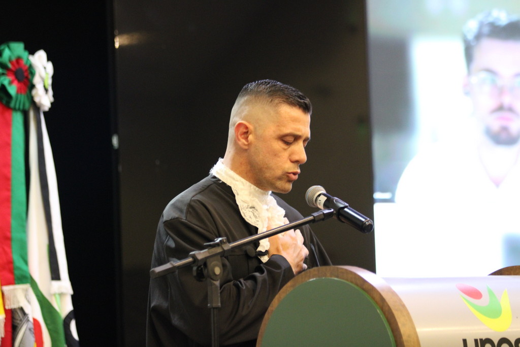Em um formato híbrido, o evento reuniu presencialmente e de forma remota os novos profissionais que concluíram a jornada acadêmica, marcada por desafios, superação e aprendizado.A diretora de Atenção ao Estudante da Unesc, Miquele Lazarin Padula, que presidiu a sessão, destacou a importância do momento e o esforço de cada formando. “Esta cerimônia marca o encerramento de um ciclo de muito esforço, superação e aprendizado. Cada um de vocês trilhou um caminho de desafios e conquistas, equilibrando estudos, trabalho e vida pessoal, demonstrando determinação e compromisso com o próprio futuro. Que a formação que receberam aqui inspire cada passo, impulsione novas especializações e os motive a seguir aprendendo, transformando e contribuindo com a sociedade”, afirmou.
