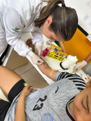 Estudantes e professores que integram a equipe do Laboratório de Ensino de Análises Clínicas (Lenac) da Unesc estiveram nesta semana no estádio Heriberto Hülse para realizar coletas de sangue das atletas das categorias de base do Criciúma Esporte Clube.