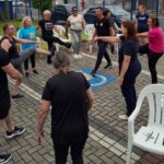 Durante a ação, foram organizados momentos de prática de exercícios acessíveis à população, além de aferição da pressão arterial e glicemia, bem como, entrega de cartilhas com orientações sobre estratégias de autocuidado e recomendações de exercício físico. Ao longo da manhã, mais de 60 pessoas foram beneficiadas pela ação.