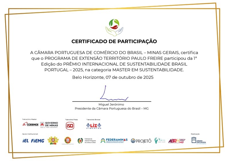 O programa de Extensão Território Paulo Freire também recebeu certificado de participação, na categoria Master em Sustentabilidade.