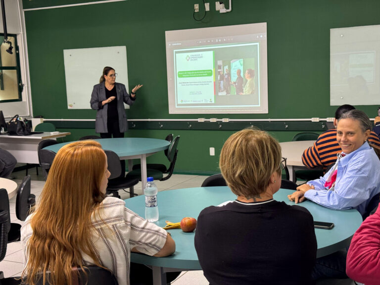 A programação foi dividida em diferentes momentos, começando com a “escrevivência” – um relato visual do encontro anterior, apresentado pela professora Louise Miron Roloff, que utilizou fotos para compartilhar as experiências vividas.