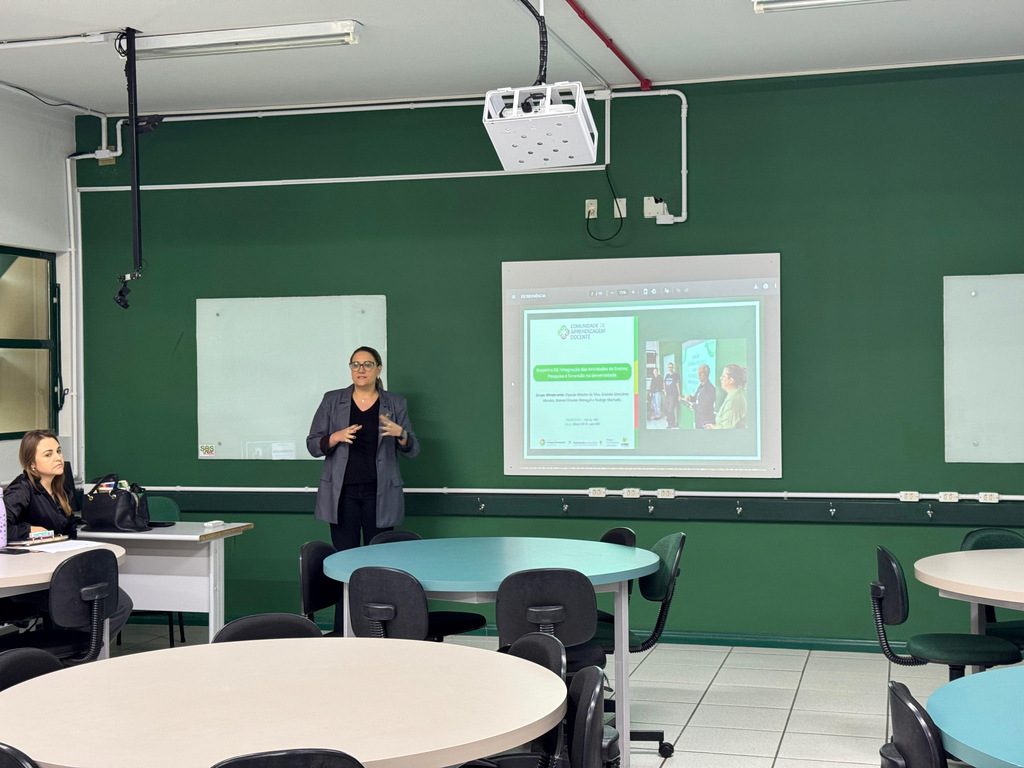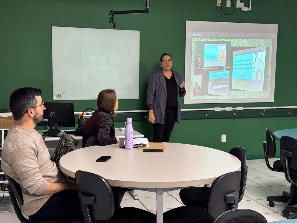 A reunião também contou com a apresentação de um caso de sucesso em inovação pedagógica no curso de Arquitetura e Urbanismo, oferecendo um exemplo prático das teorias discutidas. Para fechar a agenda do grupo, o encontro recebeu o aluno de mestrado Christian Engelmann, que apresentou e debateu sobre a “Inovação no processo de ensino-aprendizagem”.