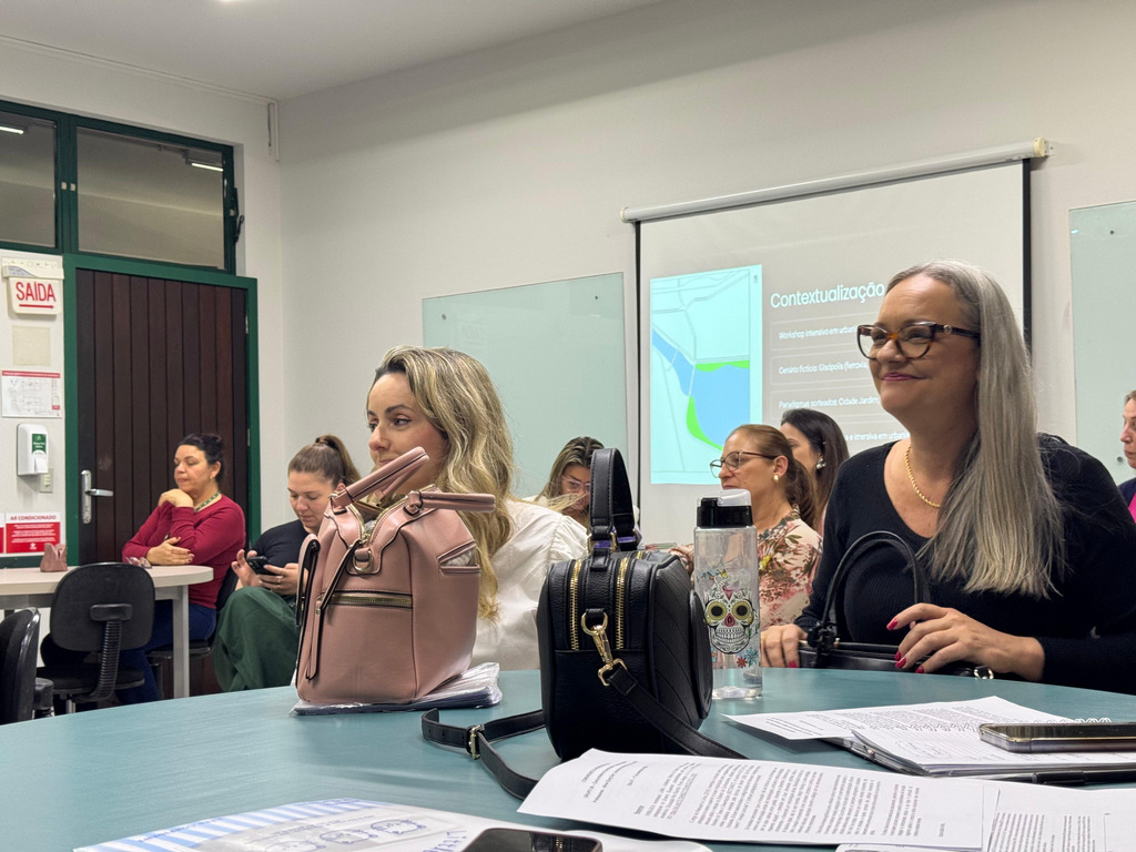 A programação foi dividida em diferentes momentos, começando com a “escrevivência” – um relato visual do encontro anterior, apresentado pela professora Louise Miron Roloff, que utilizou fotos para compartilhar as experiências vividas.