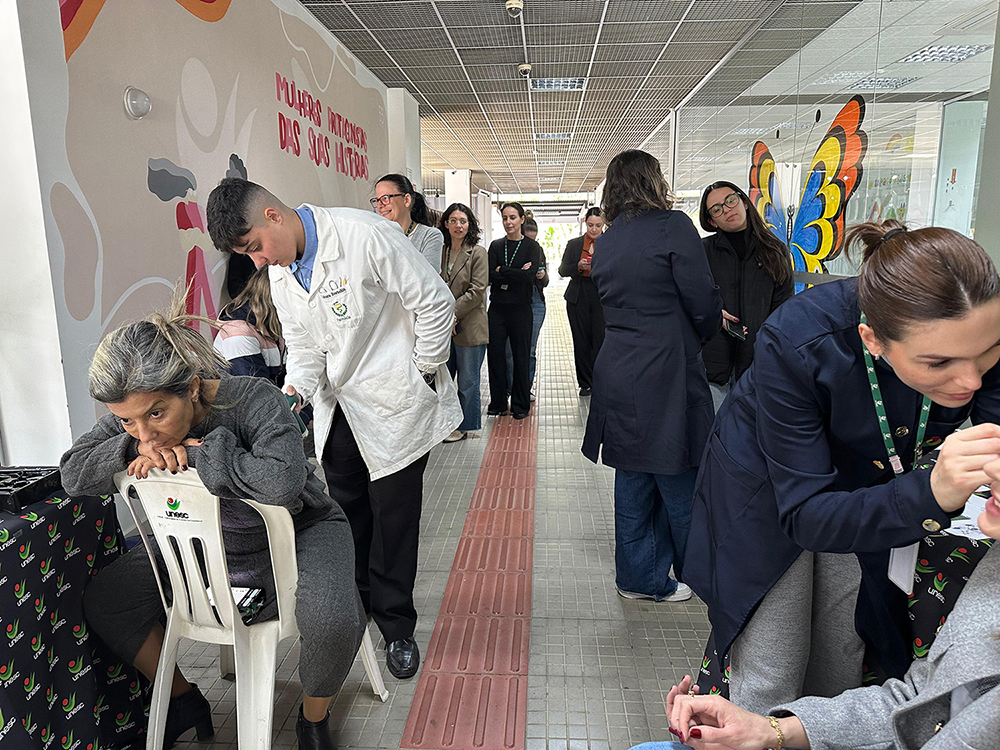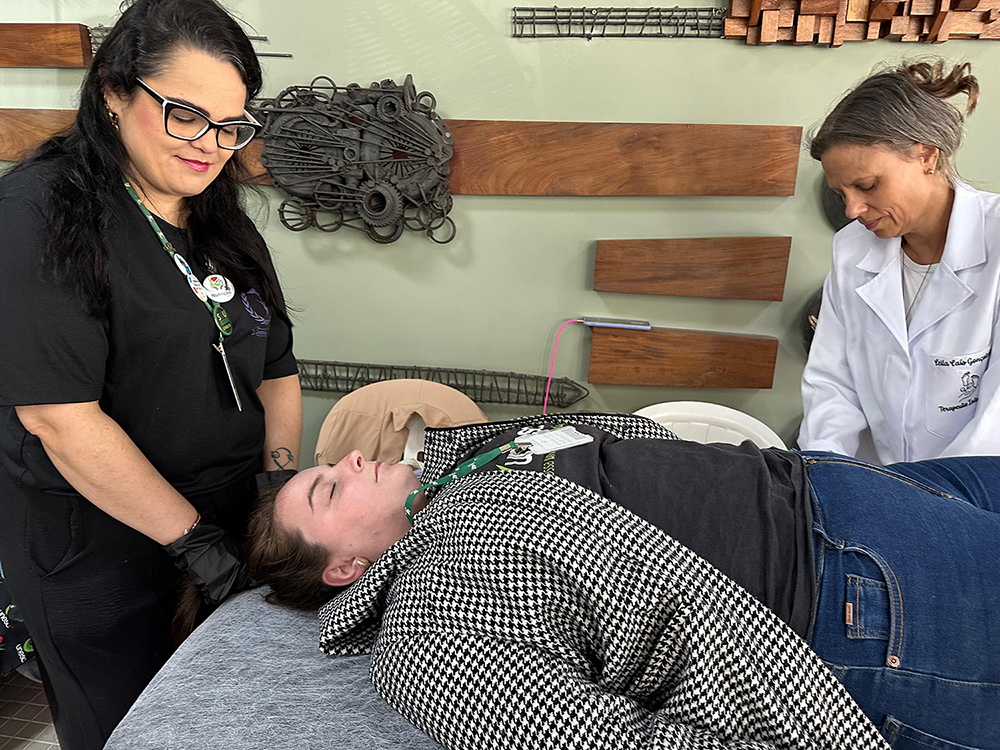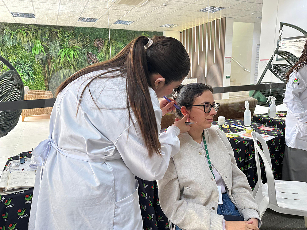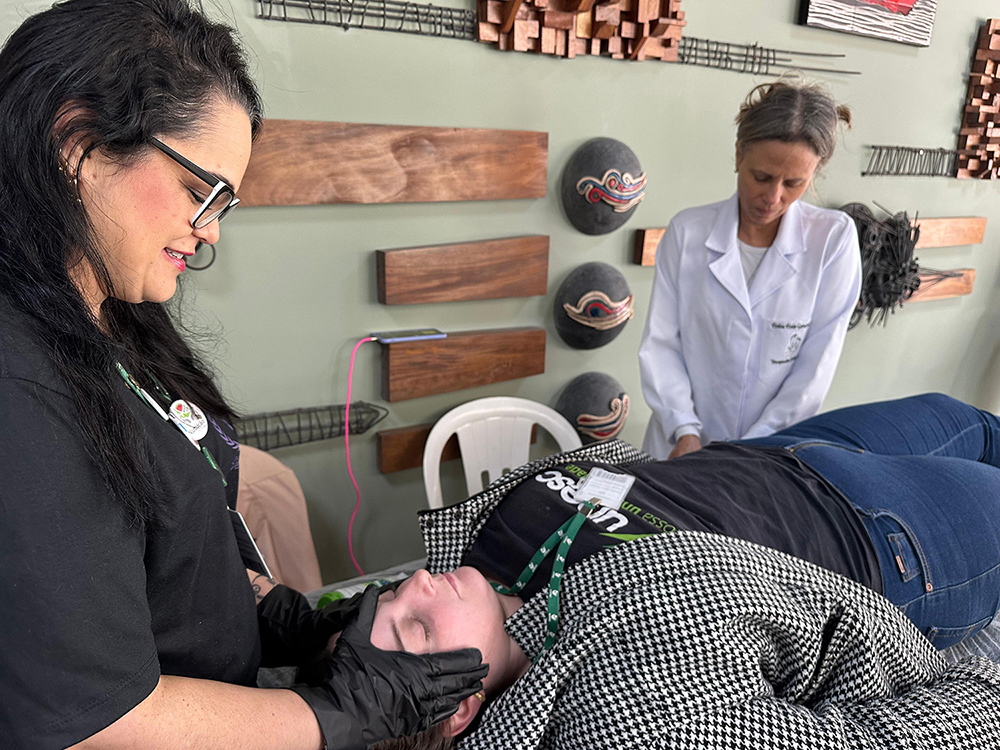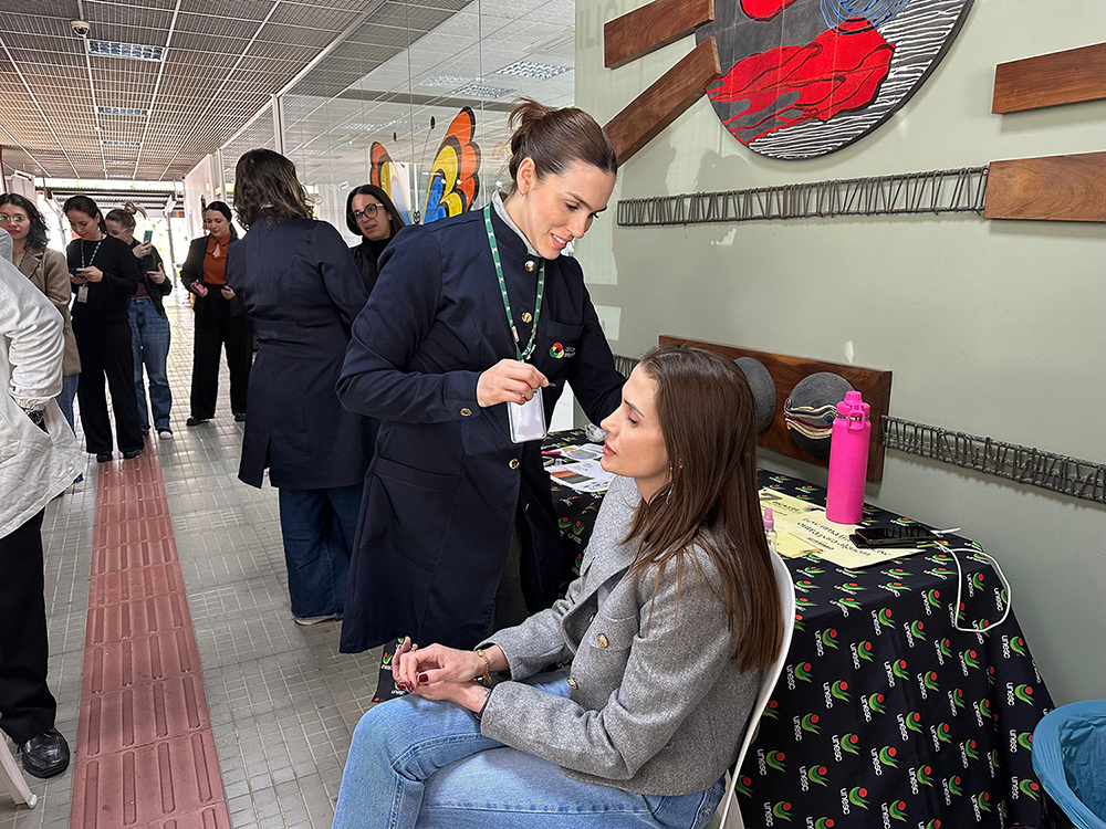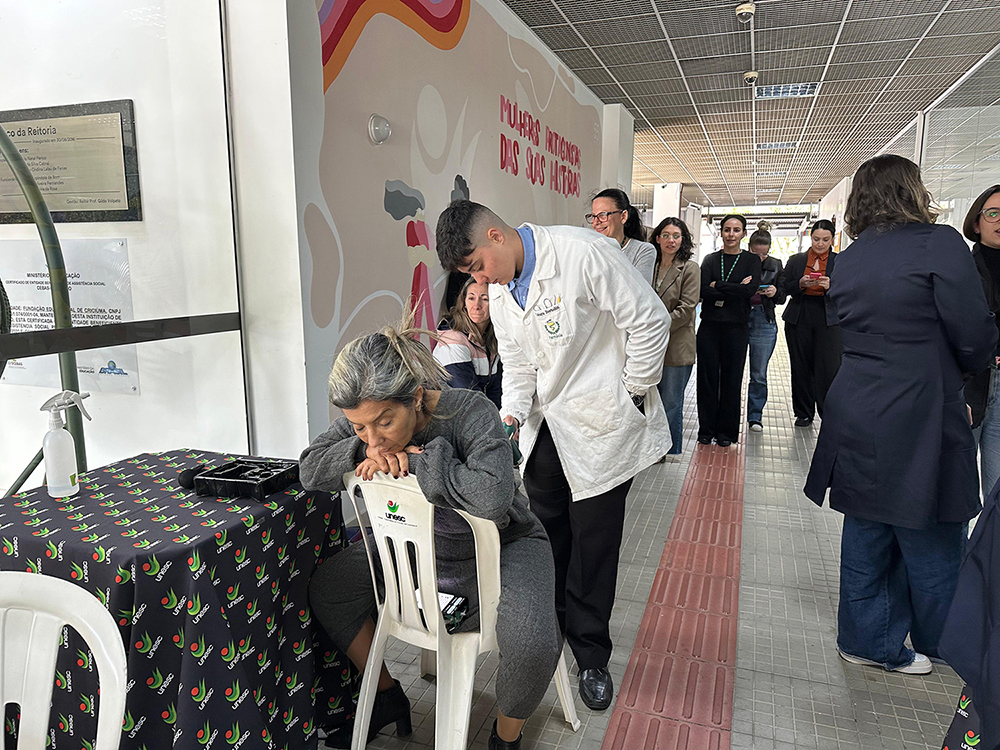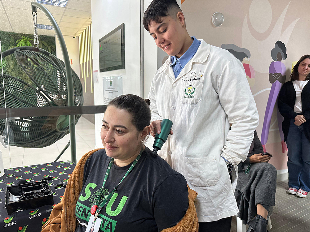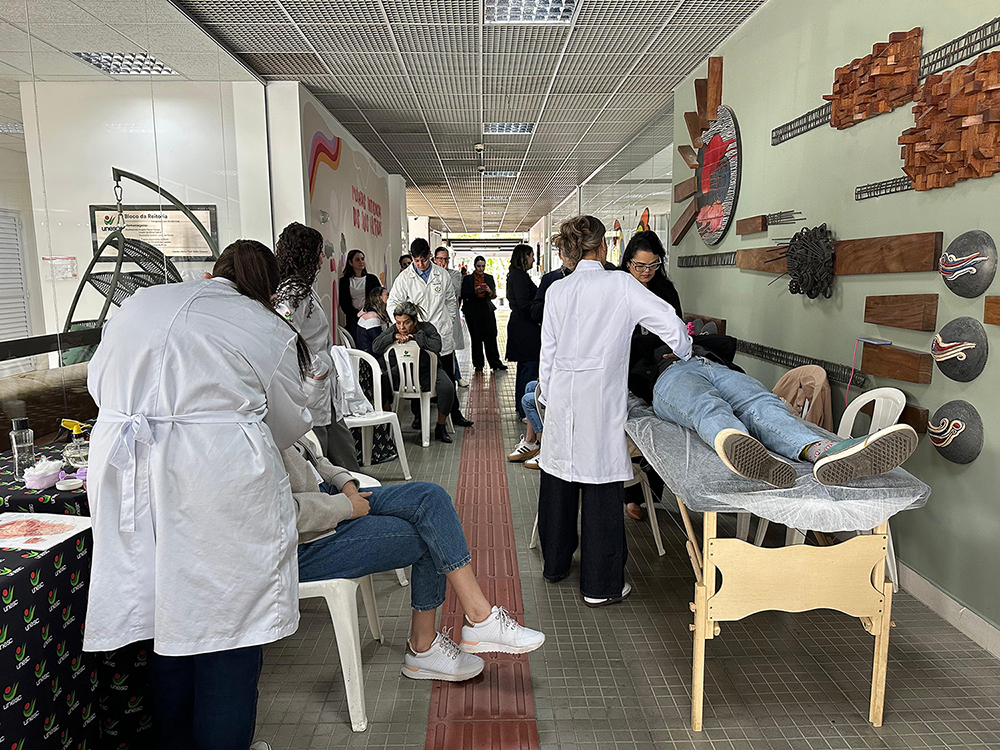 Colaboradores da Universidade participaram da iniciativa e tiveram a oportunidade de vivenciar momentos de relaxamento e bem-estar em meio à rotina de trabalho. A proposta buscou despertar equilíbrio, autocuidado e serenidade, reforçando a importância da atenção à saúde mental e emocional no dia a dia.