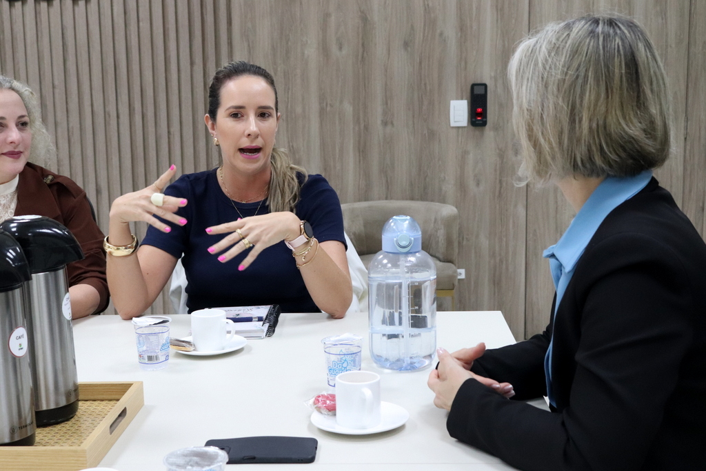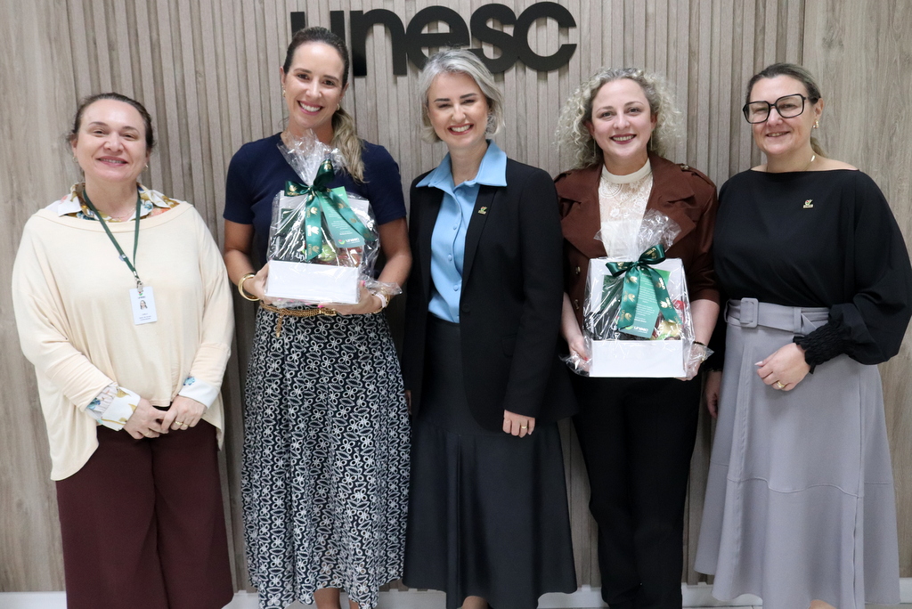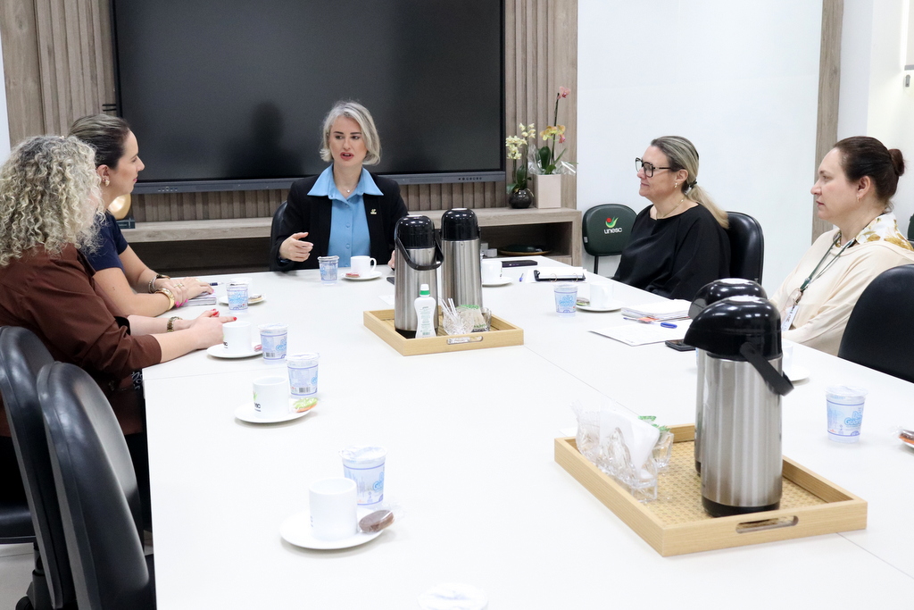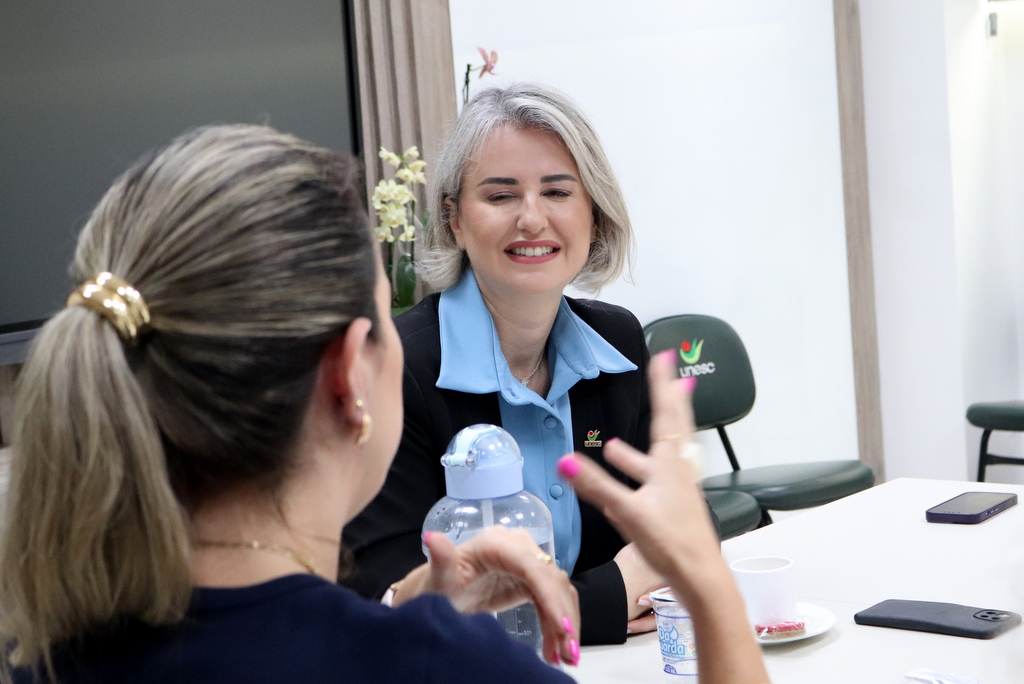 A reitora em exercício da Unesc, Gisele Silveira Coelho Lopes, recebeu na manhã desta quarta-feira (1/10), a primeira-dama de Morro da Fumaça, Roberta Inocêncio, e a presidente do Legislativo, Marijane Felippe, para discutir possíveis parcerias voltadas ao público da terceira idade. O encontro teve como foco a apresentação de projeto da Universidade que busca estimular o aprendizado, novas experiências e a redescoberta de talentos para pessoas a partir dos 50 anos de idade.
