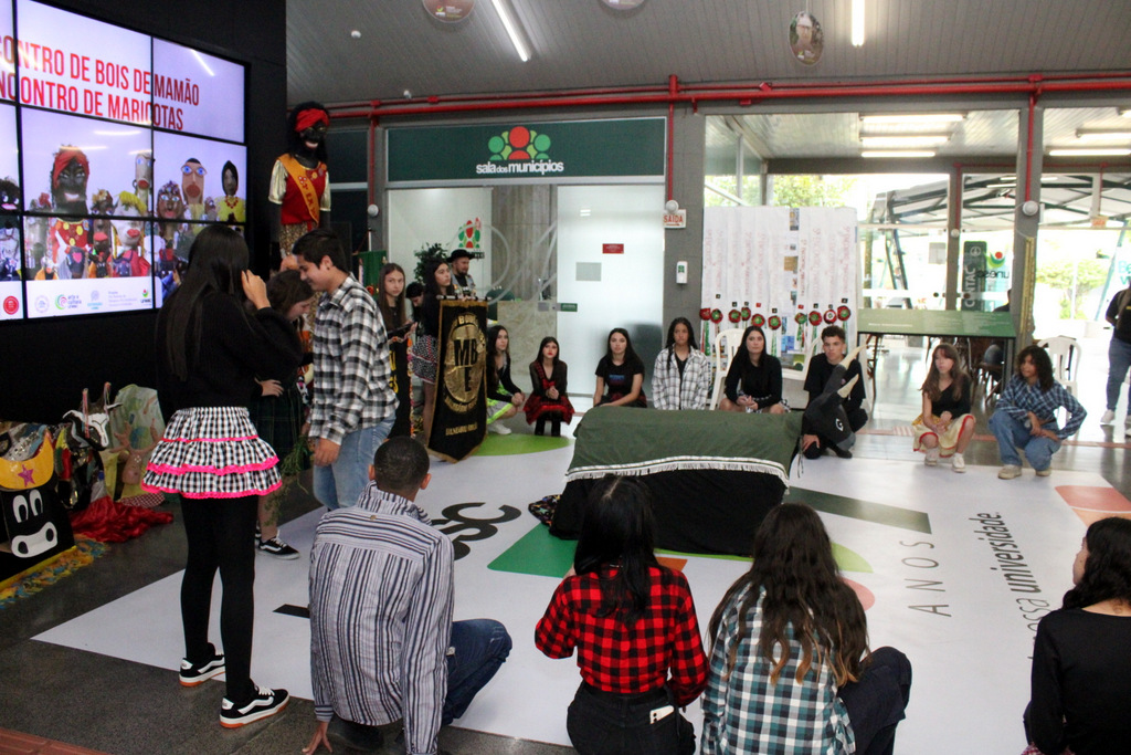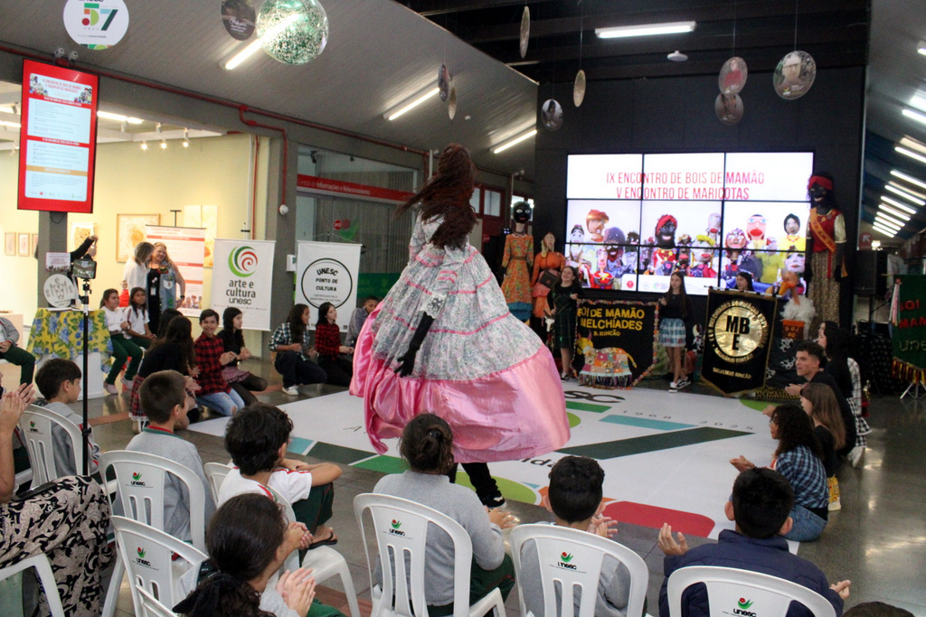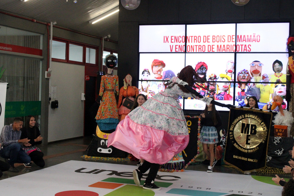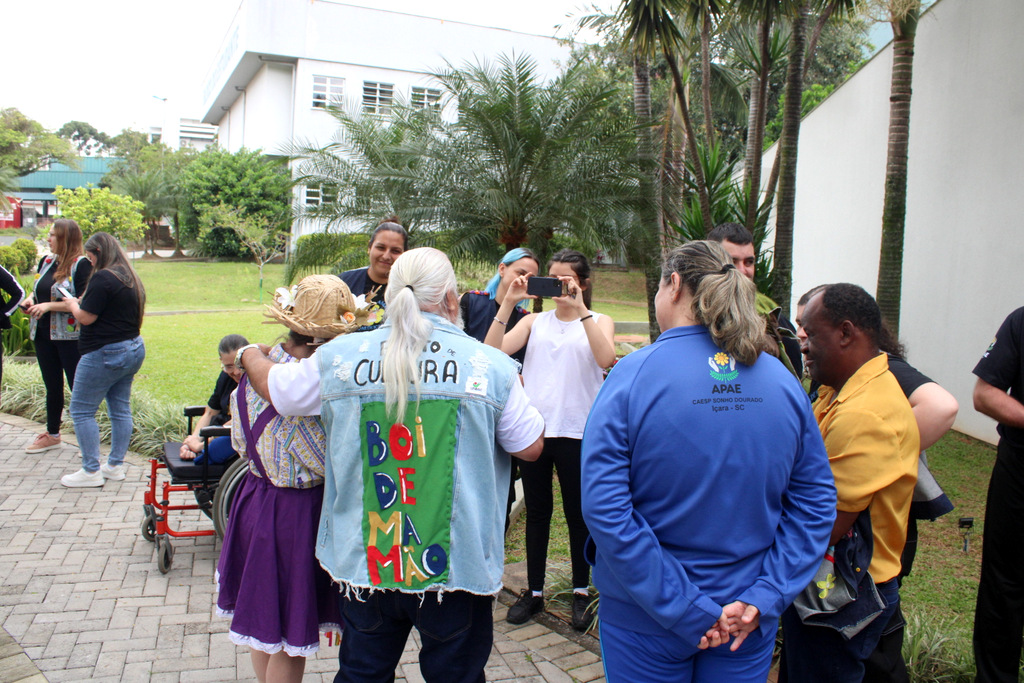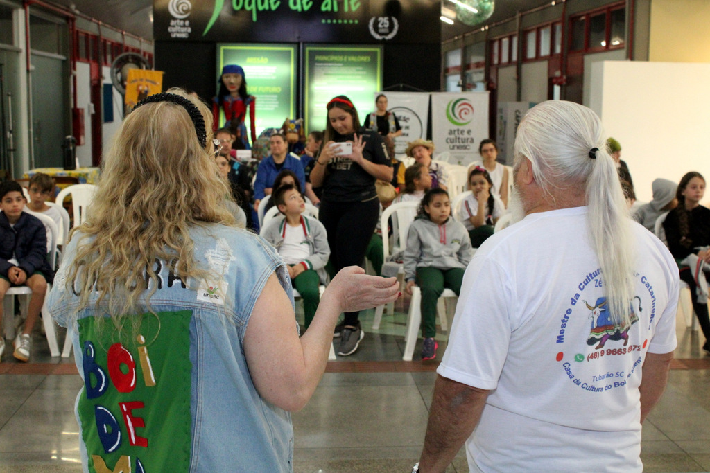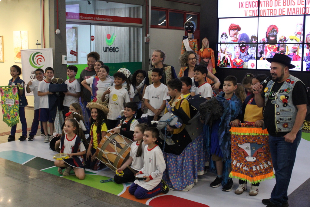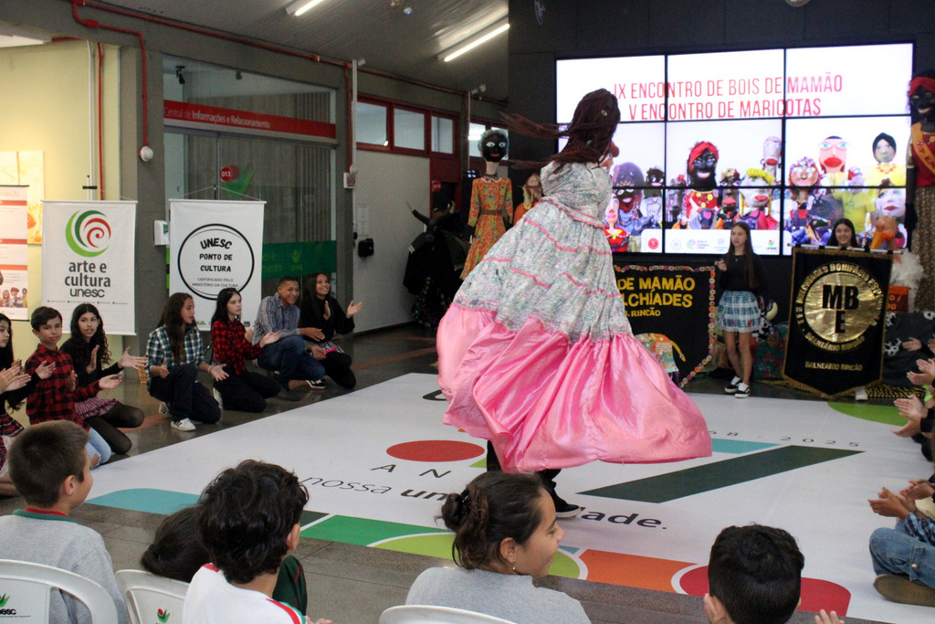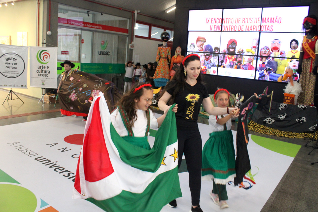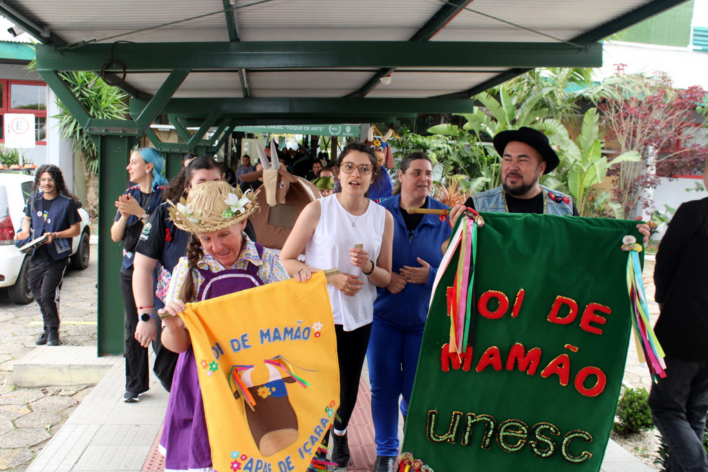 A coordenadora do Setor de Arte e Cultura, Amalhene Baesso Reddig, a Lenita, lembrou que a Unesc é um ponto de cultura do Ministério da Cultura, da Rede Cultura Viva. “Realizar o intercâmbio cultural entre os participantes da cultura popular catarinense – boi de mamão – tem como foco o fortalecimento dessa tradição. Hoje, é o Dia Internacional do Patrimônio Cultural Imaterial e celebramos coletivamente as tradições vivas que definem nessas histórias, memórias, saberes por meio da educação, da colaboração e da conscientização do valor dos que nos antecederam. A interação que provamos no campus Unesc reverbera na região e contribui para a cultura de paz e tolerância”, enfatizou ela.