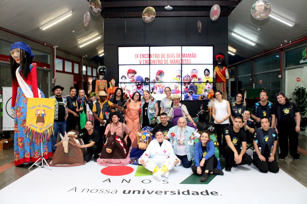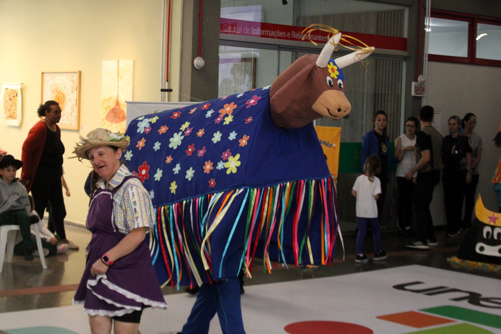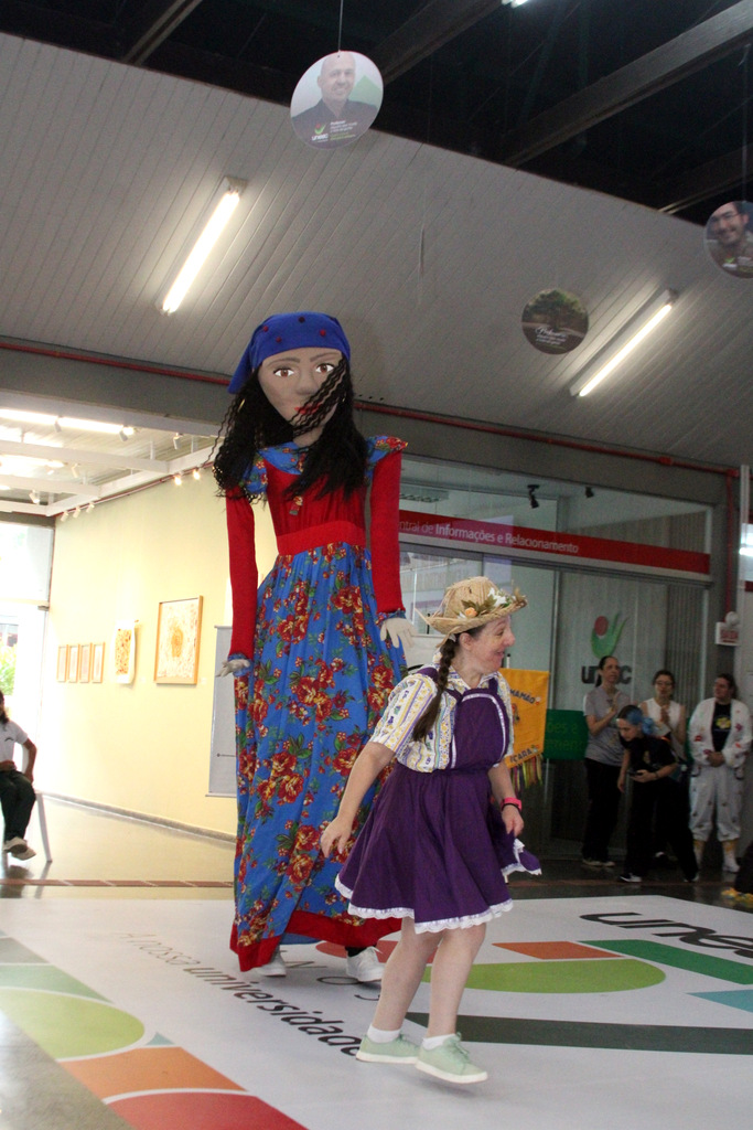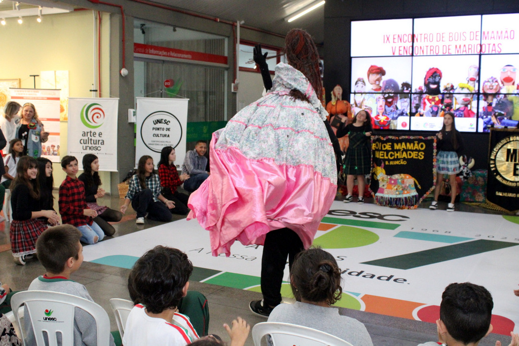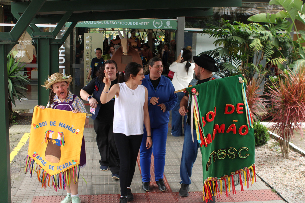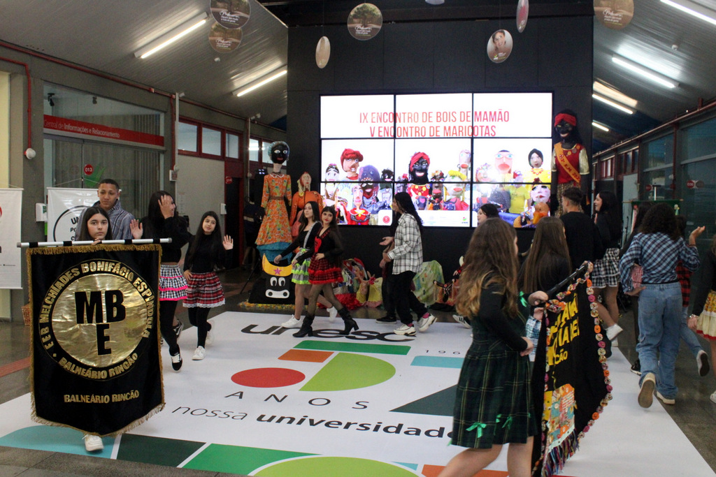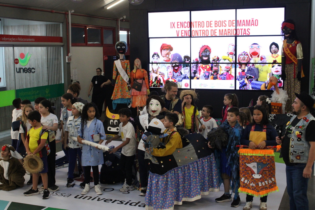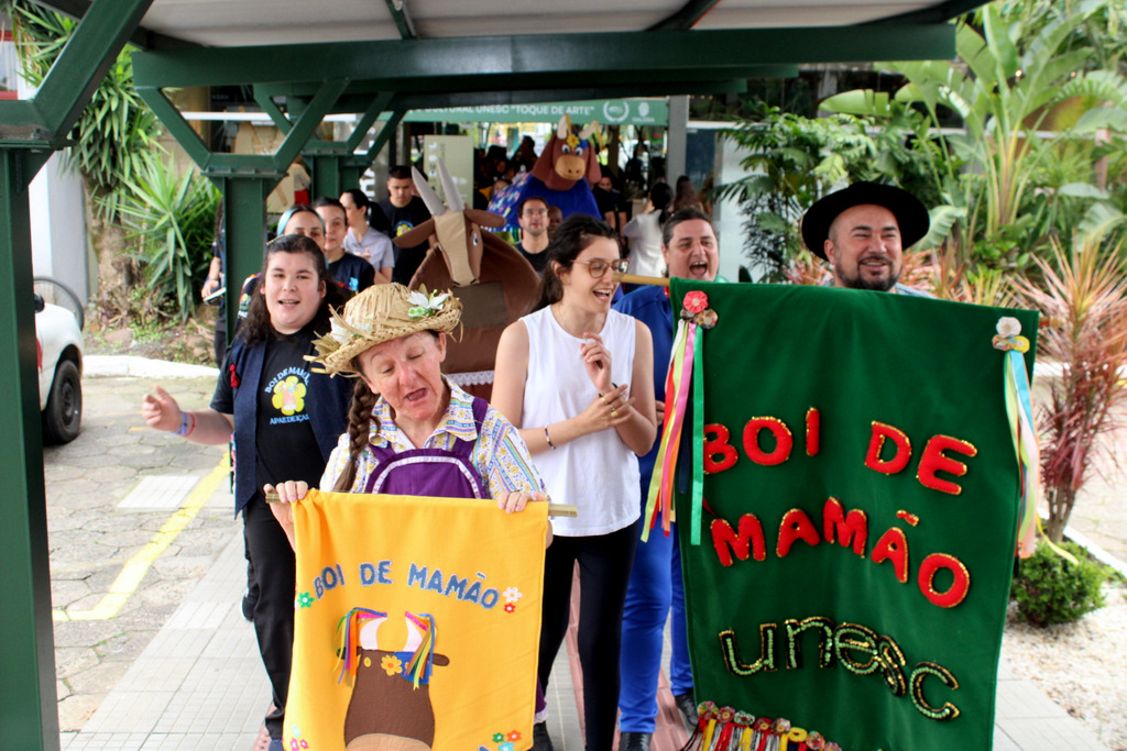 A coordenadora do Setor de Arte e Cultura, Amalhene Baesso Reddig, a Lenita, lembrou que a Unesc é um ponto de cultura do Ministério da Cultura, da Rede Cultura Viva. “Realizar o intercâmbio cultural entre os participantes da cultura popular catarinense – boi de mamão – tem como foco o fortalecimento dessa tradição. Hoje, é o Dia Internacional do Patrimônio Cultural Imaterial e celebramos coletivamente as tradições vivas que definem nessas histórias, memórias, saberes por meio da educação, da colaboração e da conscientização do valor dos que nos antecederam. A interação que provamos no campus Unesc reverbera na região e contribui para a cultura de paz e tolerância”, enfatizou ela.
