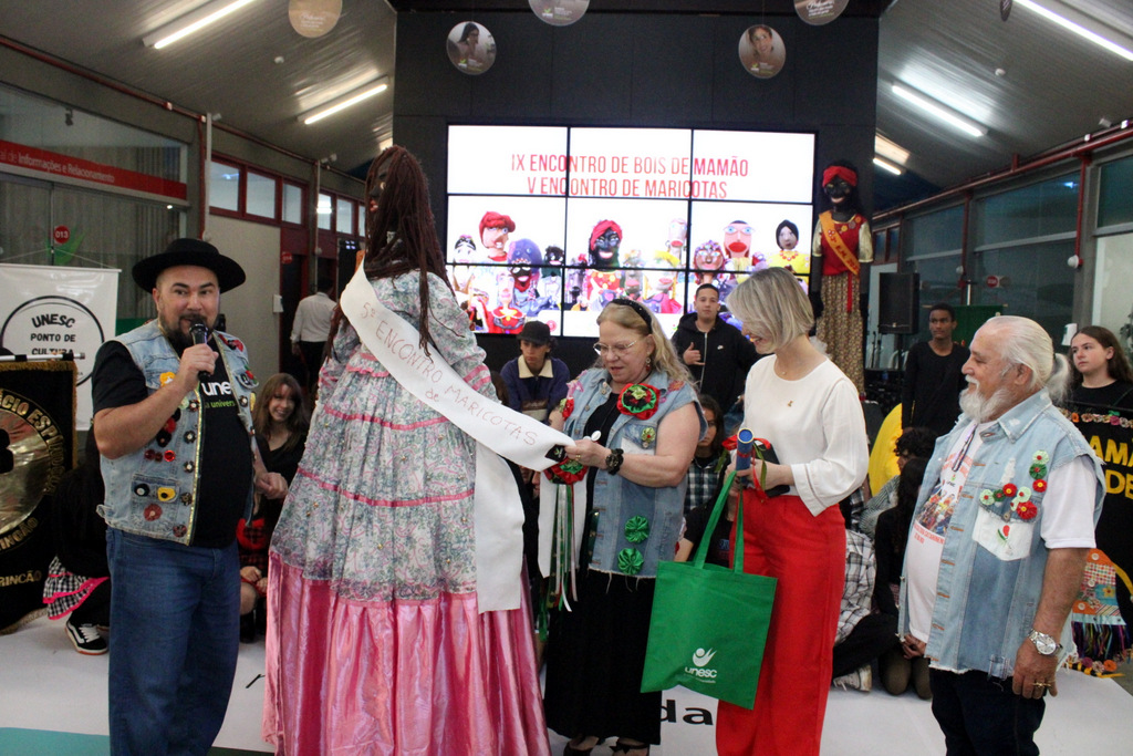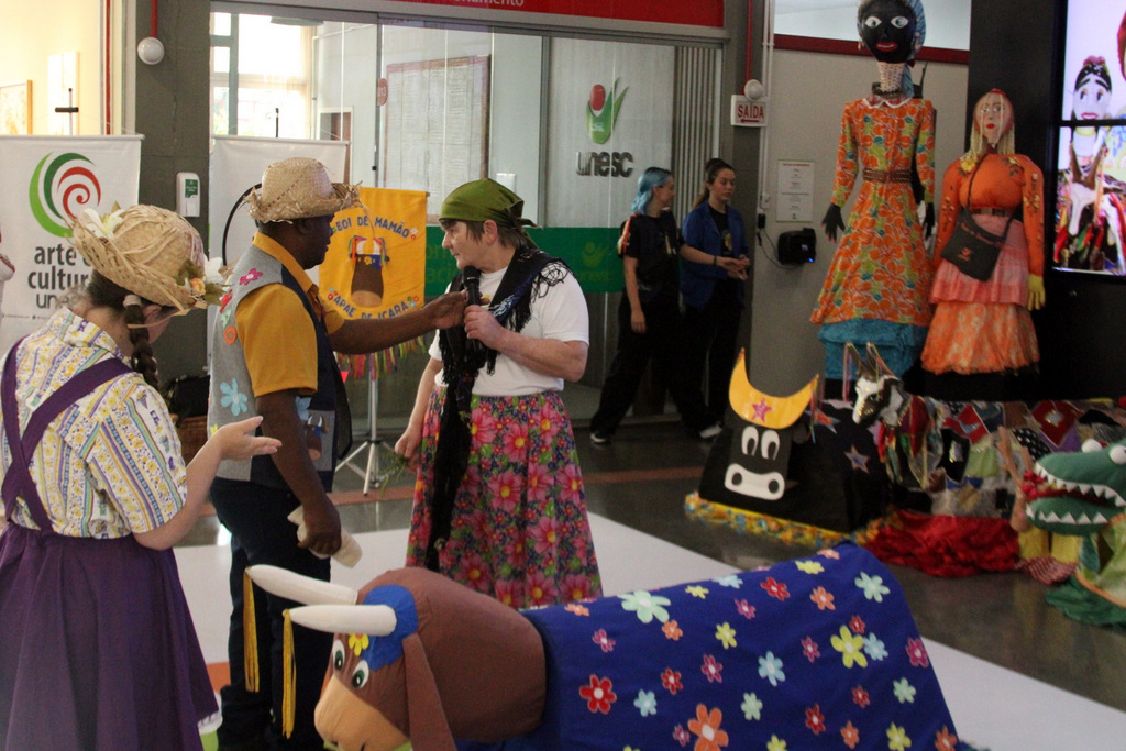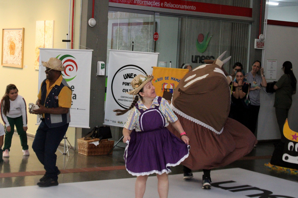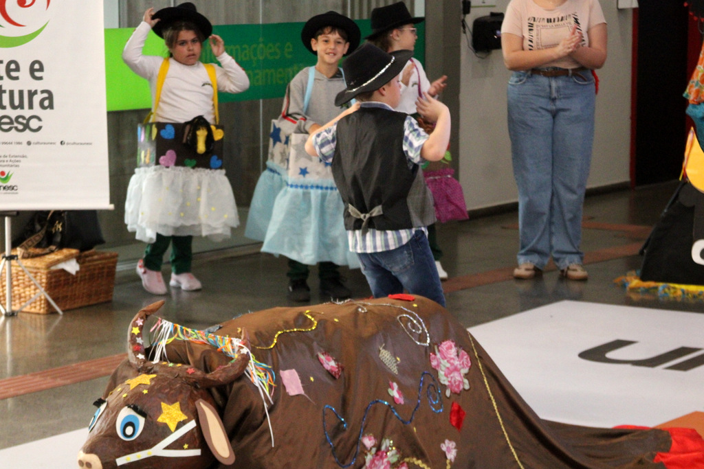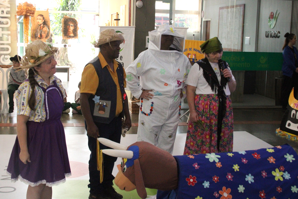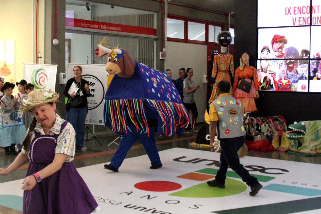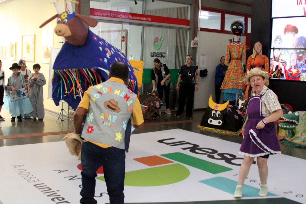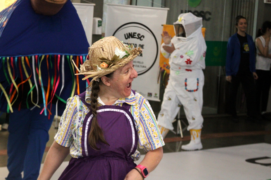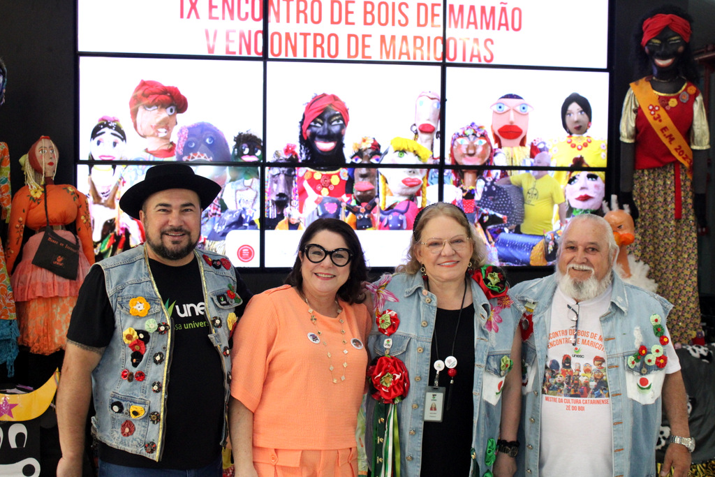 A coordenadora do Setor de Arte e Cultura, Amalhene Baesso Reddig, a Lenita, lembrou que a Unesc é um ponto de cultura do Ministério da Cultura, da Rede Cultura Viva. “Realizar o intercâmbio cultural entre os participantes da cultura popular catarinense – boi de mamão – tem como foco o fortalecimento dessa tradição. Hoje, é o Dia Internacional do Patrimônio Cultural Imaterial e celebramos coletivamente as tradições vivas que definem nessas histórias, memórias, saberes por meio da educação, da colaboração e da conscientização do valor dos que nos antecederam. A interação que provamos no campus Unesc reverbera na região e contribui para a cultura de paz e tolerância”, enfatizou ela.