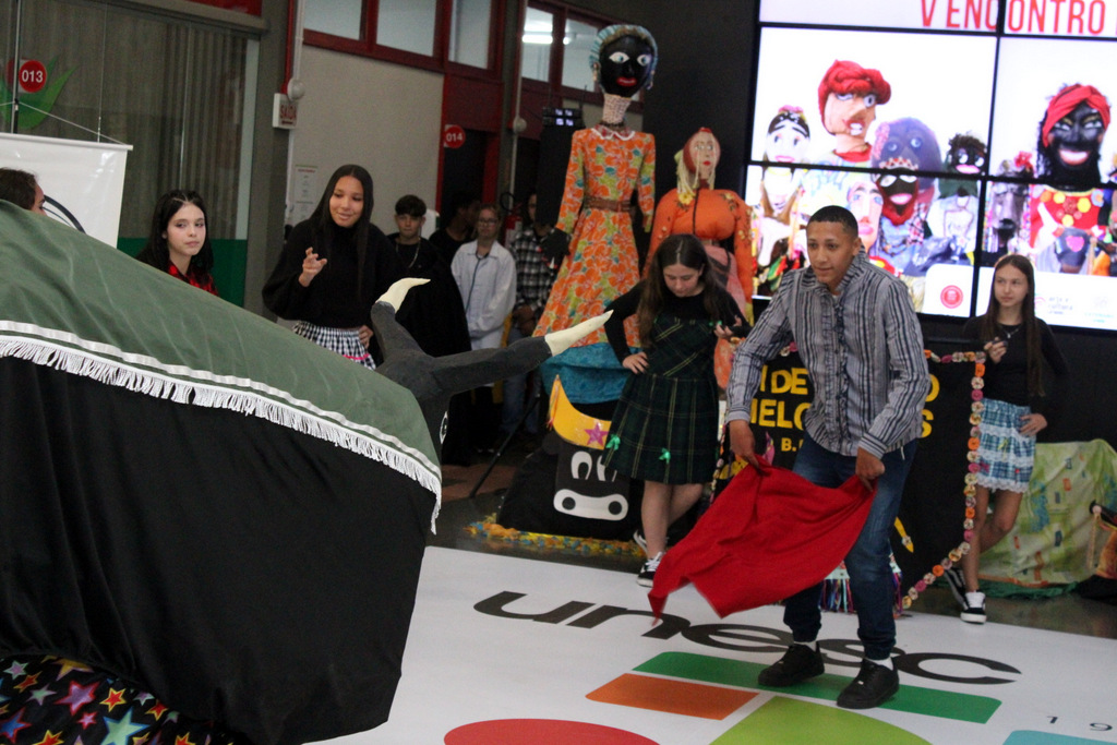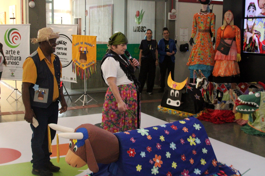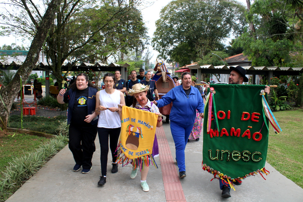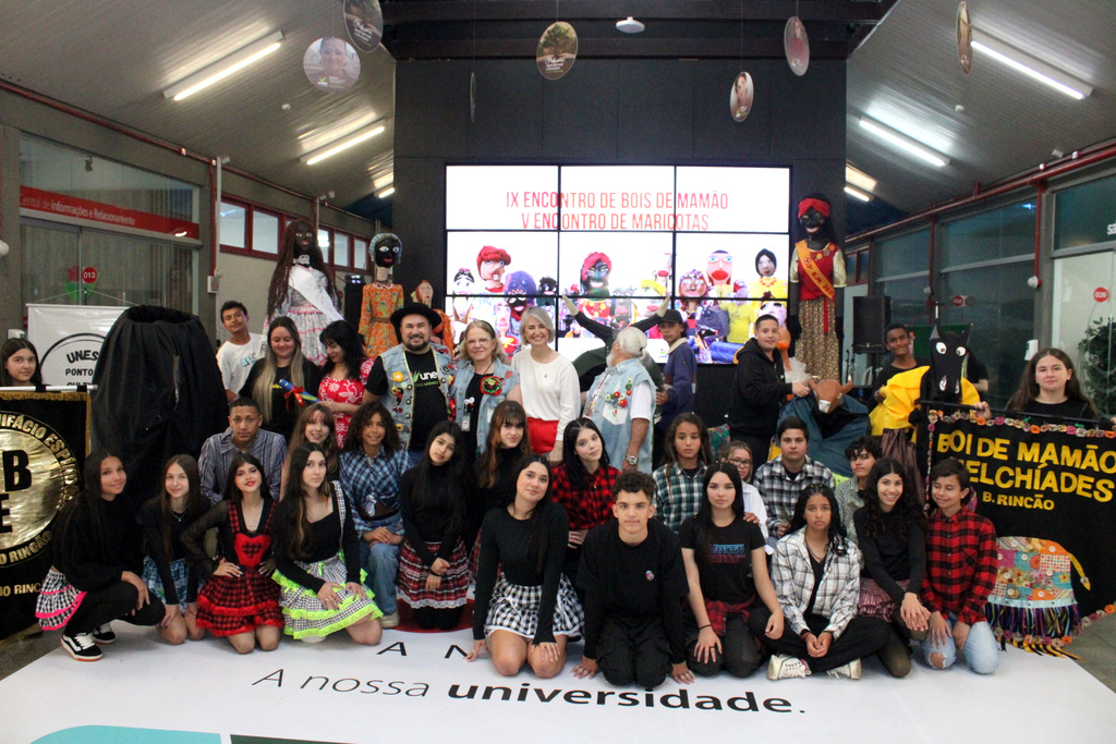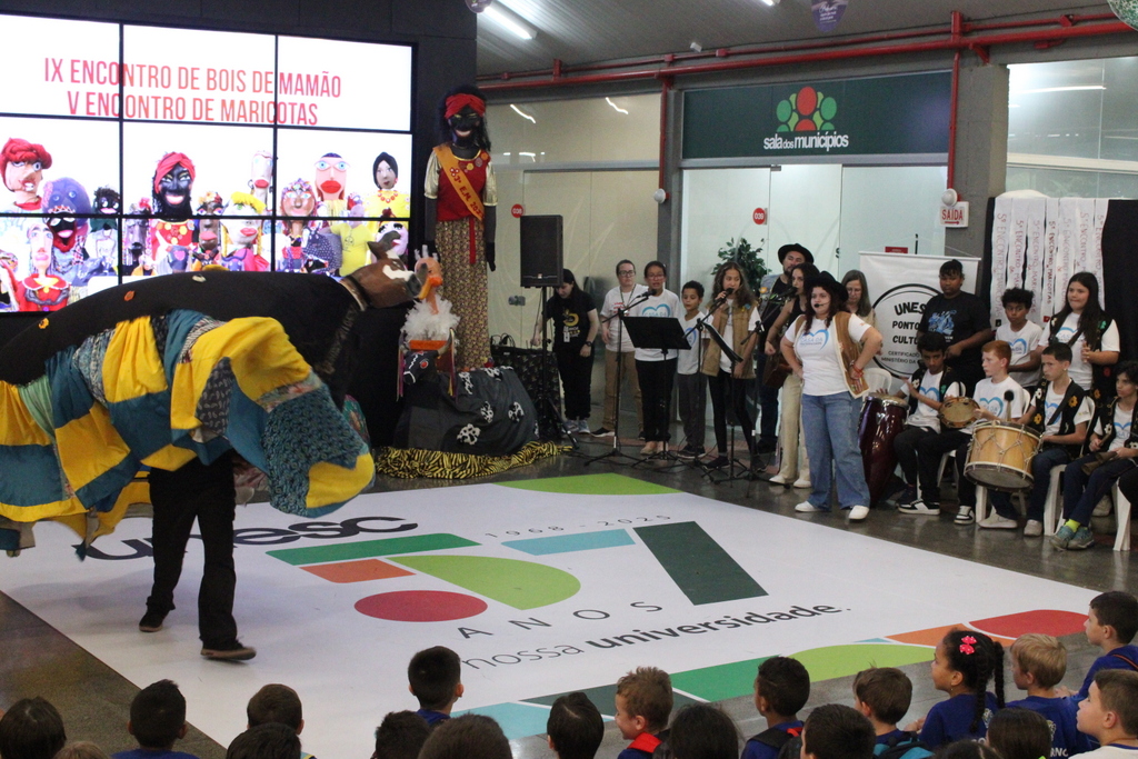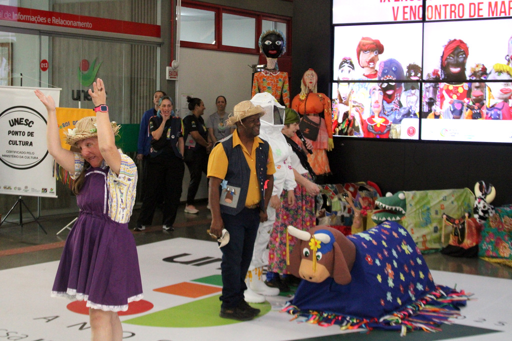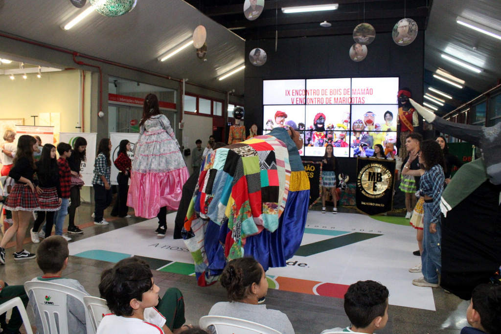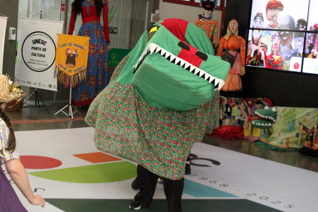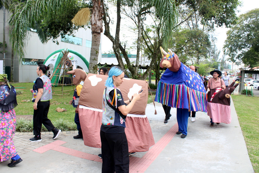 A coordenadora do Setor de Arte e Cultura, Amalhene Baesso Reddig, a Lenita, lembrou que a Unesc é um ponto de cultura do Ministério da Cultura, da Rede Cultura Viva. “Realizar o intercâmbio cultural entre os participantes da cultura popular catarinense – boi de mamão – tem como foco o fortalecimento dessa tradição. Hoje, é o Dia Internacional do Patrimônio Cultural Imaterial e celebramos coletivamente as tradições vivas que definem nessas histórias, memórias, saberes por meio da educação, da colaboração e da conscientização do valor dos que nos antecederam. A interação que provamos no campus Unesc reverbera na região e contribui para a cultura de paz e tolerância”, enfatizou ela.