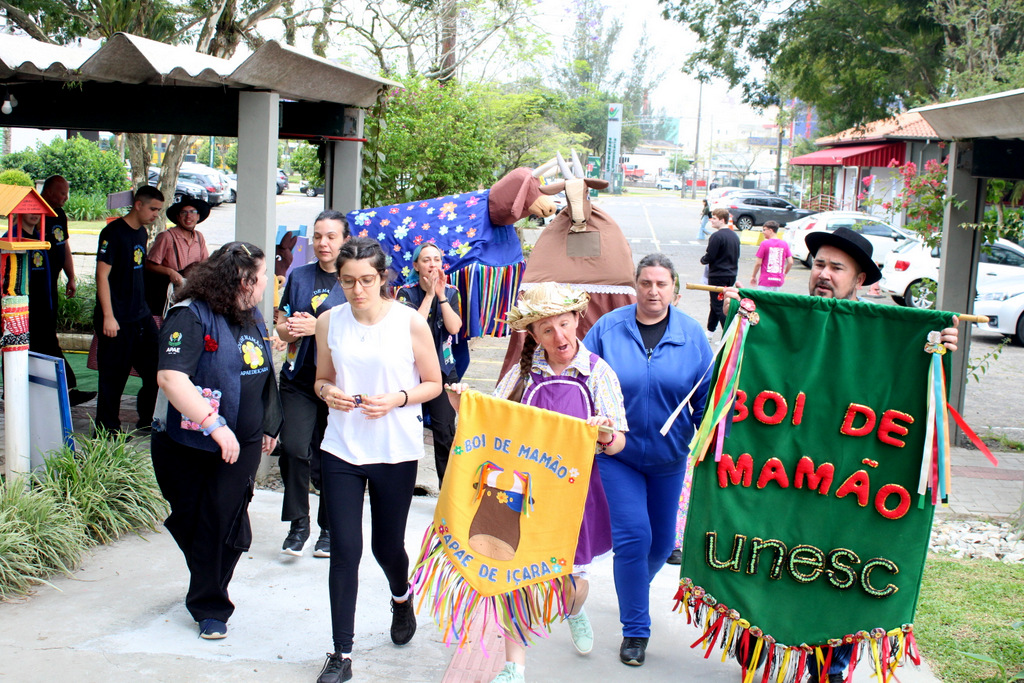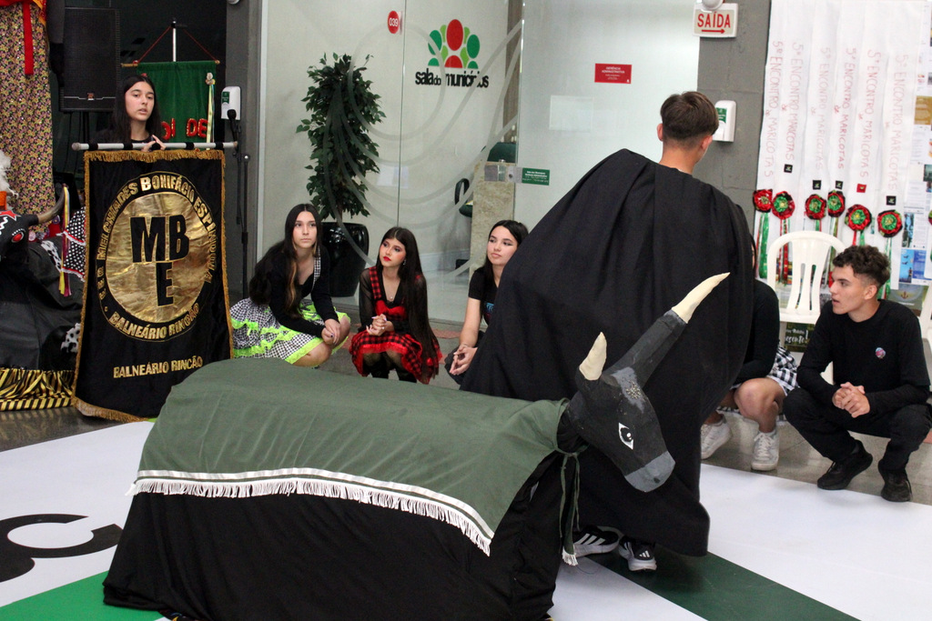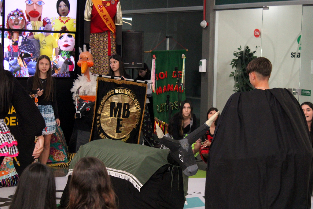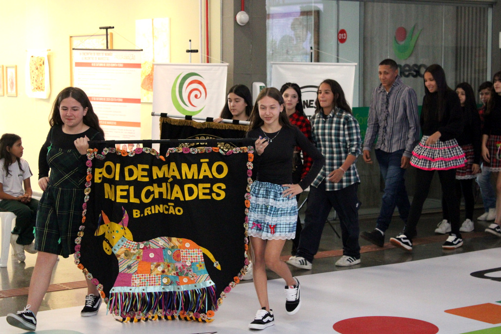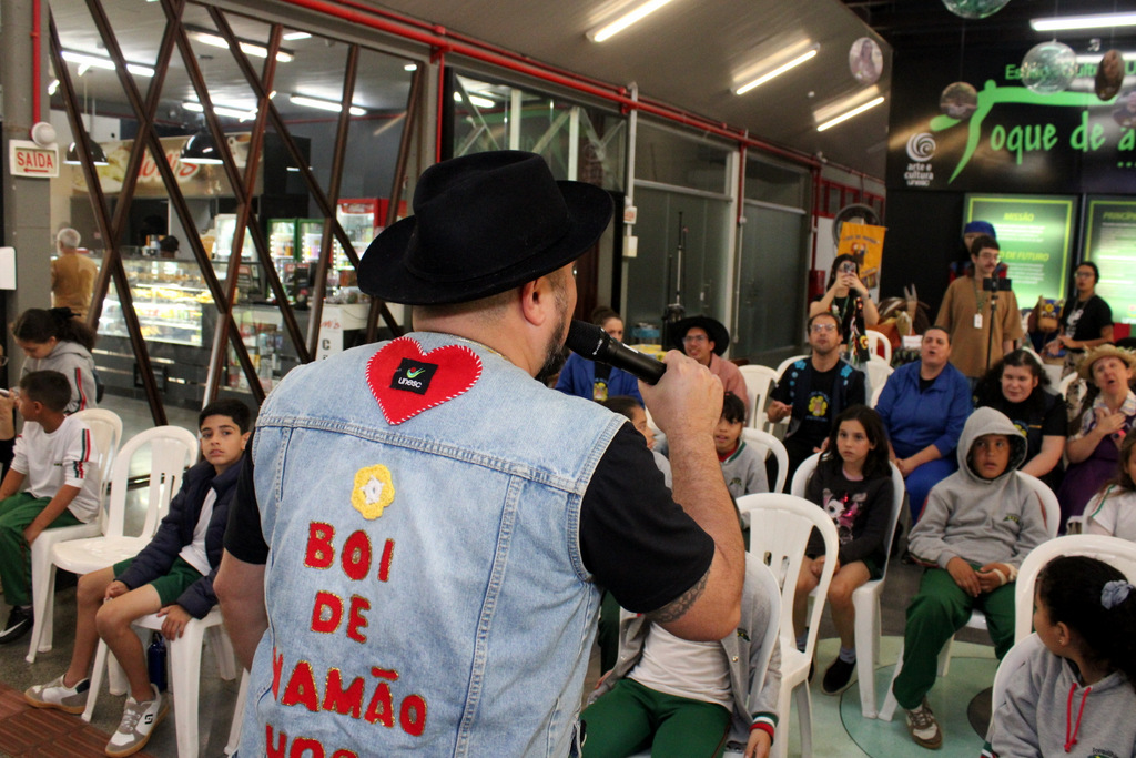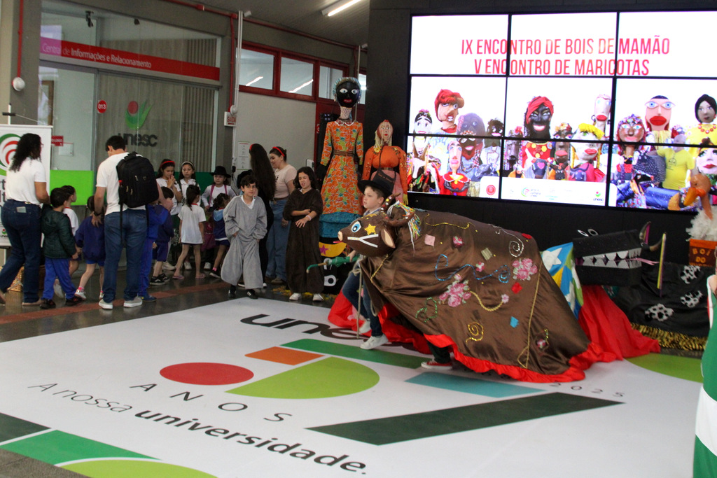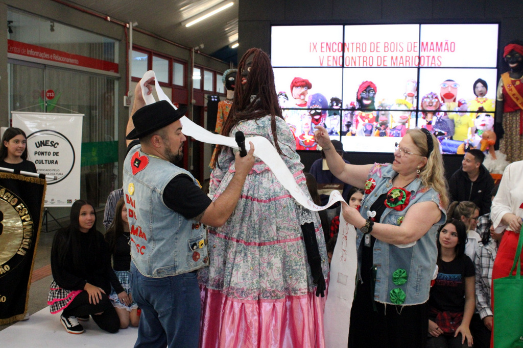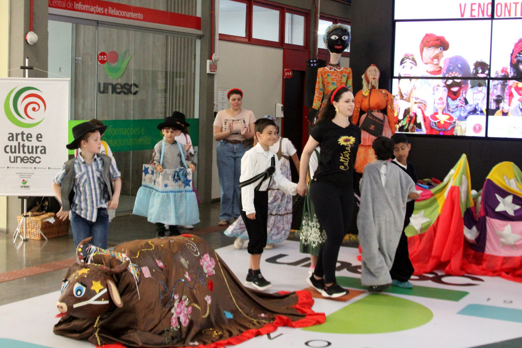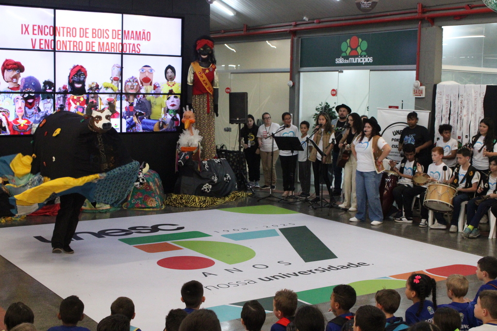 A coordenadora do Setor de Arte e Cultura, Amalhene Baesso Reddig, a Lenita, lembrou que a Unesc é um ponto de cultura do Ministério da Cultura, da Rede Cultura Viva. “Realizar o intercâmbio cultural entre os participantes da cultura popular catarinense – boi de mamão – tem como foco o fortalecimento dessa tradição. Hoje, é o Dia Internacional do Patrimônio Cultural Imaterial e celebramos coletivamente as tradições vivas que definem nessas histórias, memórias, saberes por meio da educação, da colaboração e da conscientização do valor dos que nos antecederam. A interação que provamos no campus Unesc reverbera na região e contribui para a cultura de paz e tolerância”, enfatizou ela.