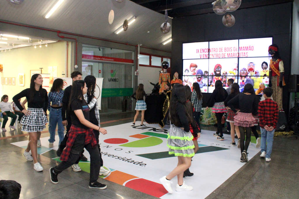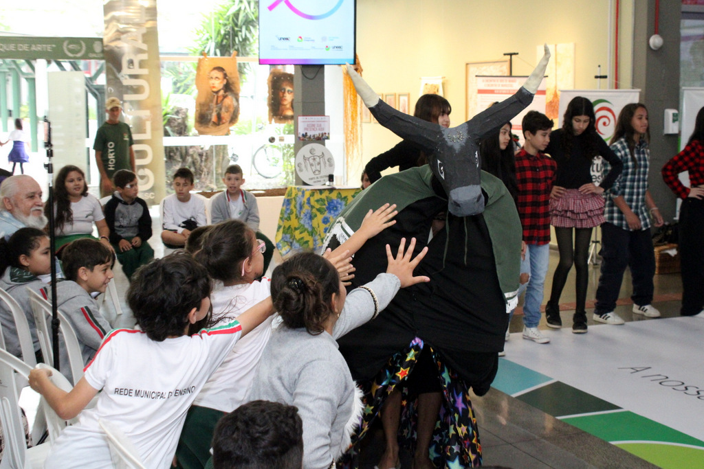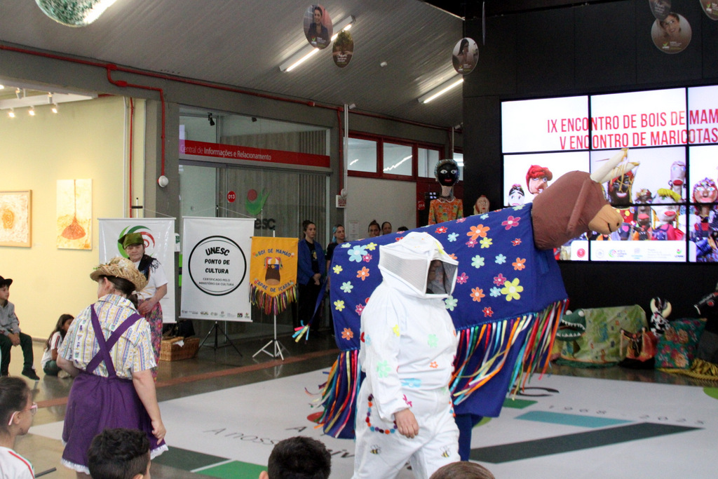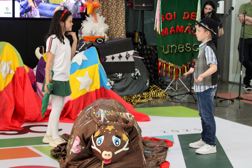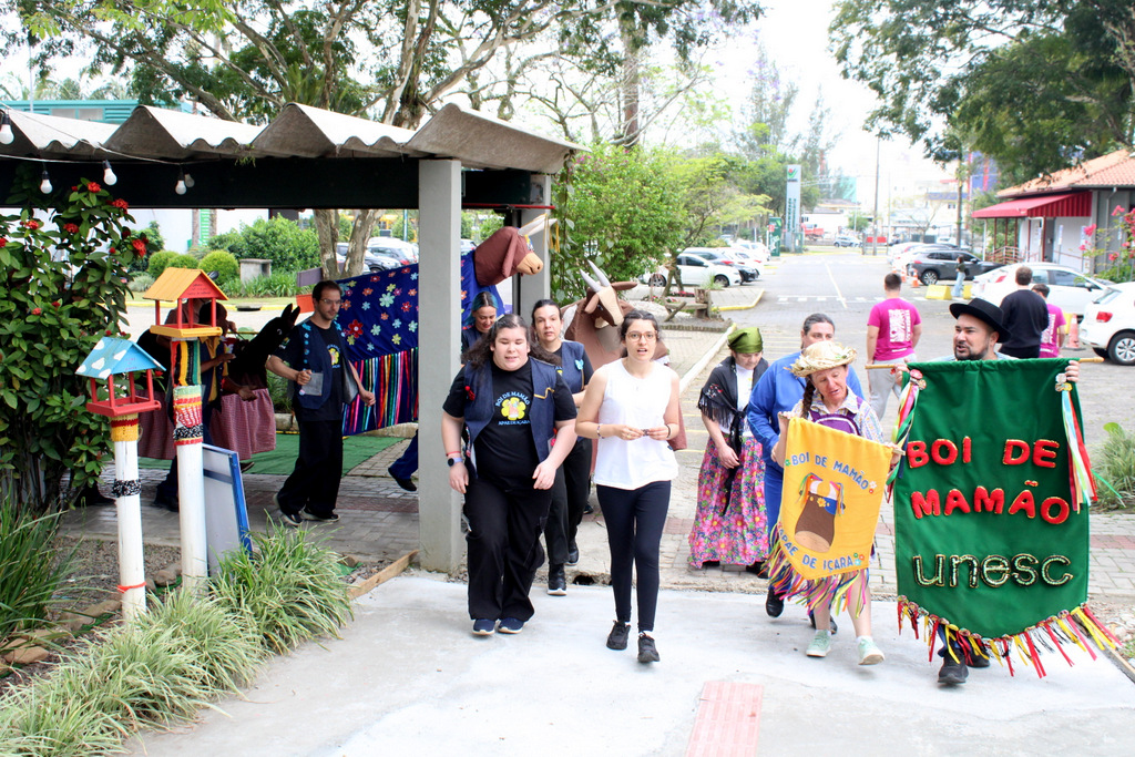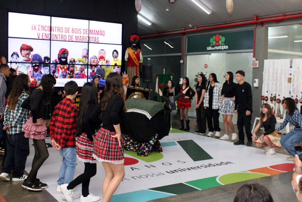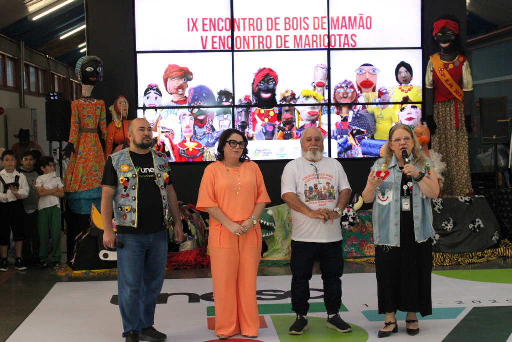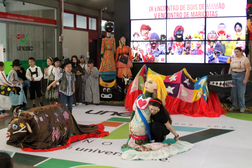 A coordenadora do Setor de Arte e Cultura, Amalhene Baesso Reddig, a Lenita, lembrou que a Unesc é um ponto de cultura do Ministério da Cultura, da Rede Cultura Viva. “Realizar o intercâmbio cultural entre os participantes da cultura popular catarinense – boi de mamão – tem como foco o fortalecimento dessa tradição. Hoje, é o Dia Internacional do Patrimônio Cultural Imaterial e celebramos coletivamente as tradições vivas que definem nessas histórias, memórias, saberes por meio da educação, da colaboração e da conscientização do valor dos que nos antecederam. A interação que provamos no campus Unesc reverbera na região e contribui para a cultura de paz e tolerância”, enfatizou ela.