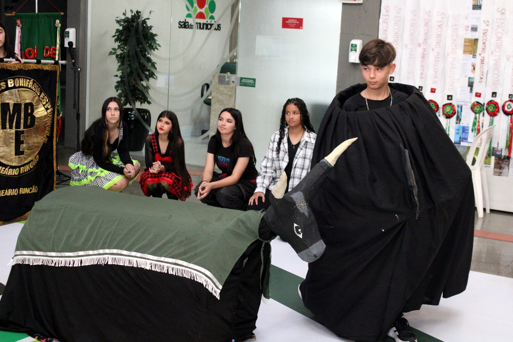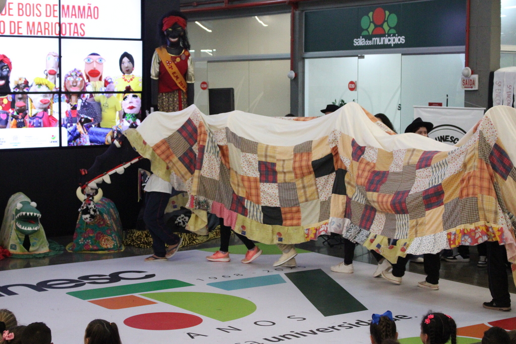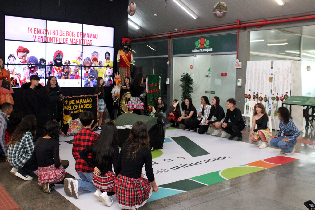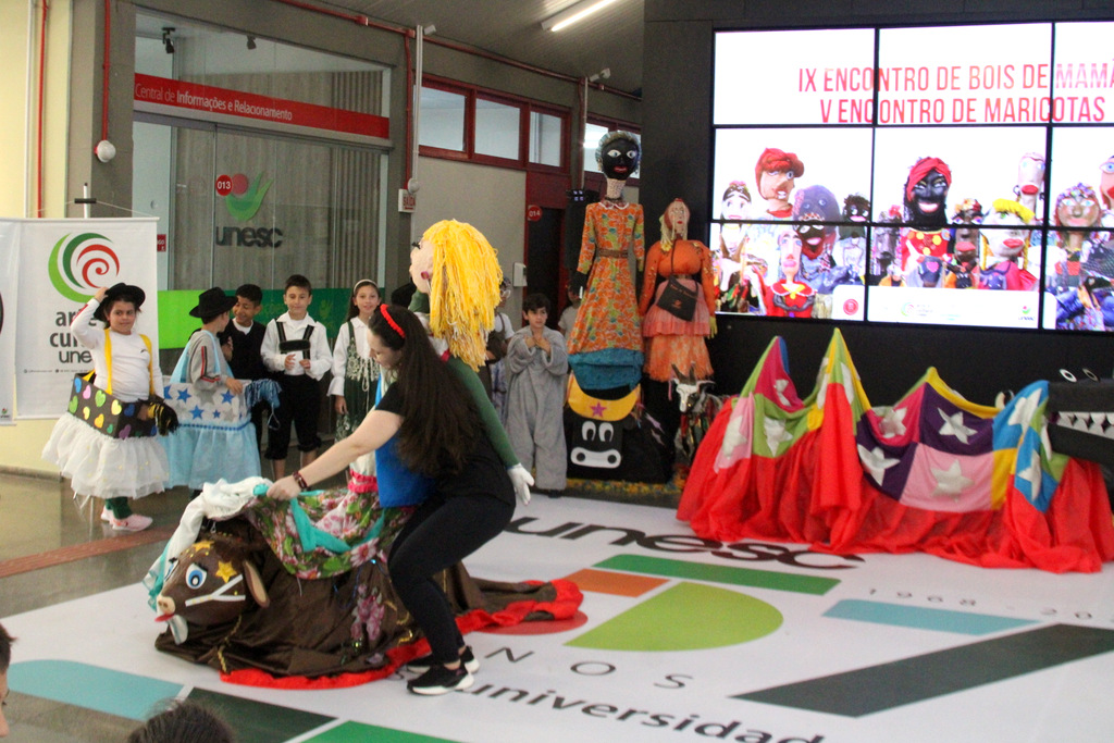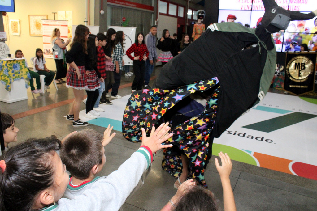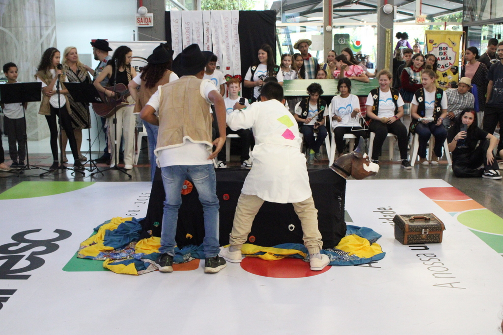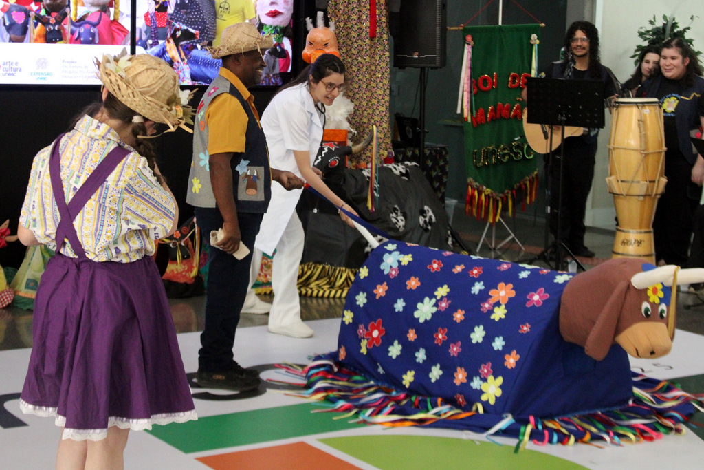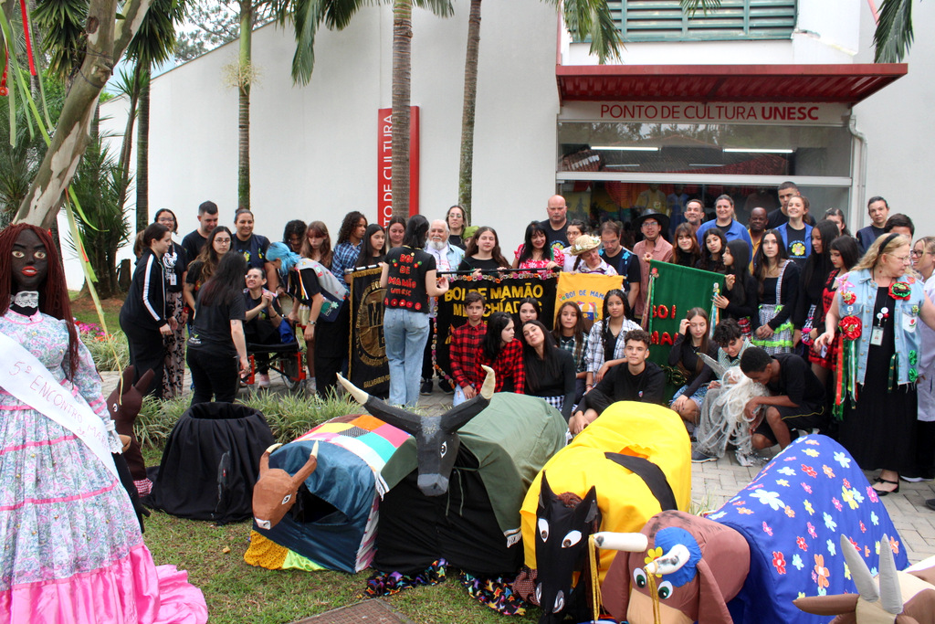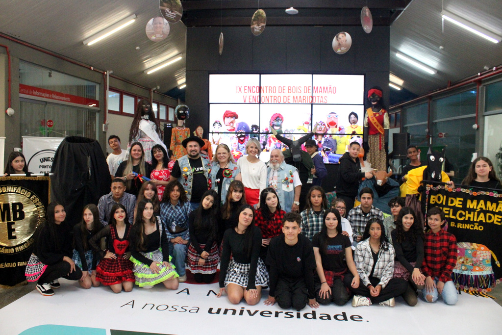 A coordenadora do Setor de Arte e Cultura, Amalhene Baesso Reddig, a Lenita, lembrou que a Unesc é um ponto de cultura do Ministério da Cultura, da Rede Cultura Viva. “Realizar o intercâmbio cultural entre os participantes da cultura popular catarinense – boi de mamão – tem como foco o fortalecimento dessa tradição. Hoje, é o Dia Internacional do Patrimônio Cultural Imaterial e celebramos coletivamente as tradições vivas que definem nessas histórias, memórias, saberes por meio da educação, da colaboração e da conscientização do valor dos que nos antecederam. A interação que provamos no campus Unesc reverbera na região e contribui para a cultura de paz e tolerância”, enfatizou ela.