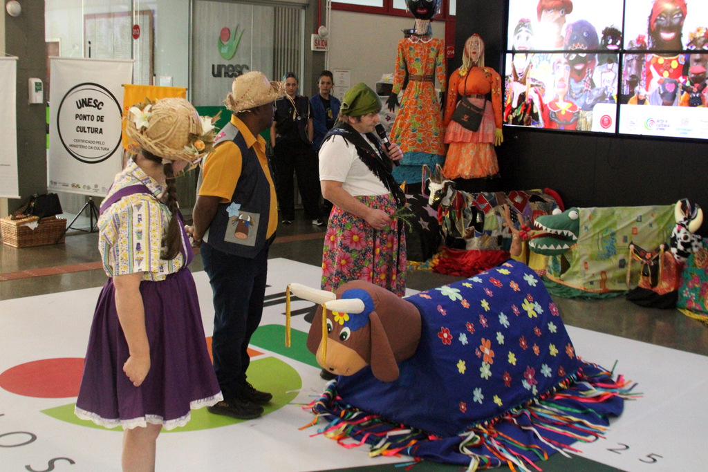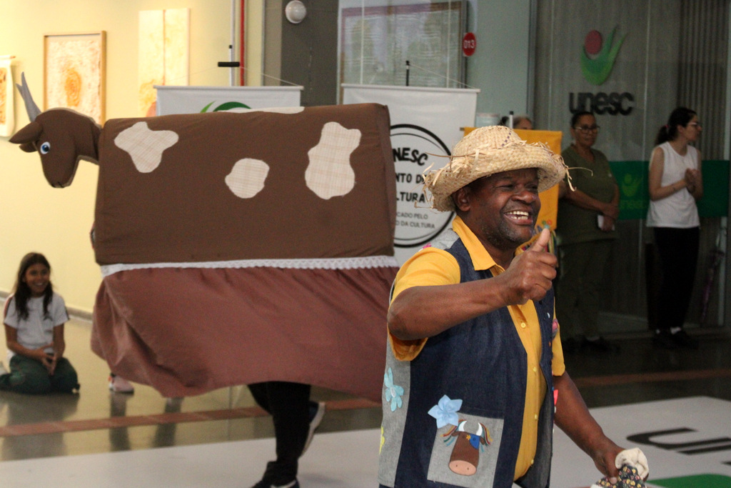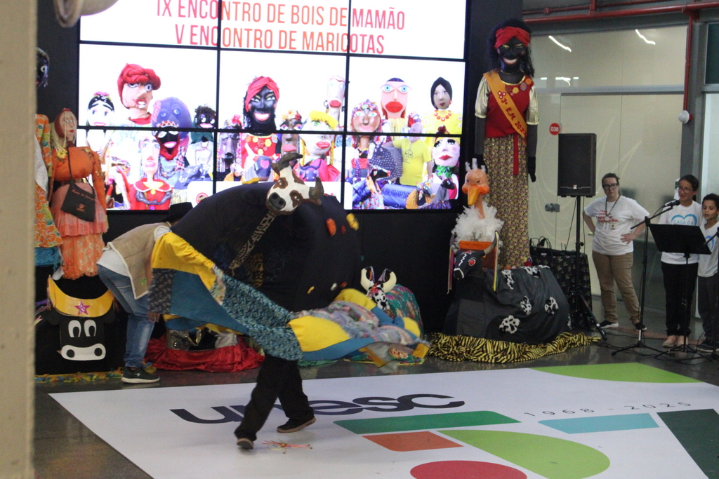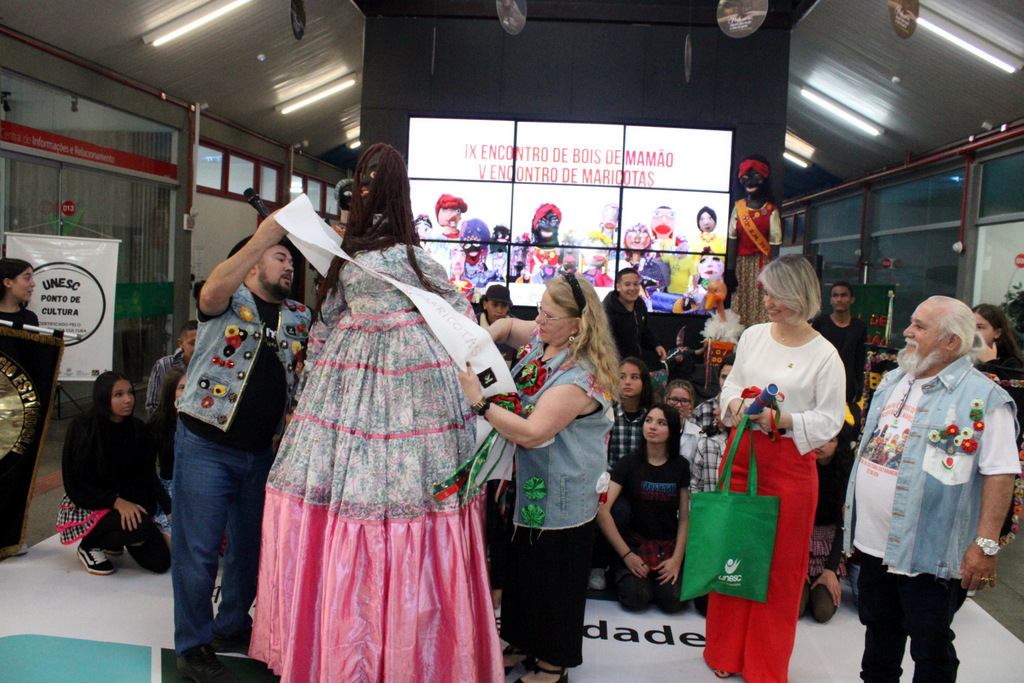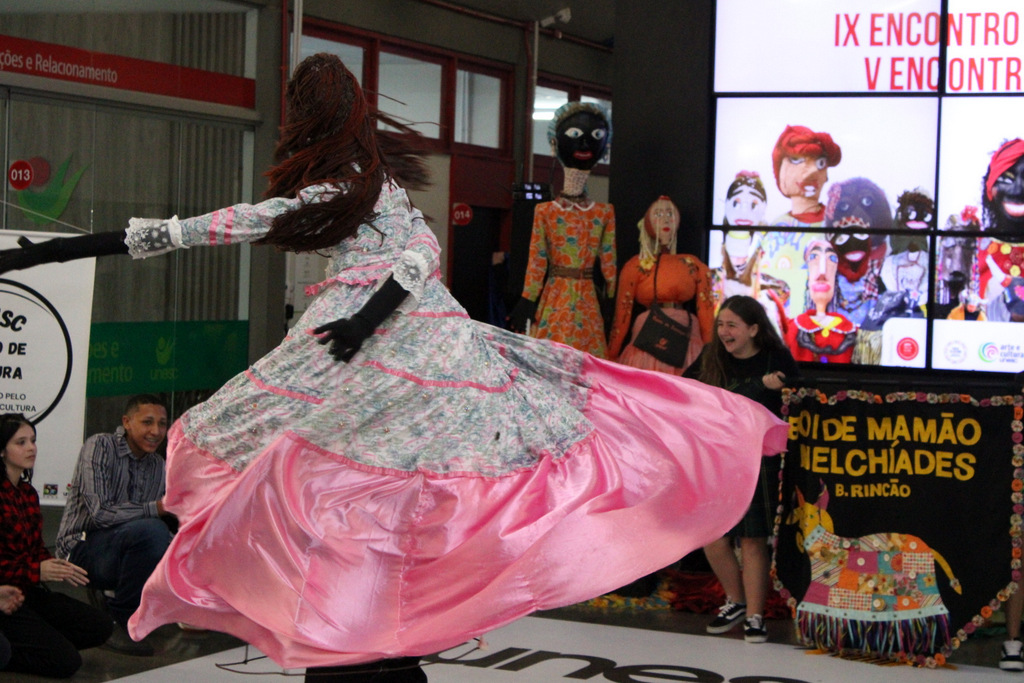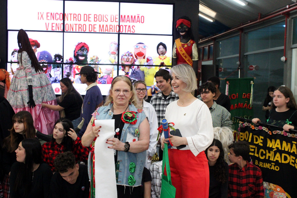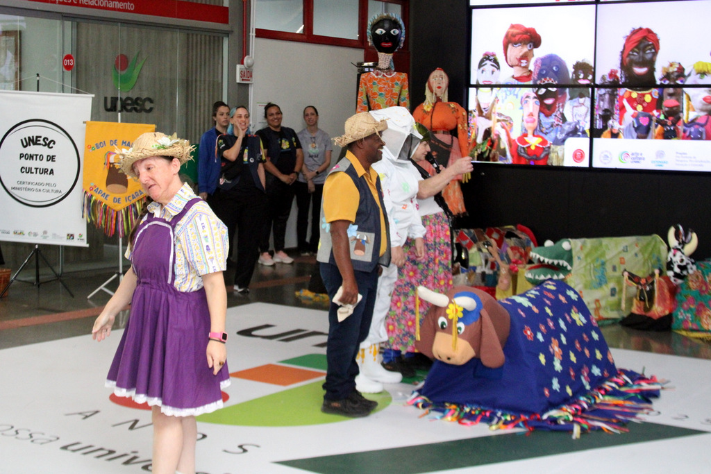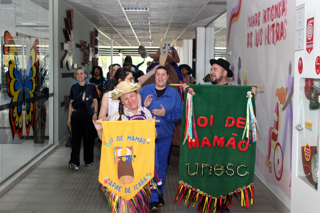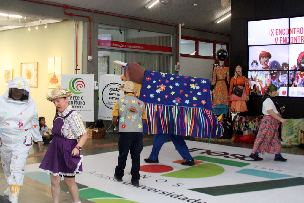 A coordenadora do Setor de Arte e Cultura, Amalhene Baesso Reddig, a Lenita, lembrou que a Unesc é um ponto de cultura do Ministério da Cultura, da Rede Cultura Viva. “Realizar o intercâmbio cultural entre os participantes da cultura popular catarinense – boi de mamão – tem como foco o fortalecimento dessa tradição. Hoje, é o Dia Internacional do Patrimônio Cultural Imaterial e celebramos coletivamente as tradições vivas que definem nessas histórias, memórias, saberes por meio da educação, da colaboração e da conscientização do valor dos que nos antecederam. A interação que provamos no campus Unesc reverbera na região e contribui para a cultura de paz e tolerância”, enfatizou ela.