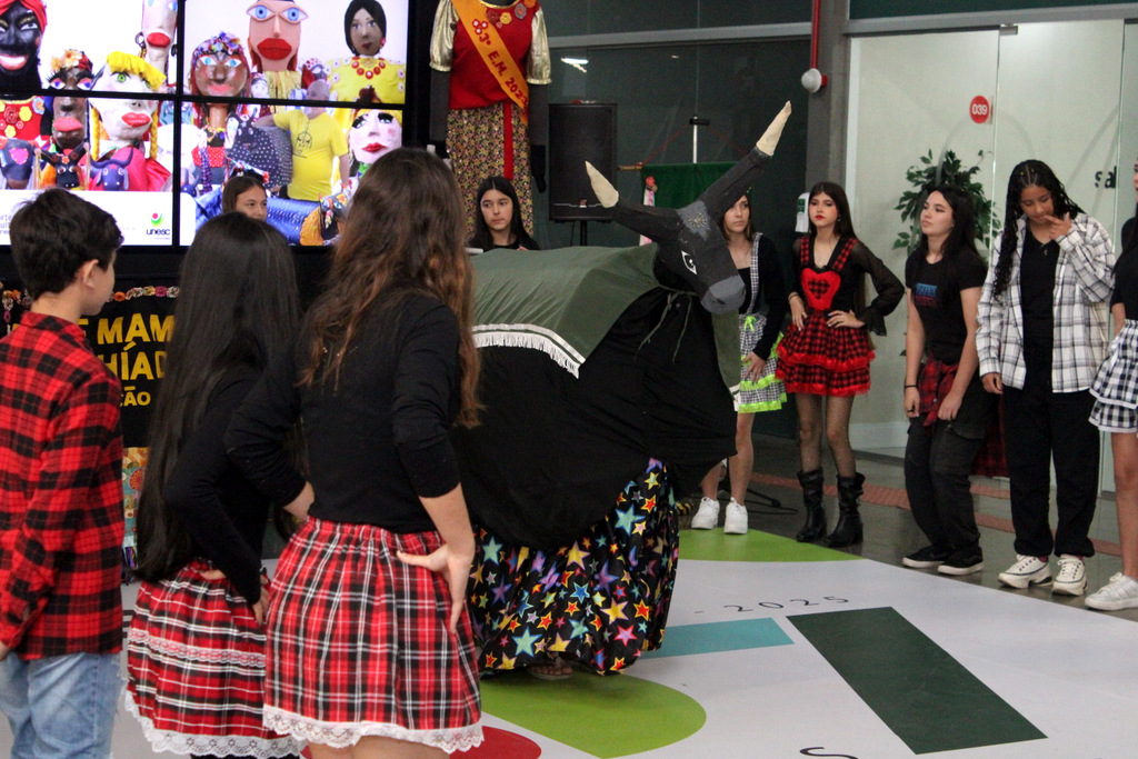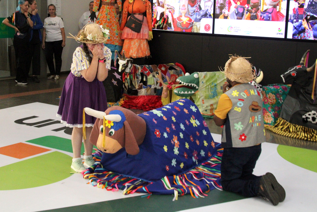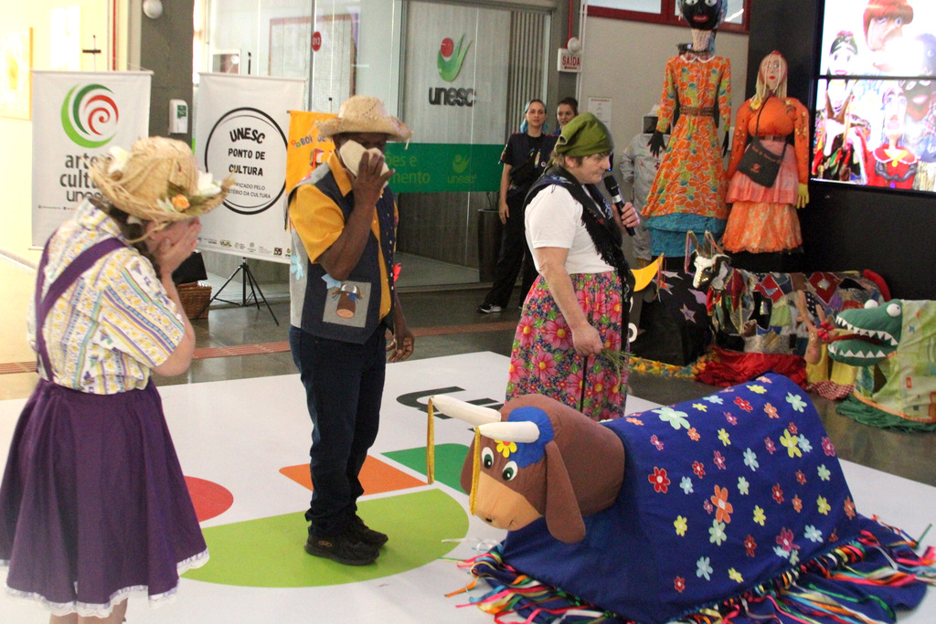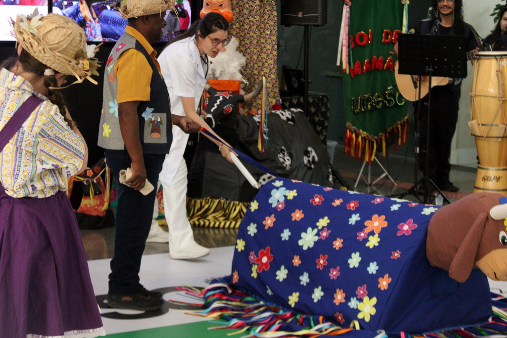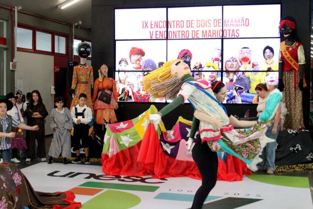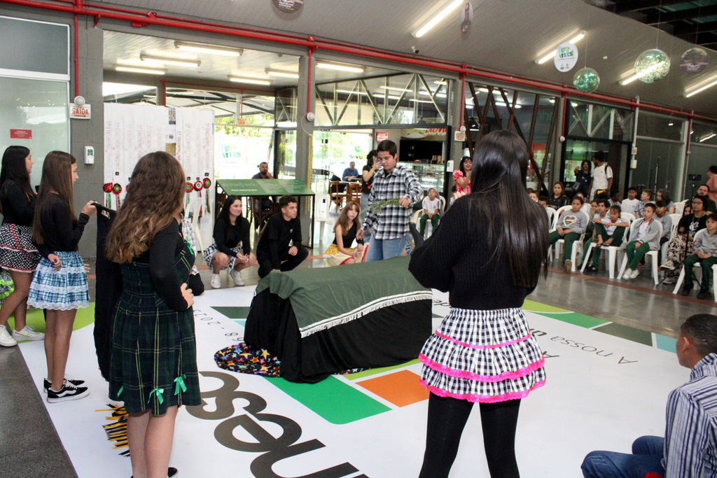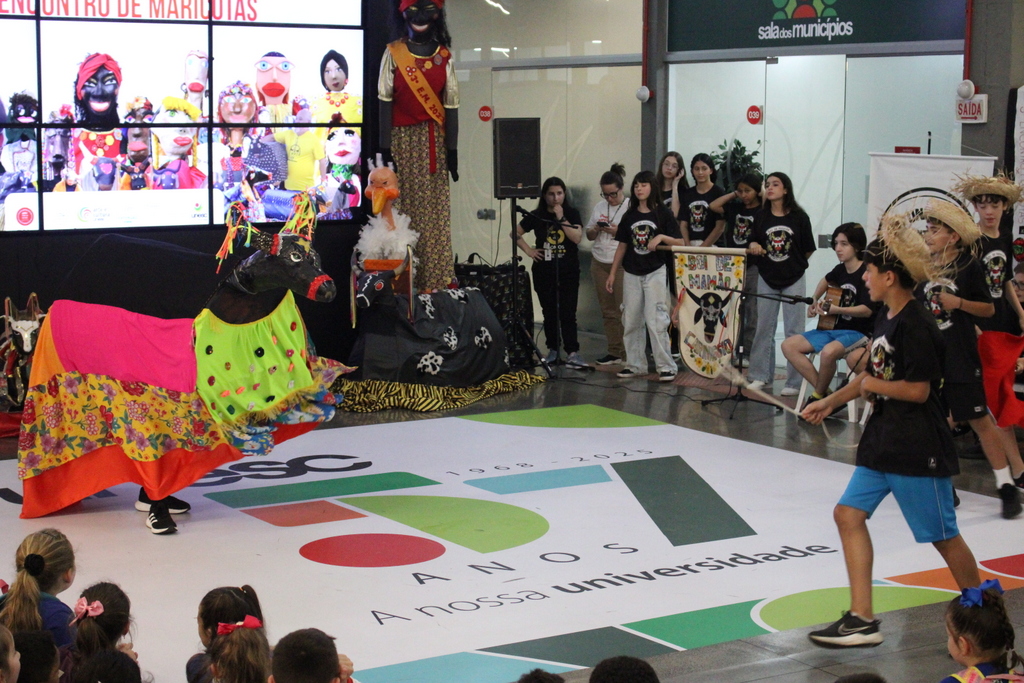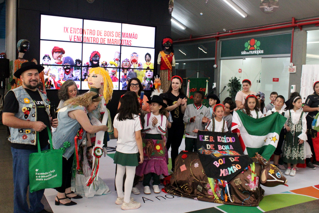 A coordenadora do Setor de Arte e Cultura, Amalhene Baesso Reddig, a Lenita, lembrou que a Unesc é um ponto de cultura do Ministério da Cultura, da Rede Cultura Viva. “Realizar o intercâmbio cultural entre os participantes da cultura popular catarinense – boi de mamão – tem como foco o fortalecimento dessa tradição. Hoje, é o Dia Internacional do Patrimônio Cultural Imaterial e celebramos coletivamente as tradições vivas que definem nessas histórias, memórias, saberes por meio da educação, da colaboração e da conscientização do valor dos que nos antecederam. A interação que provamos no campus Unesc reverbera na região e contribui para a cultura de paz e tolerância”, enfatizou ela.
