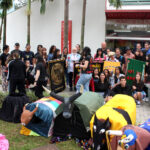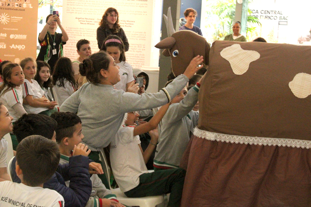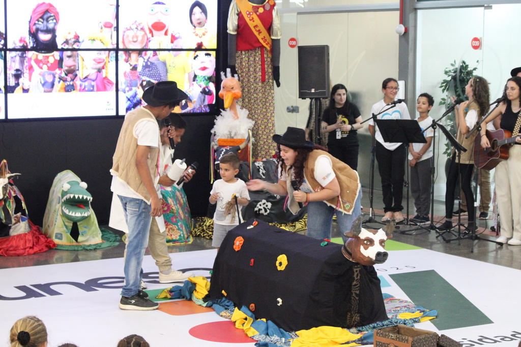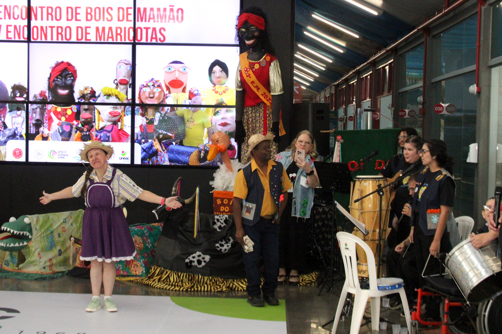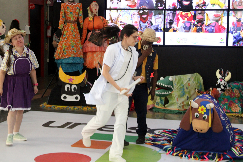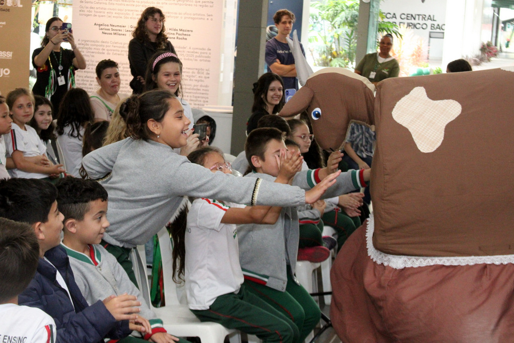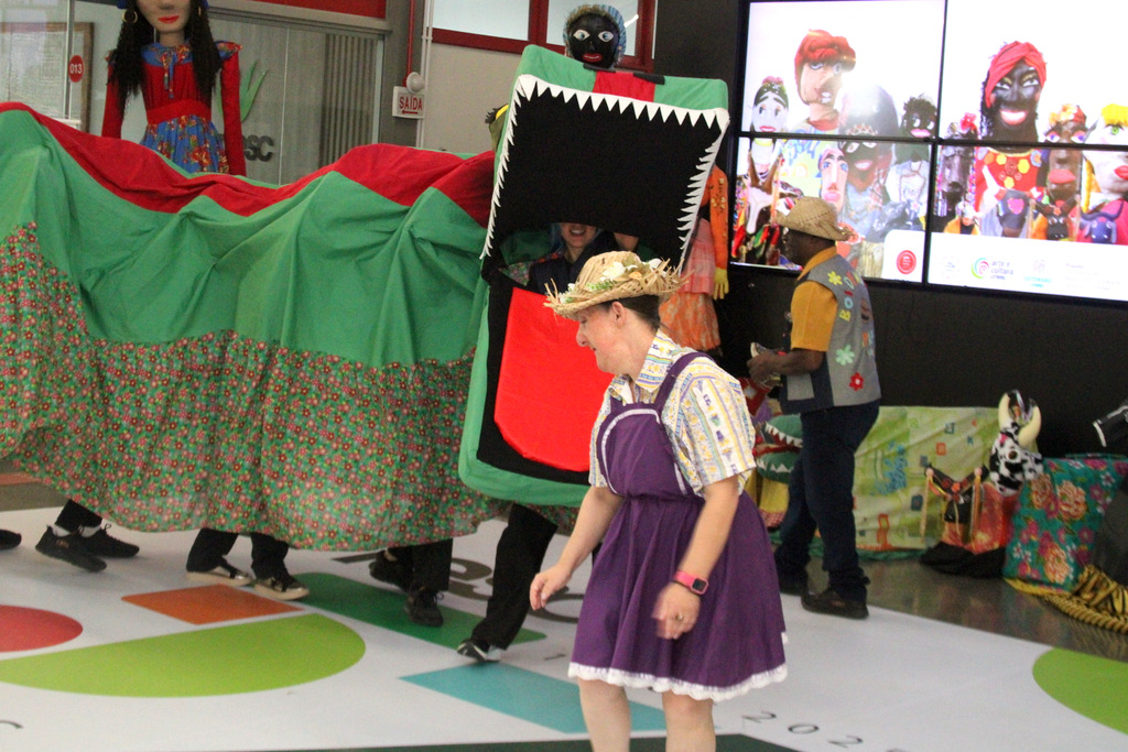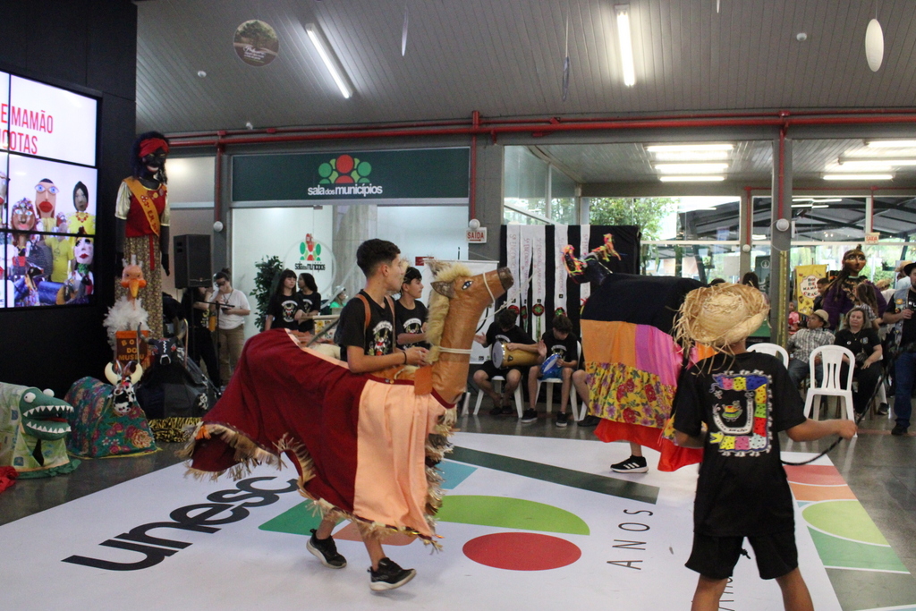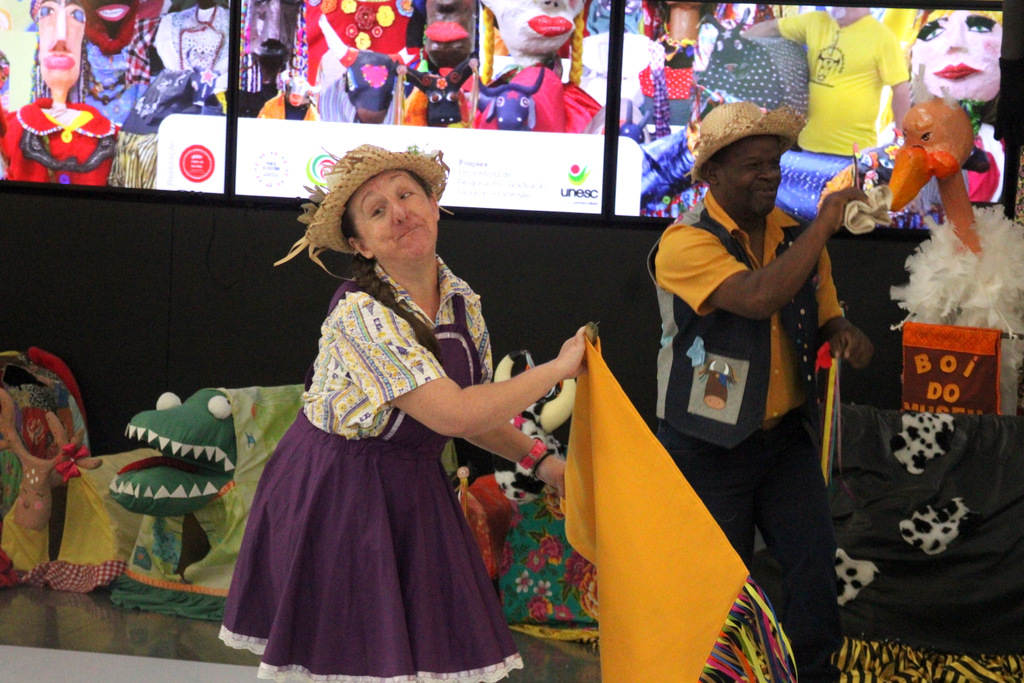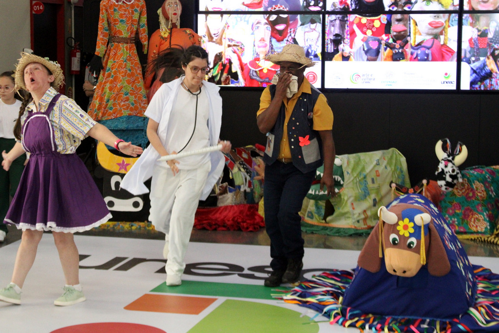 A coordenadora do Setor de Arte e Cultura, Amalhene Baesso Reddig, a Lenita, lembrou que a Unesc é um ponto de cultura do Ministério da Cultura, da Rede Cultura Viva. “Realizar o intercâmbio cultural entre os participantes da cultura popular catarinense – boi de mamão – tem como foco o fortalecimento dessa tradição. Hoje, é o Dia Internacional do Patrimônio Cultural Imaterial e celebramos coletivamente as tradições vivas que definem nessas histórias, memórias, saberes por meio da educação, da colaboração e da conscientização do valor dos que nos antecederam. A interação que provamos no campus Unesc reverbera na região e contribui para a cultura de paz e tolerância”, enfatizou ela.