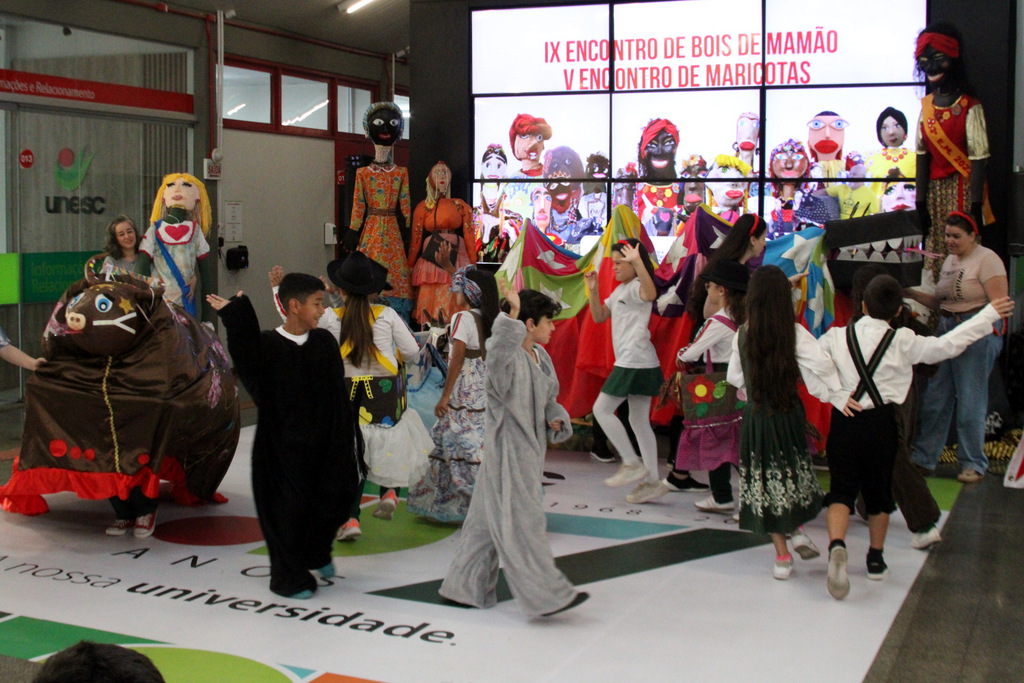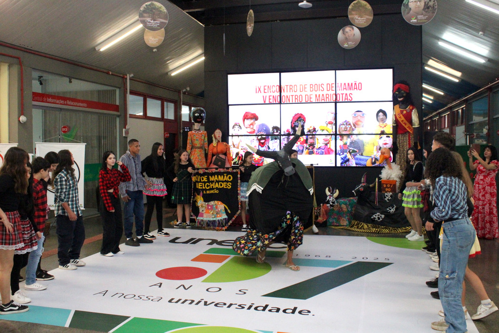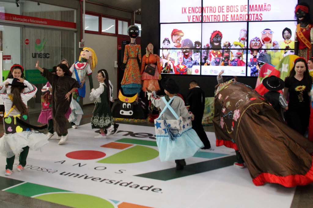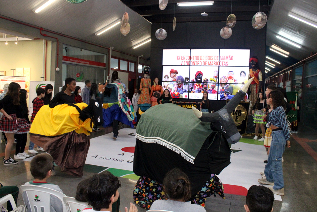 O campus da Unesc recebeu na quinta-feira (16/10) e sexta-feira (17/10), sete apresentações artísticas e culturais que enalteceram a tradicional cultura açoriana. O evento fez parte do 9º Encontro de Bois de Mamão e 5º Encontro das Maricotas, organizado pelo setor de Arte e Cultura da Universidade.