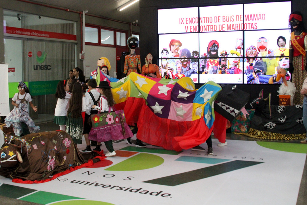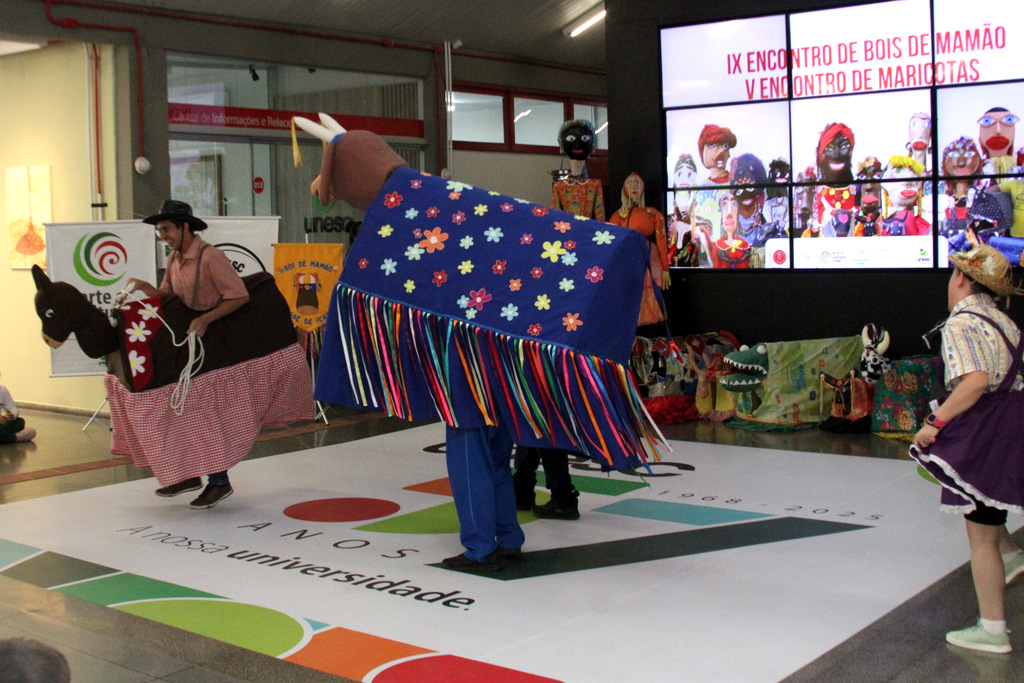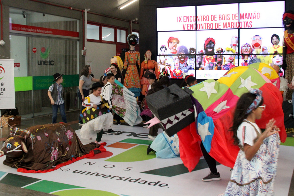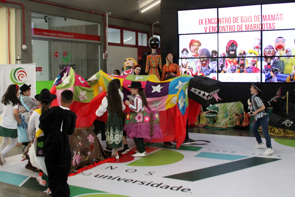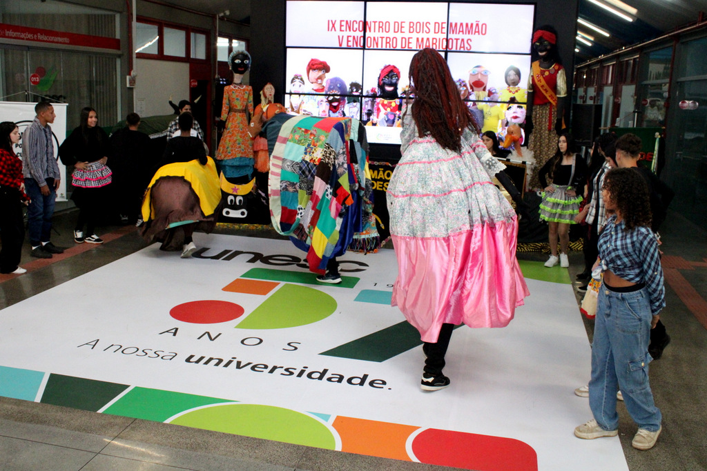 O campus da Unesc recebeu na quinta-feira (16/10) e sexta-feira (17/10), sete apresentações artísticas e culturais que enalteceram a tradicional cultura açoriana. O evento fez parte do 9º Encontro de Bois de Mamão e 5º Encontro das Maricotas, organizado pelo setor de Arte e Cultura da Universidade.