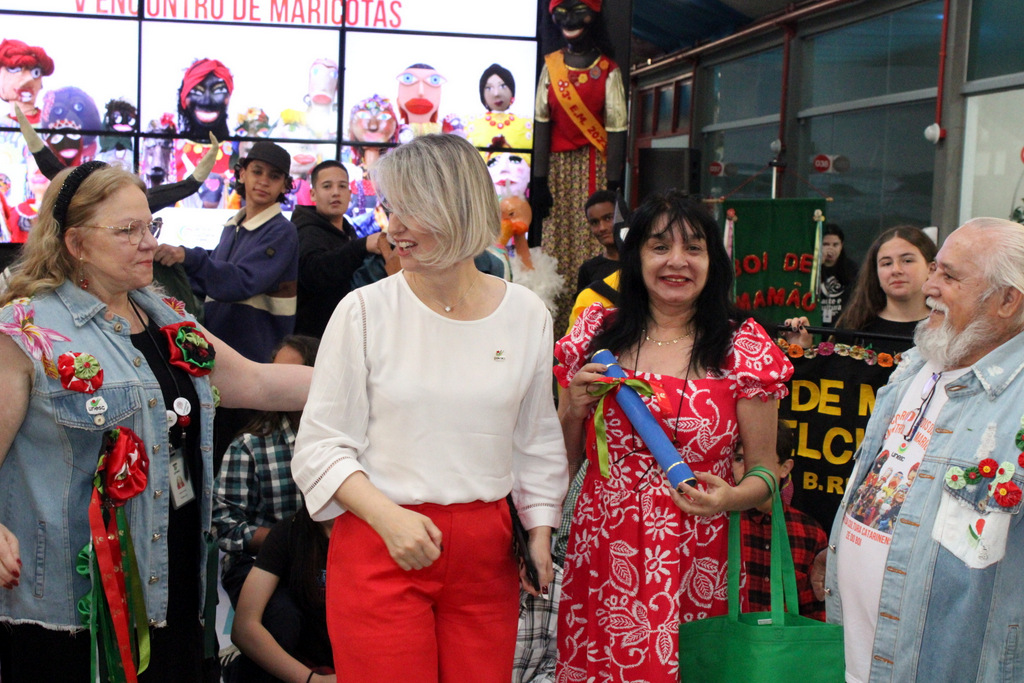 Representando a reitora em exercício, Gisele Coelho Lopes, a diretora de Extensão, Cultura e Ações Comunitárias, Sheila Martignago Saleh, destacou o importante papel que o Setor de Arte e Cultura desenvolve em prol dos saberes e conhecimentos populares.