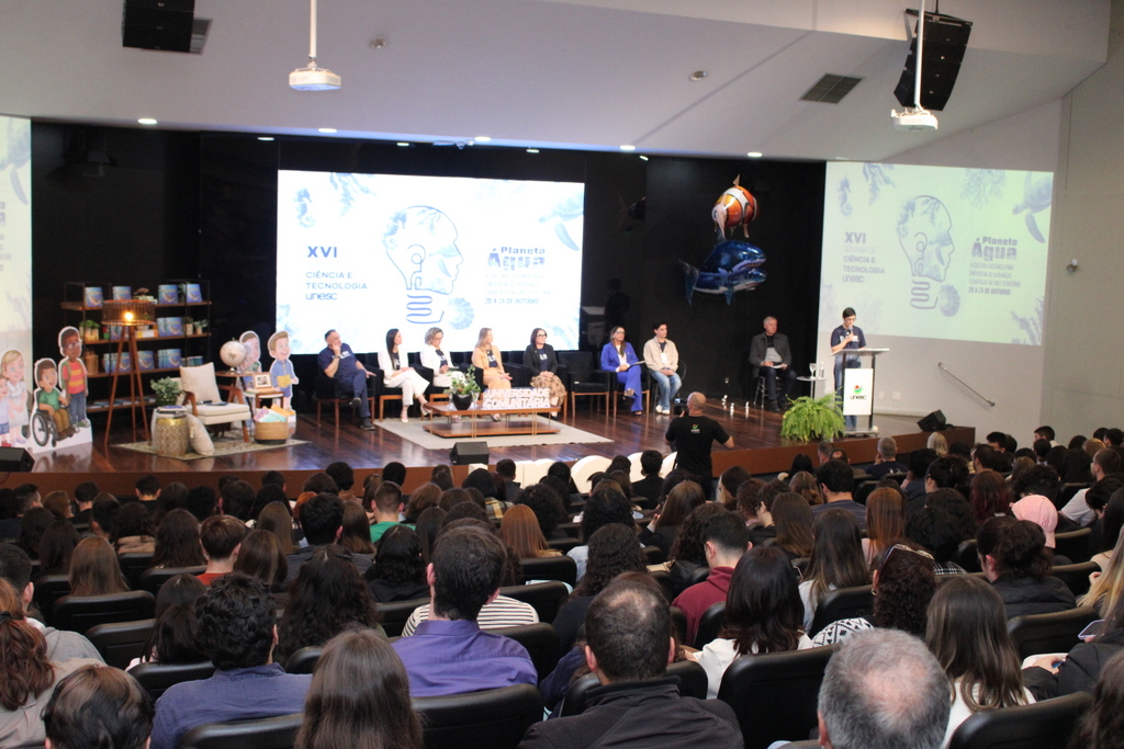 A 16ª Semana de Ciência e Tecnologia (SCT) da Unesc segue até o dia 25 de outubro, com uma ampla programação voltada à ciência, inovação e sustentabilidade. Neste ano, o tema é “Planeta Água – A cultura oceânica para enfrentar as mudanças climáticas no meu território”, em sintonia com o movimento nacional.