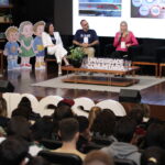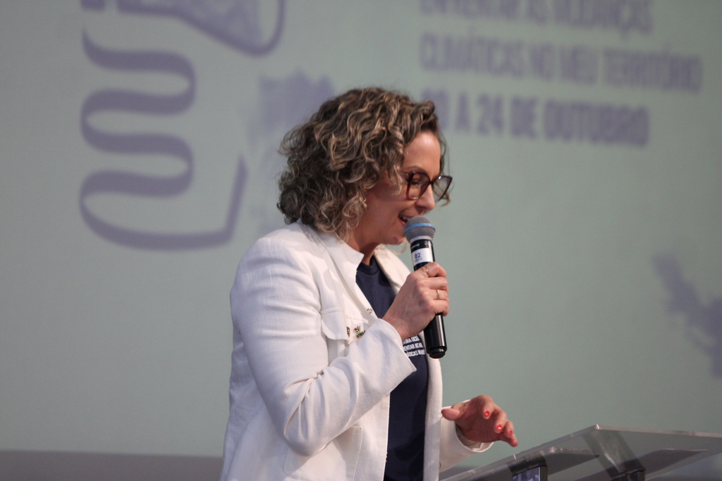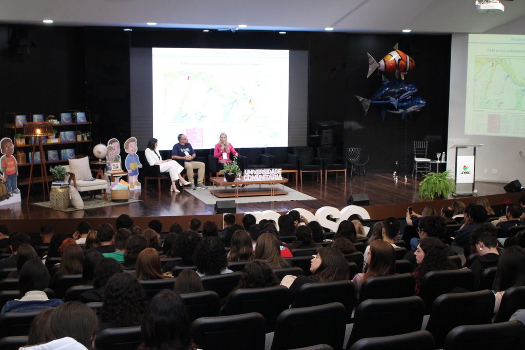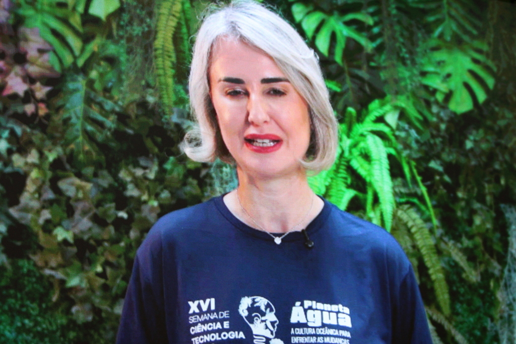 A palestra de abertura foi ministrada pela oceanógrafa e pesquisadora Carina Stefoni Böck, do Rio de Janeiro, que atua nas áreas de cultura oceânica e mudanças climáticas. Com o tema “Mudanças climáticas e poluição no ambiente marinho: desafios do presente, soluções que vêm do conhecimento científico”, a convidada promoveu reflexões sobre a urgência de preservar os recursos hídricos e compreender o papel dos oceanos no equilíbrio climático global.