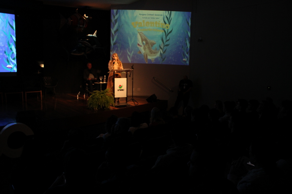 A abertura da SCT contou ainda com a contação da história do livro “Valentino – O Tubarão Valente”, de autoria da professora e bióloga Morgana Cirimbelli Gaidzinski.