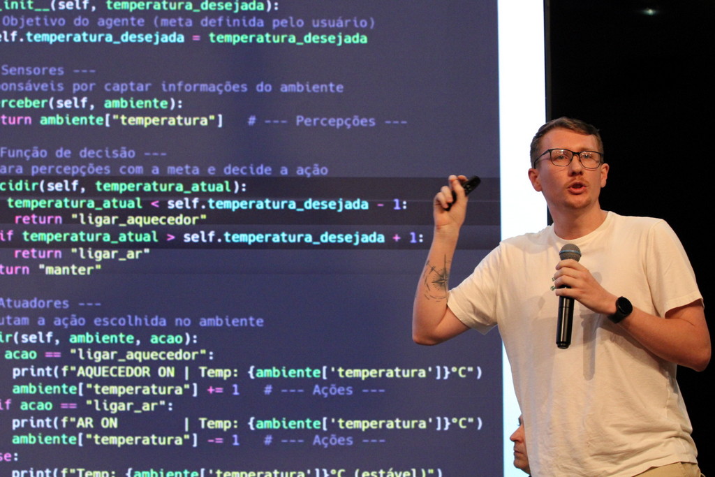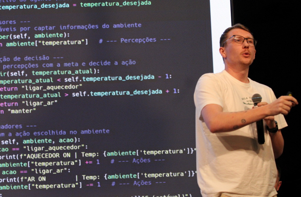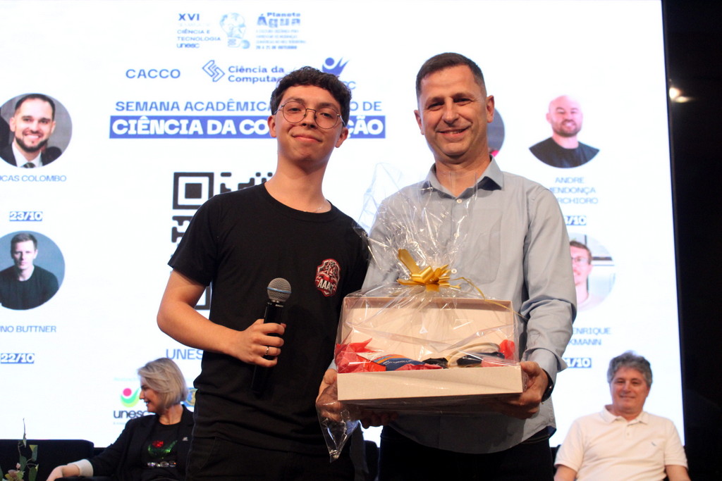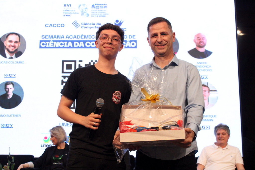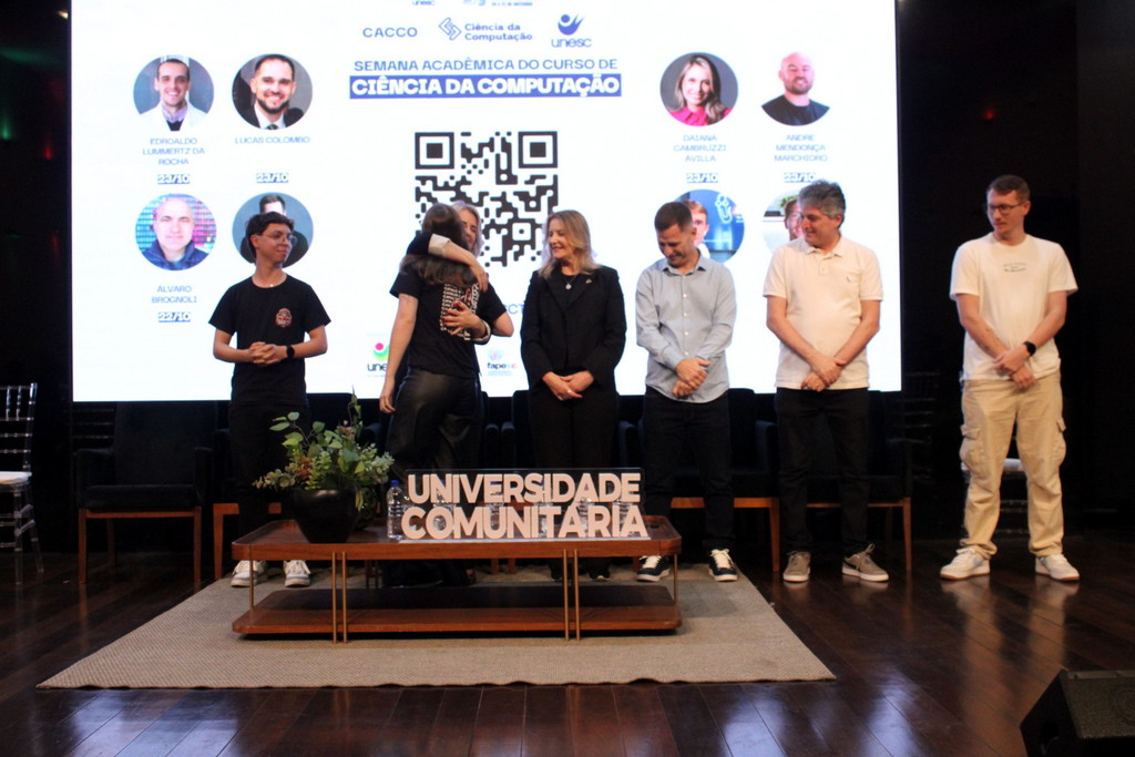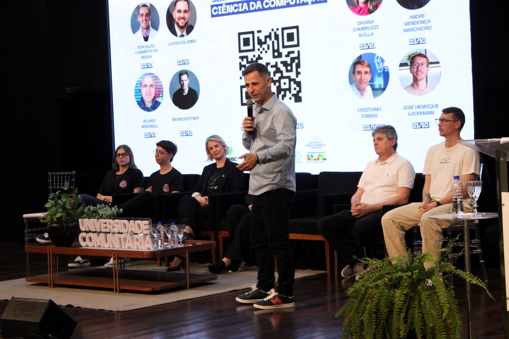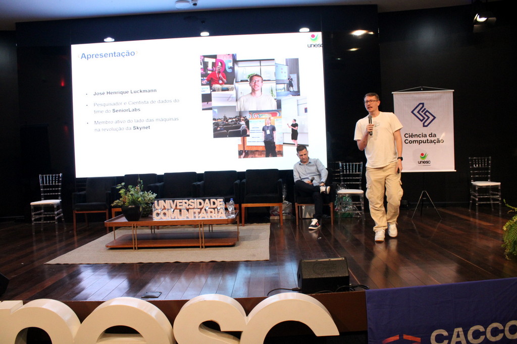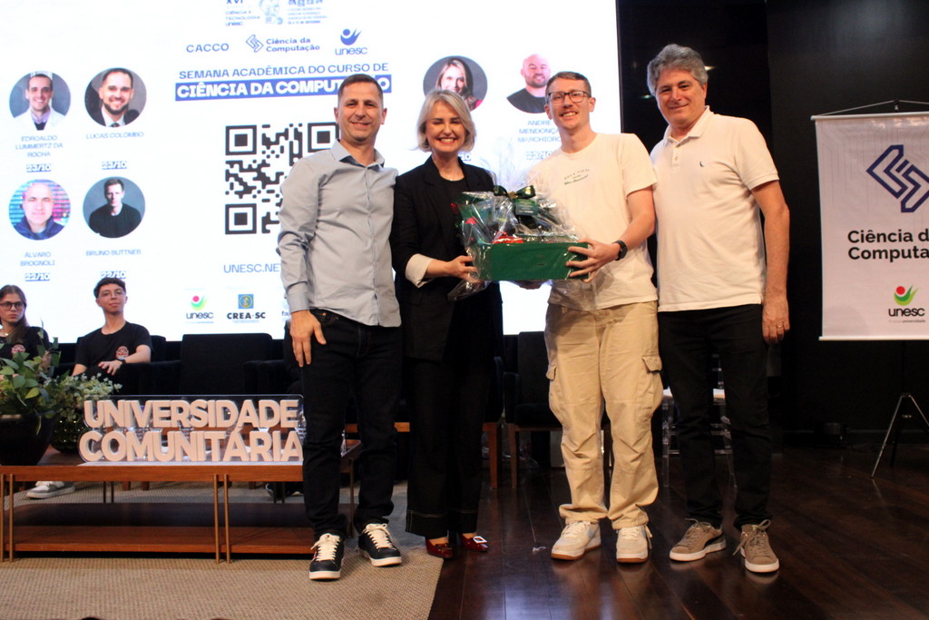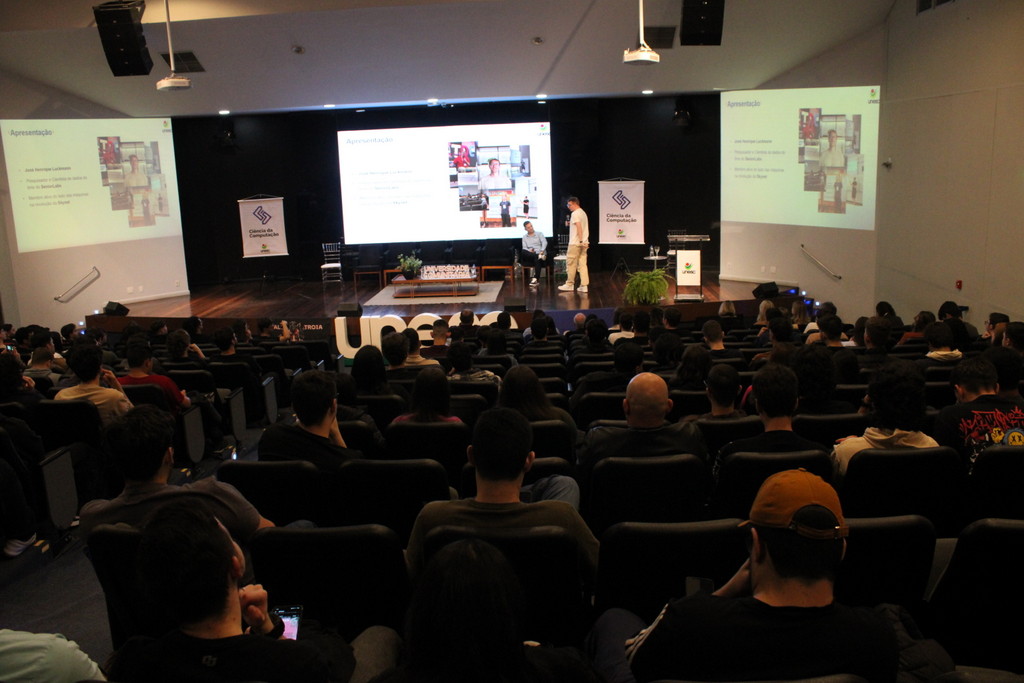 A tecnologia, os vínculos humanos e o compromisso com a formação integral marcaram a abertura da Semana Acadêmica do curso de Ciência da Computação da Unesc, realizada na noite desta terça-feira (21/10). Integrando a 16ª Semana de Ciência e Tecnologia (SCT) da Universidade, o evento teve como palestra de abertura o tema “Agentes Inteligentes”, conduzido pelo cientista de dados José Henrique Luckmann, especialista em desenvolvimento de algoritmos e computação em nuvem.