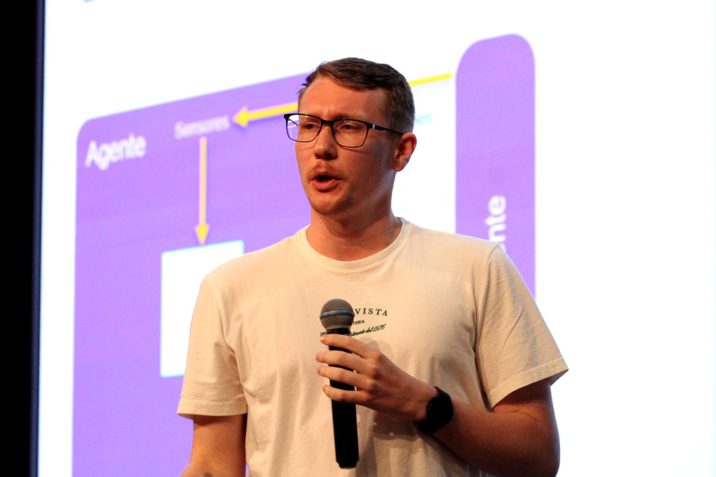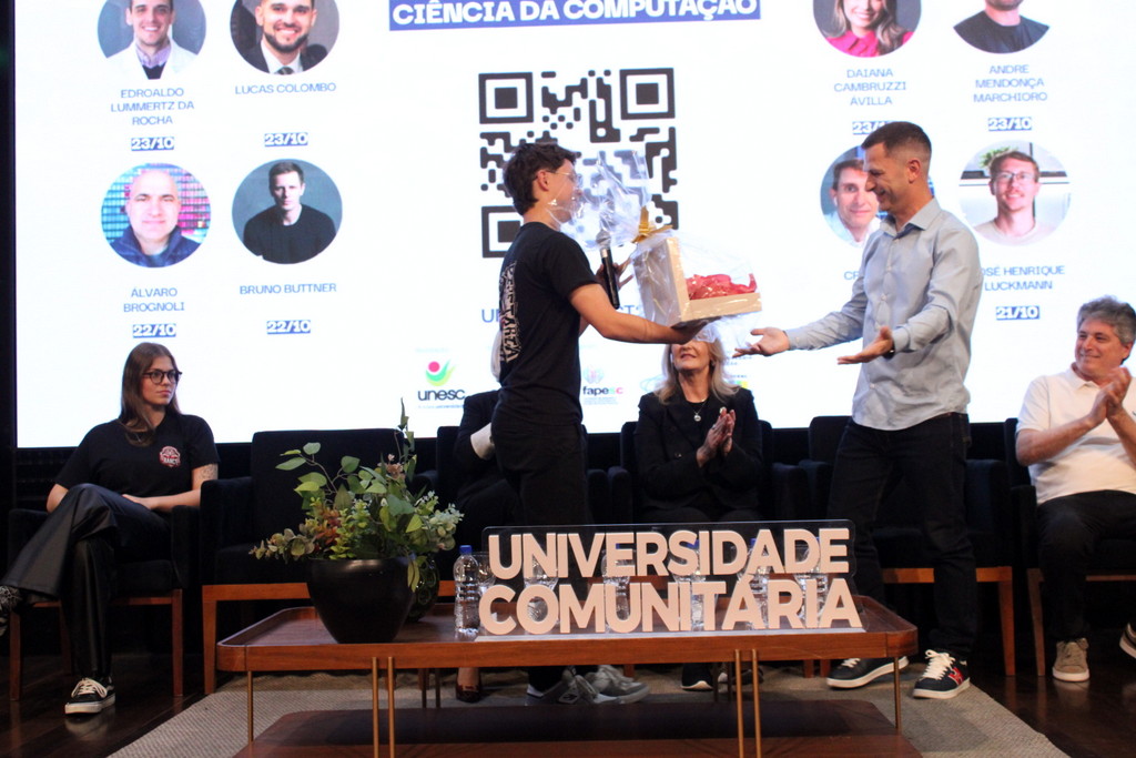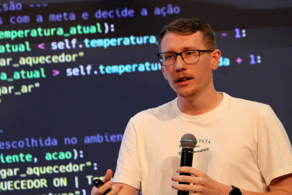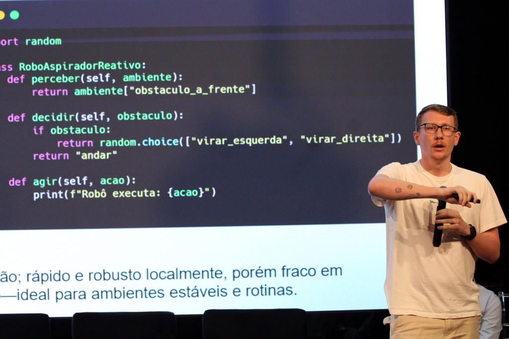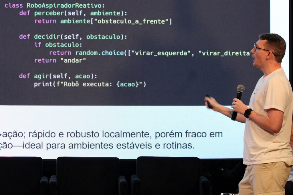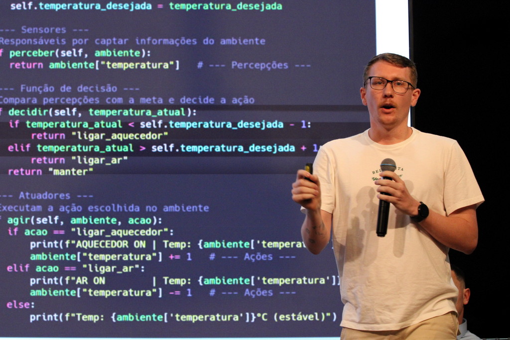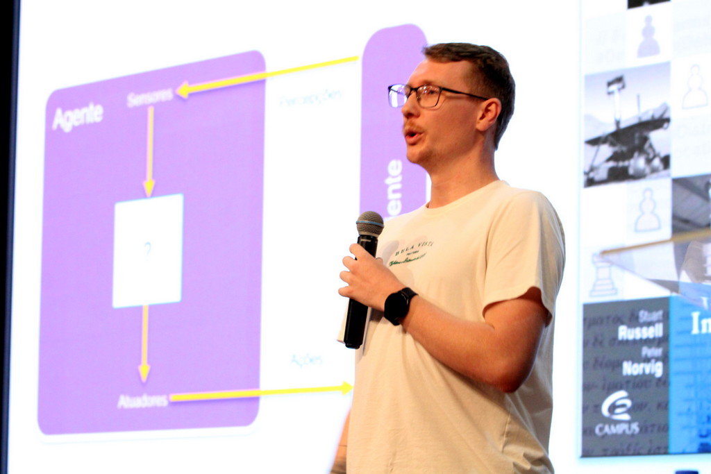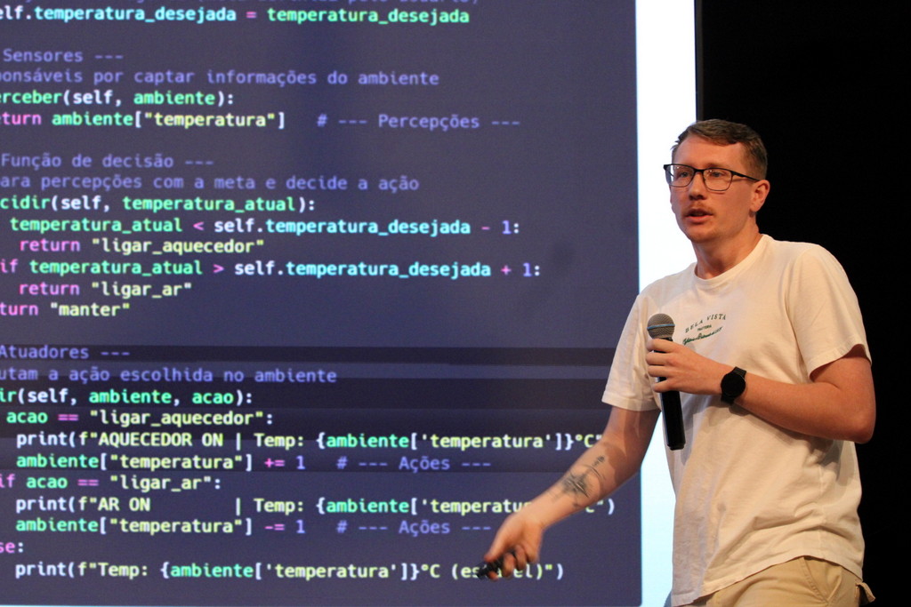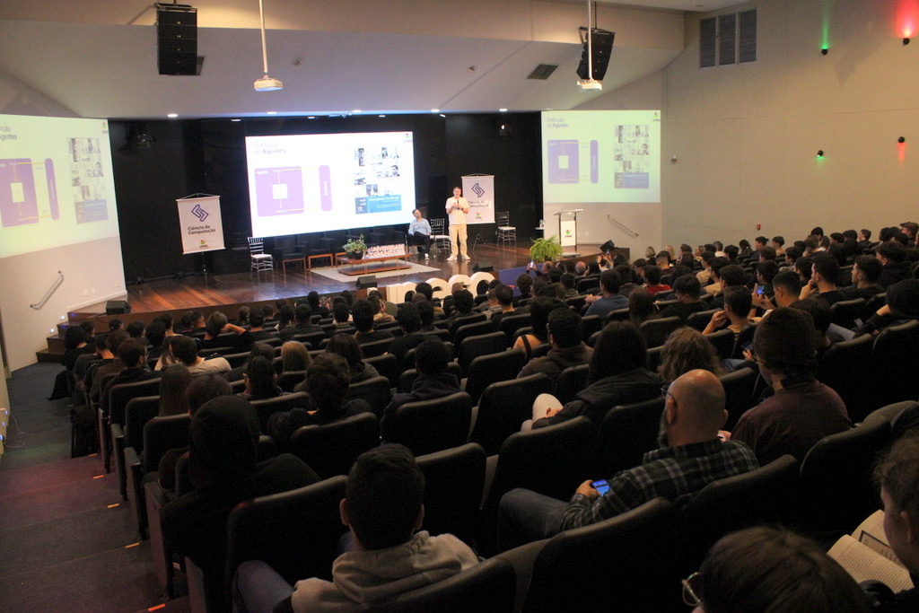 A tecnologia, os vínculos humanos e o compromisso com a formação integral marcaram a abertura da Semana Acadêmica do curso de Ciência da Computação da Unesc, realizada na noite desta terça-feira (21/10). Integrando a 16ª Semana de Ciência e Tecnologia (SCT) da Universidade, o evento teve como palestra de abertura o tema “Agentes Inteligentes”, conduzido pelo cientista de dados José Henrique Luckmann, especialista em desenvolvimento de algoritmos e computação em nuvem.