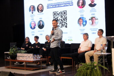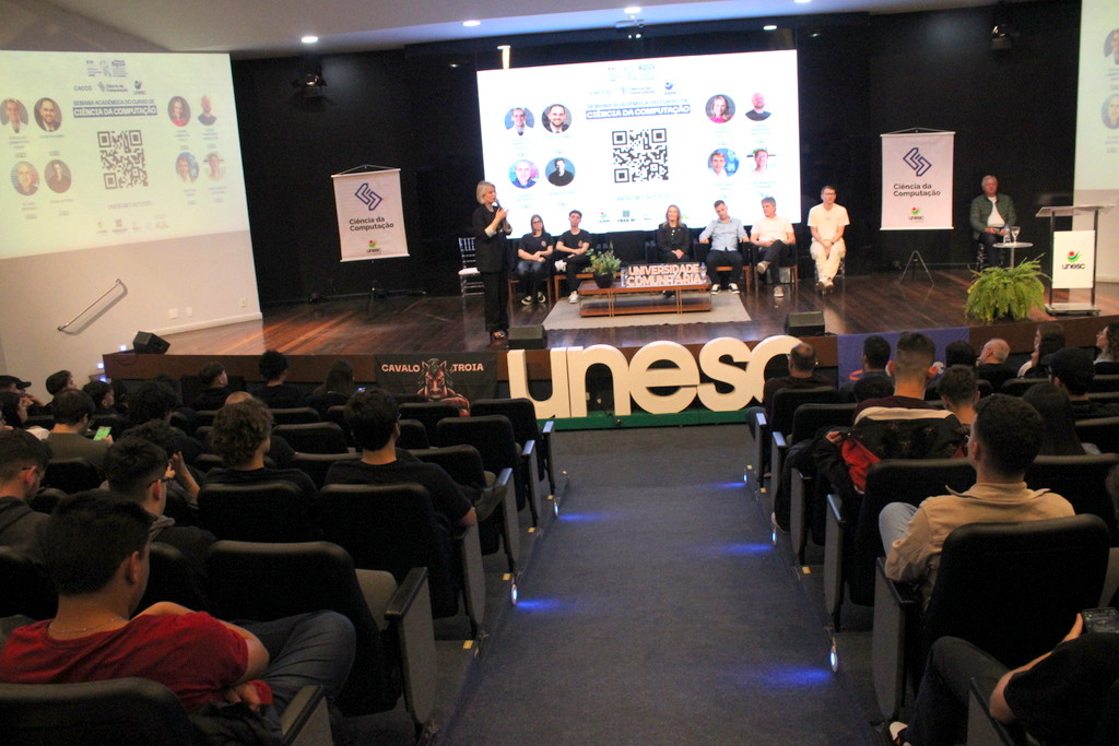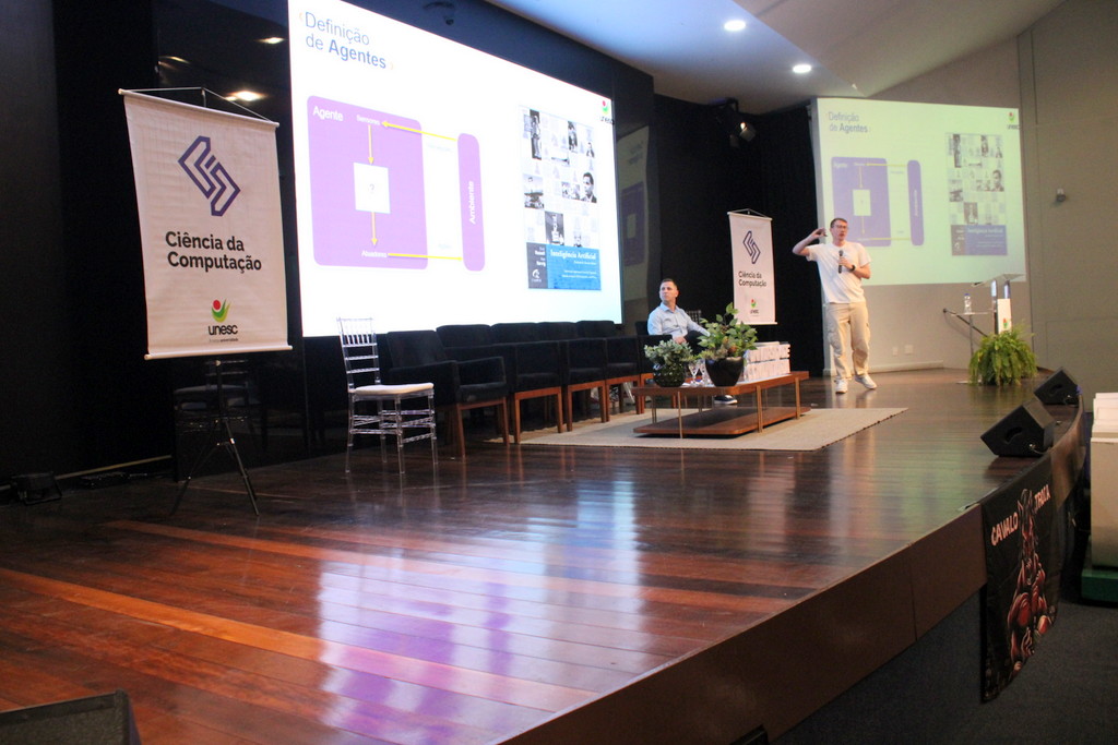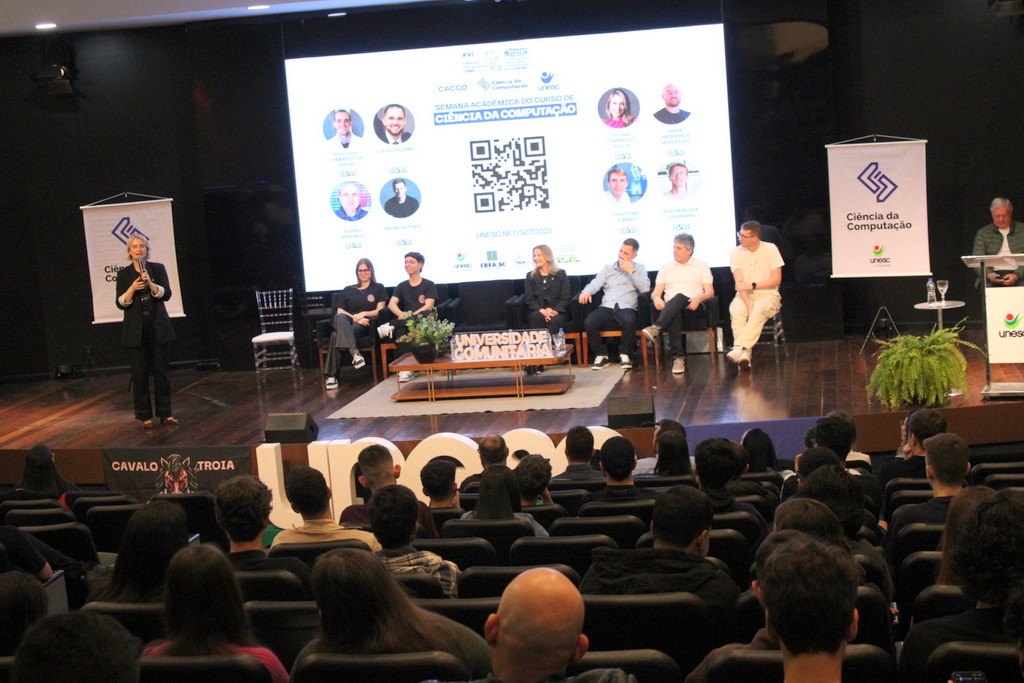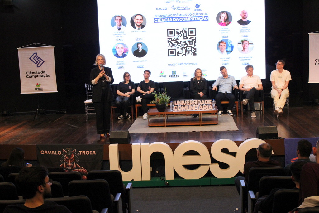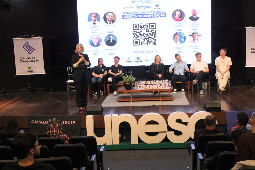 A Semana Acadêmica do curso de Ciência da Computação da Unesc segue até quinta-feira (23/10) com programação que inclui palestras sobre agentes inteligentes, segurança da informação, inovação e novas tecnologias. O evento é promovido pelo curso, em parceria com o Centro Acadêmico e a Atlética, com apoio da Unesc, CREA-SC, Fapesc, Capes e do Governo Federal, por meio do Ministério da Ciência, Tecnologia e Inovação.