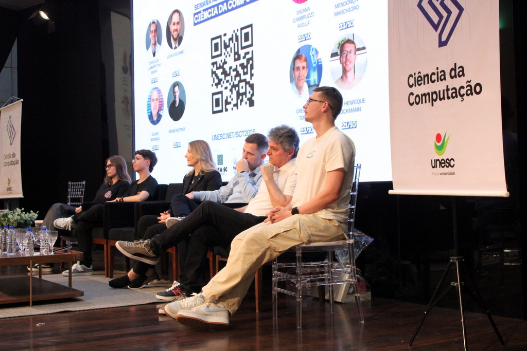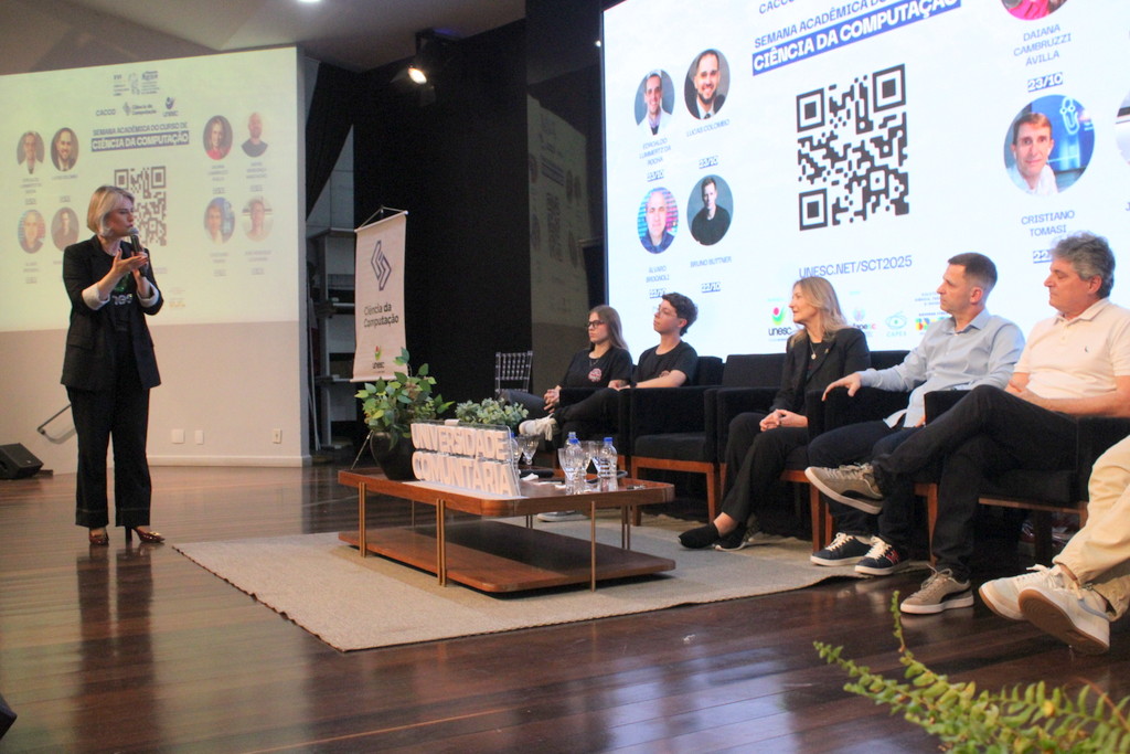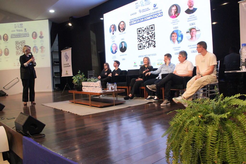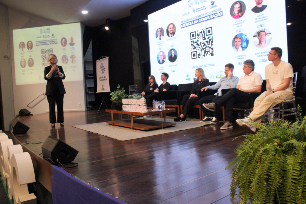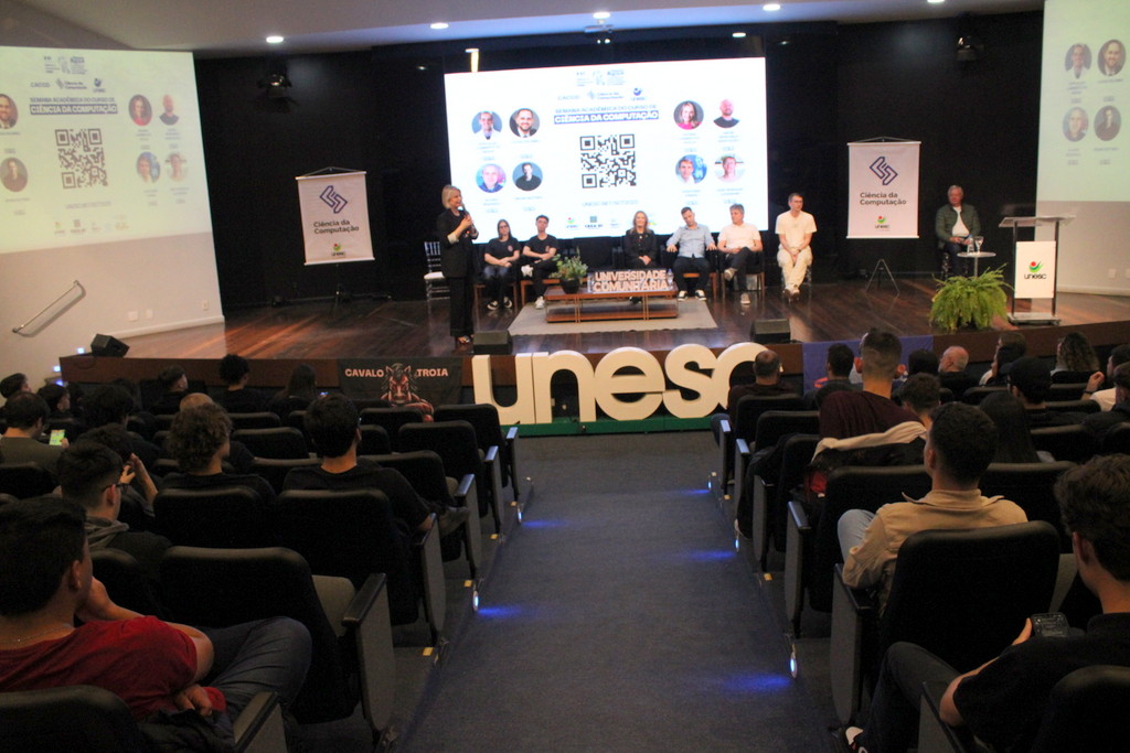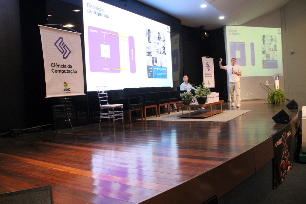 A Semana Acadêmica do curso de Ciência da Computação da Unesc segue até quinta-feira (23/10) com programação que inclui palestras sobre agentes inteligentes, segurança da informação, inovação e novas tecnologias. O evento é promovido pelo curso, em parceria com o Centro Acadêmico e a Atlética, com apoio da Unesc, CREA-SC, Fapesc, Capes e do Governo Federal, por meio do Ministério da Ciência, Tecnologia e Inovação.