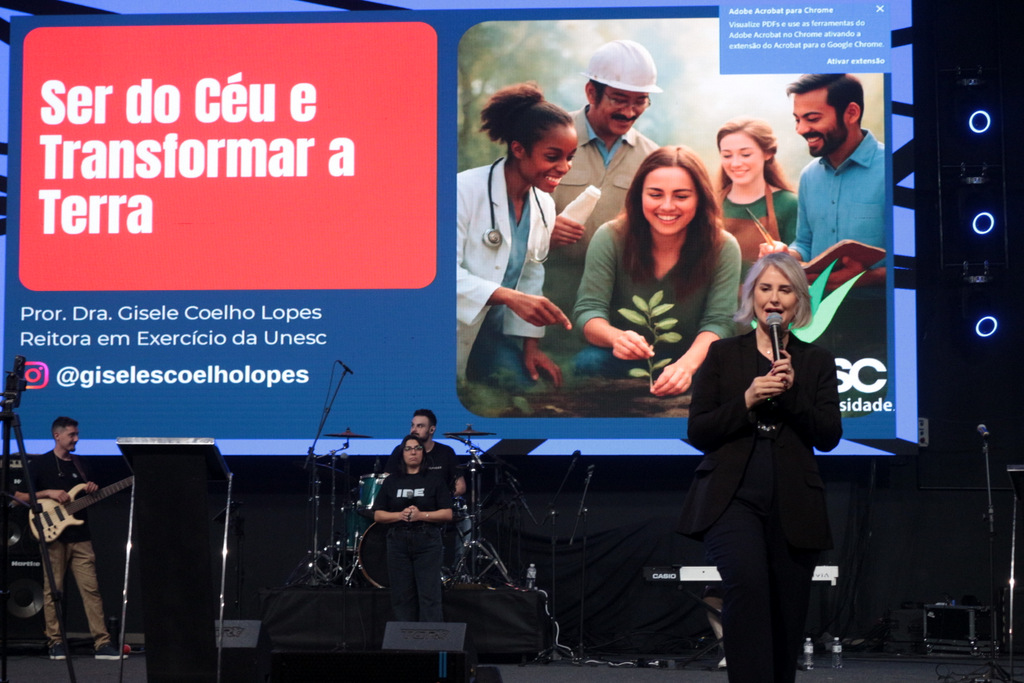 Com o tema “Ser do Céu e Transformar a Terra”, Gisele compartilhou uma mensagem inspiradora sobre o