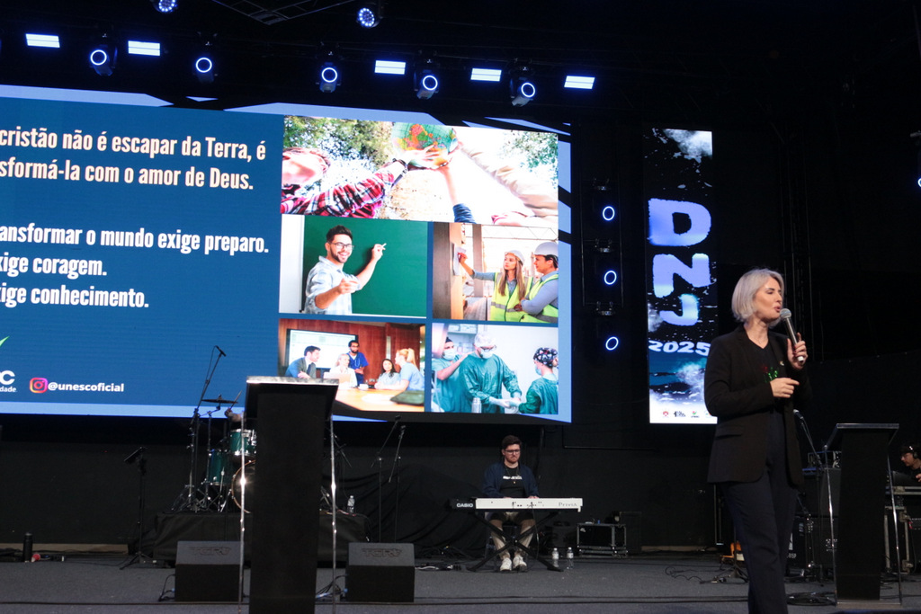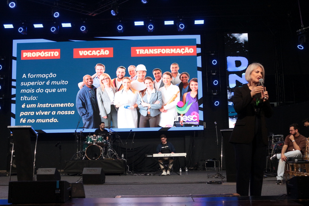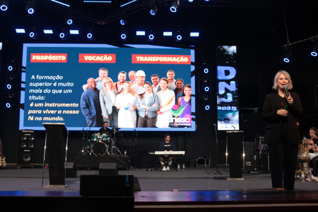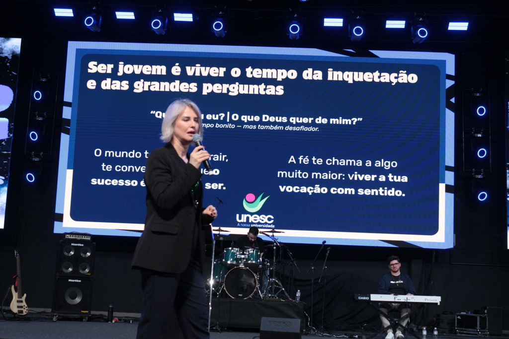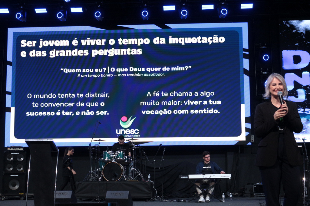 A Reitora em exercício da Unesc, Gisele Coelho Lopes, participou neste domingo (26/10), do Dia Nacional da Juventude (DNJ), o maior encontro da juventude católica da Diocese de Criciúma, que reuniu mais de 2.100 jovens de diversas cidades da região Sul de Santa Catarina.