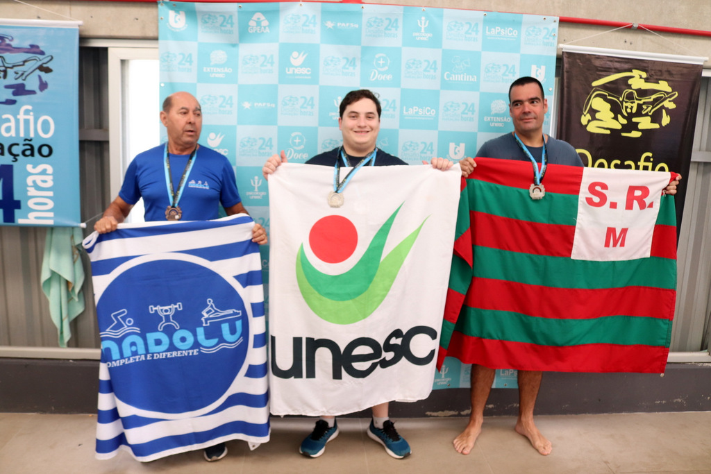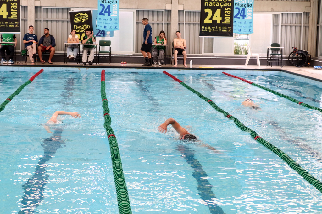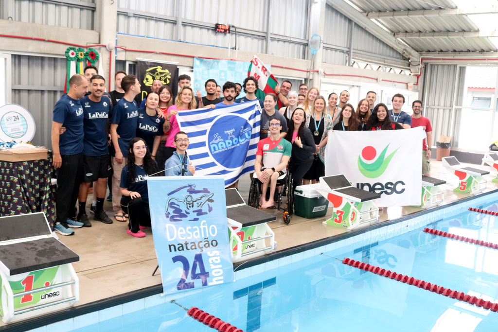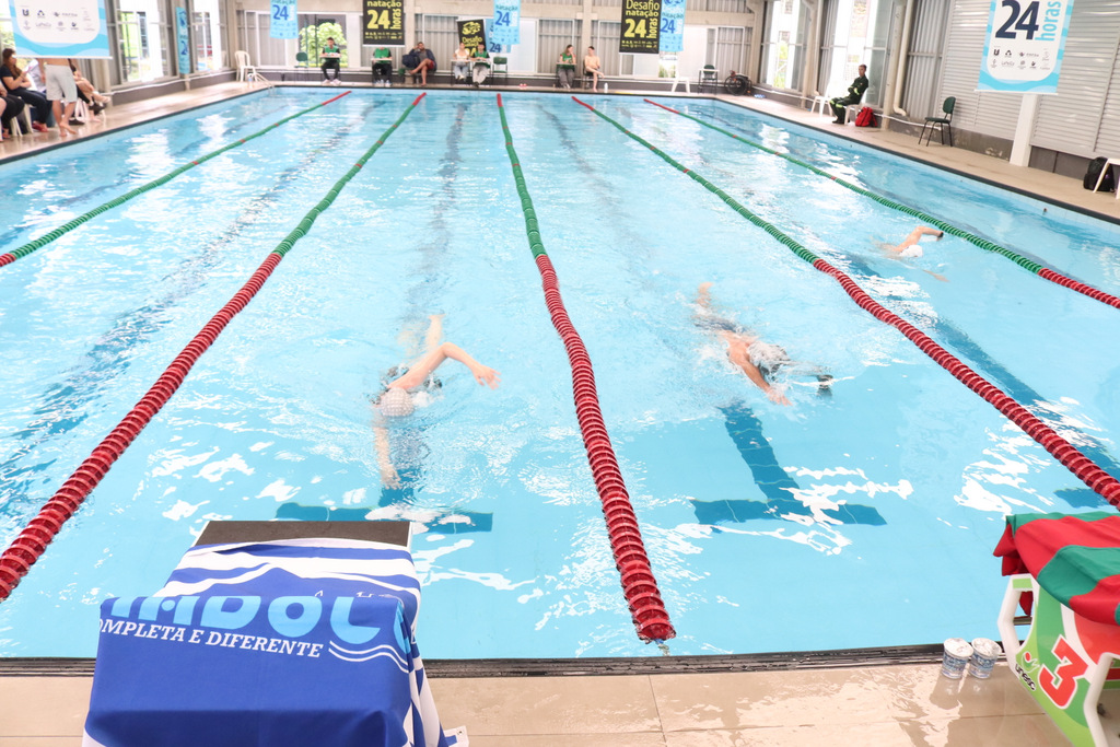 Sessenta nadadores se revezaram, nadando cerca de 310 quilômetros durante os dois dias de competição ((Fotos: Décio Batista/Agecom/Unesc)
