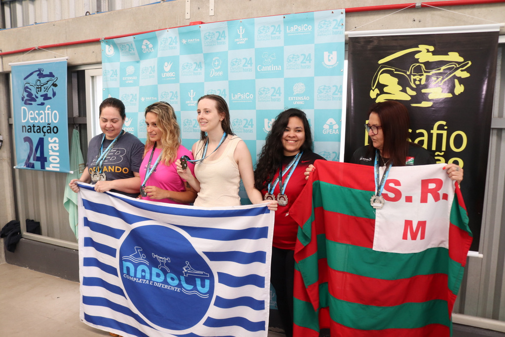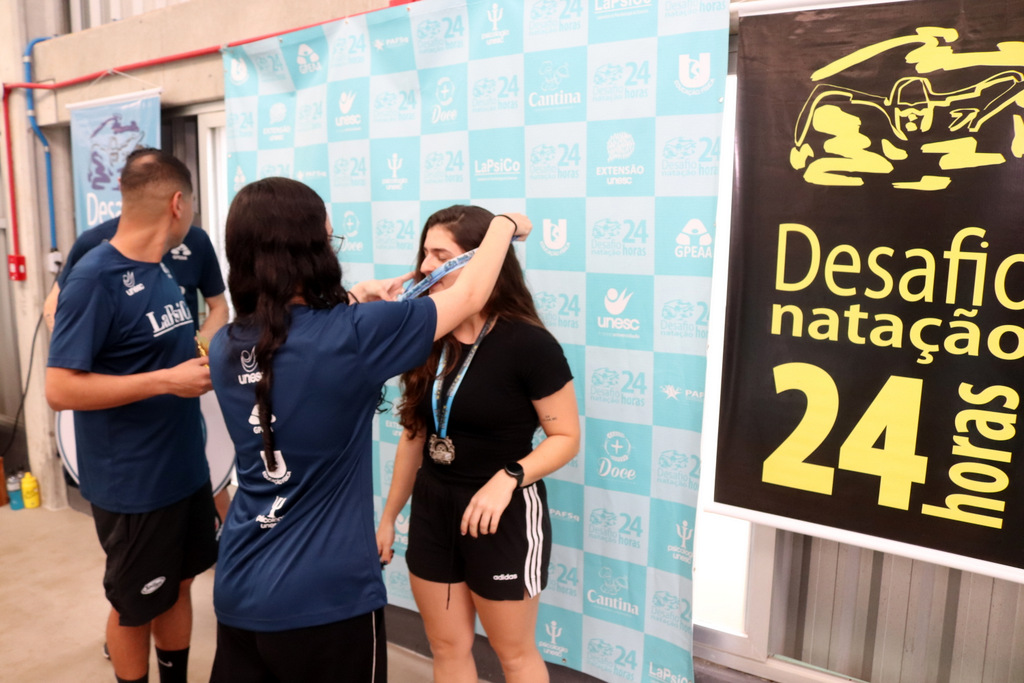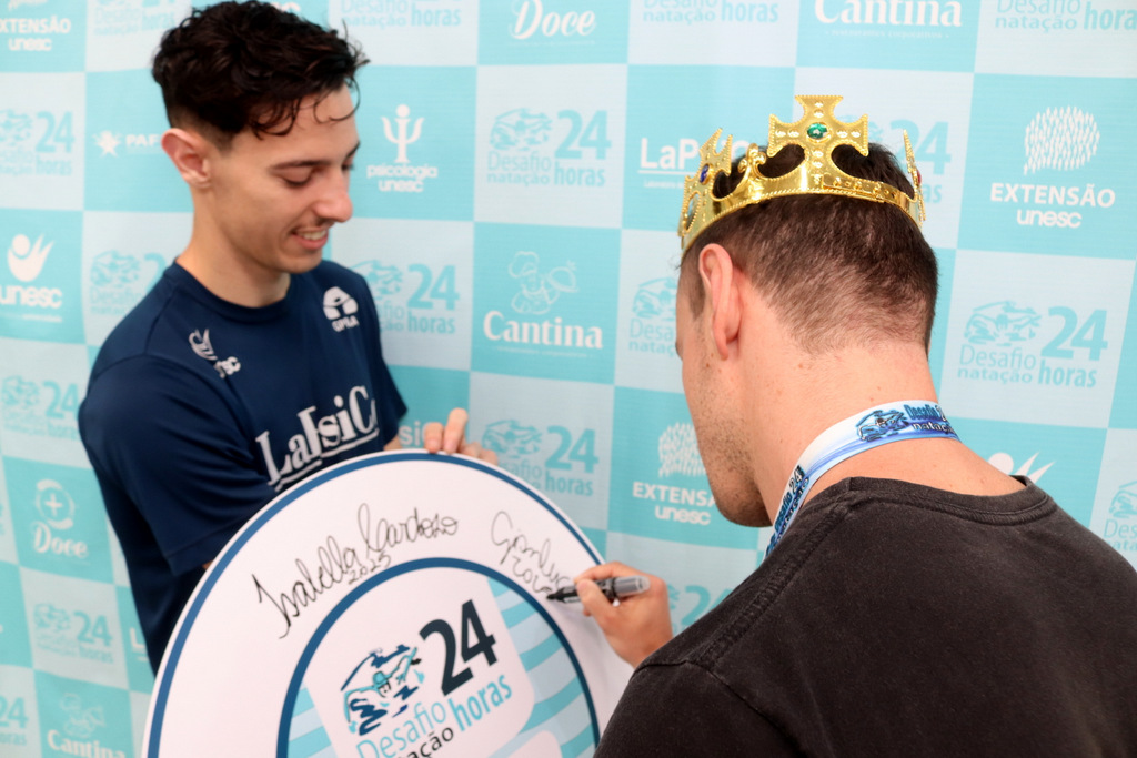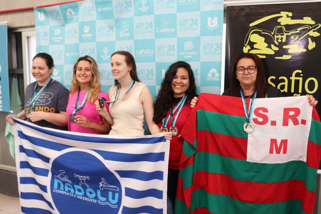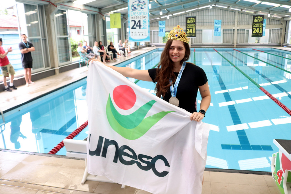 Sessenta nadadores se revezaram, nadando cerca de 310 quilômetros durante os dois dias de competição ((Fotos: Décio Batista/Agecom/Unesc)