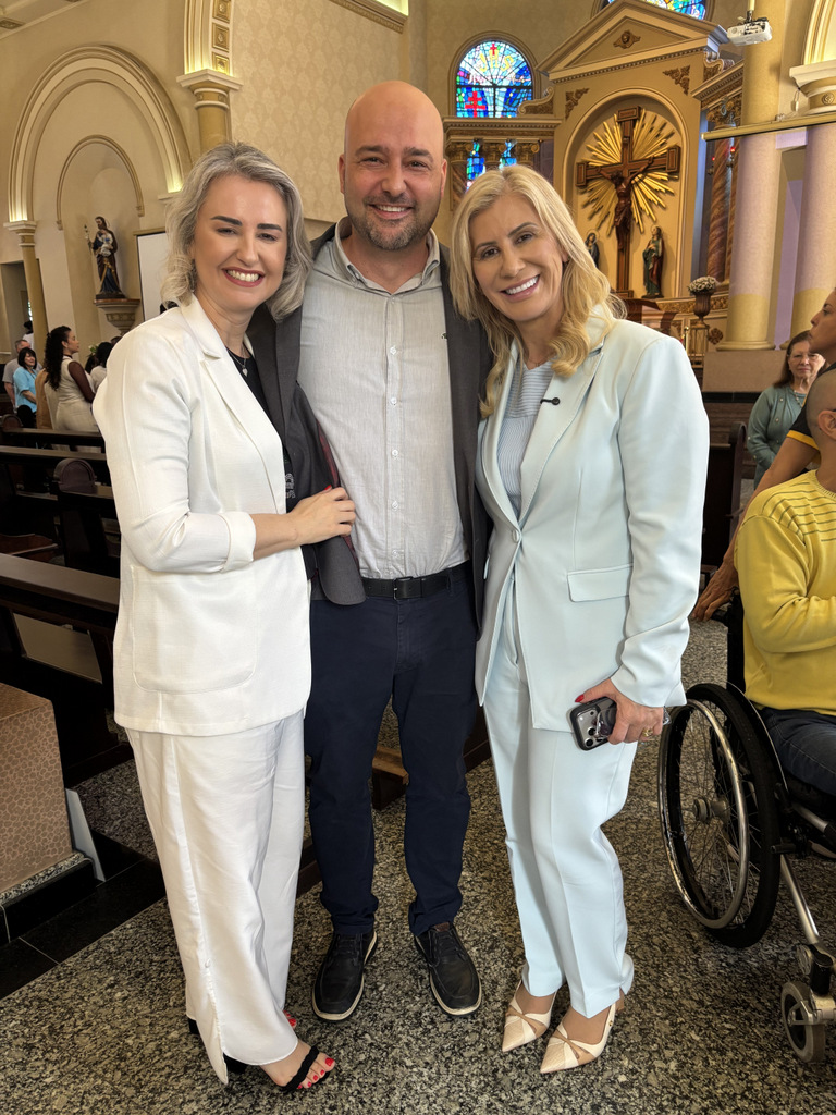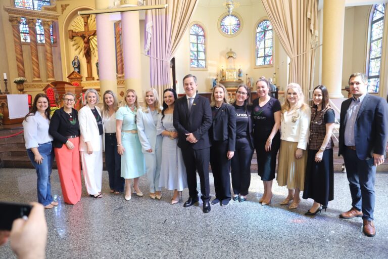 A comunidade acadêmica da Unesc marcou presença nas celebrações do centenário de Criciúma, realizadas nesta terça-feira (4/11). A programação iniciou logo cedo na Praça Nereu Ramos com entrevistas da reitora em exercício Gisele Silveira Coelho Lopes e da reitora licenciada e secretária de Estado da Educação, Luciane Bisognin Ceretta aos veículos de comunicação da cidade. Após este primeiro momento, estiveram presentes na Missa de Ação de Graças na Catedral São José; lançamento do selo comemorativo; homenagens aos criciumenses centenários, além do tradicional corte do bolo, reunindo autoridades, lideranças, estudantes e a comunidade em clima de emoção e pertencimento.