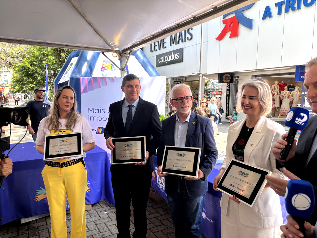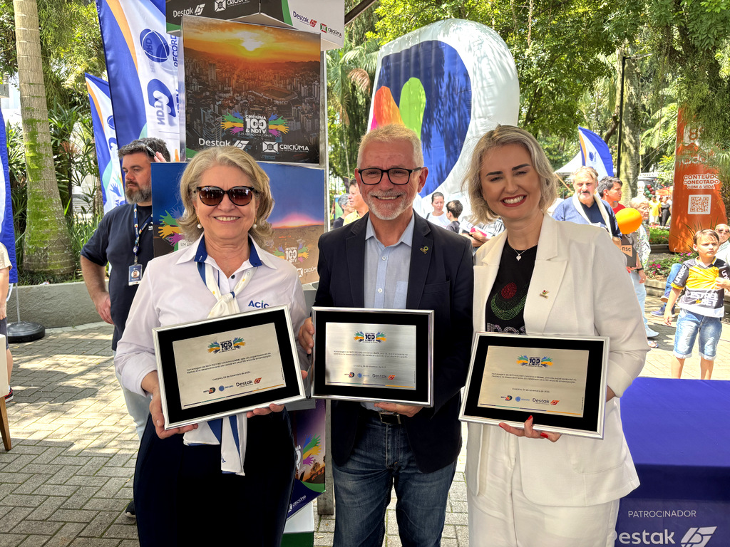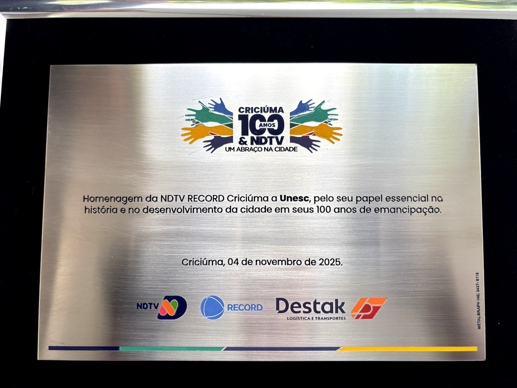 A Unesc também foi homenageada pela NDTV pelo papel essencial na história e no desenvolvimento de Criciúma, em comemoração aos 100 anos de emancipação do município. A Universidade recebeu uma placa de homenagem nesta terça-feira (4/11), durante a transmissão dos programas Balanço Geral e Ver Mais, realizada na Praça Nereu Ramos.